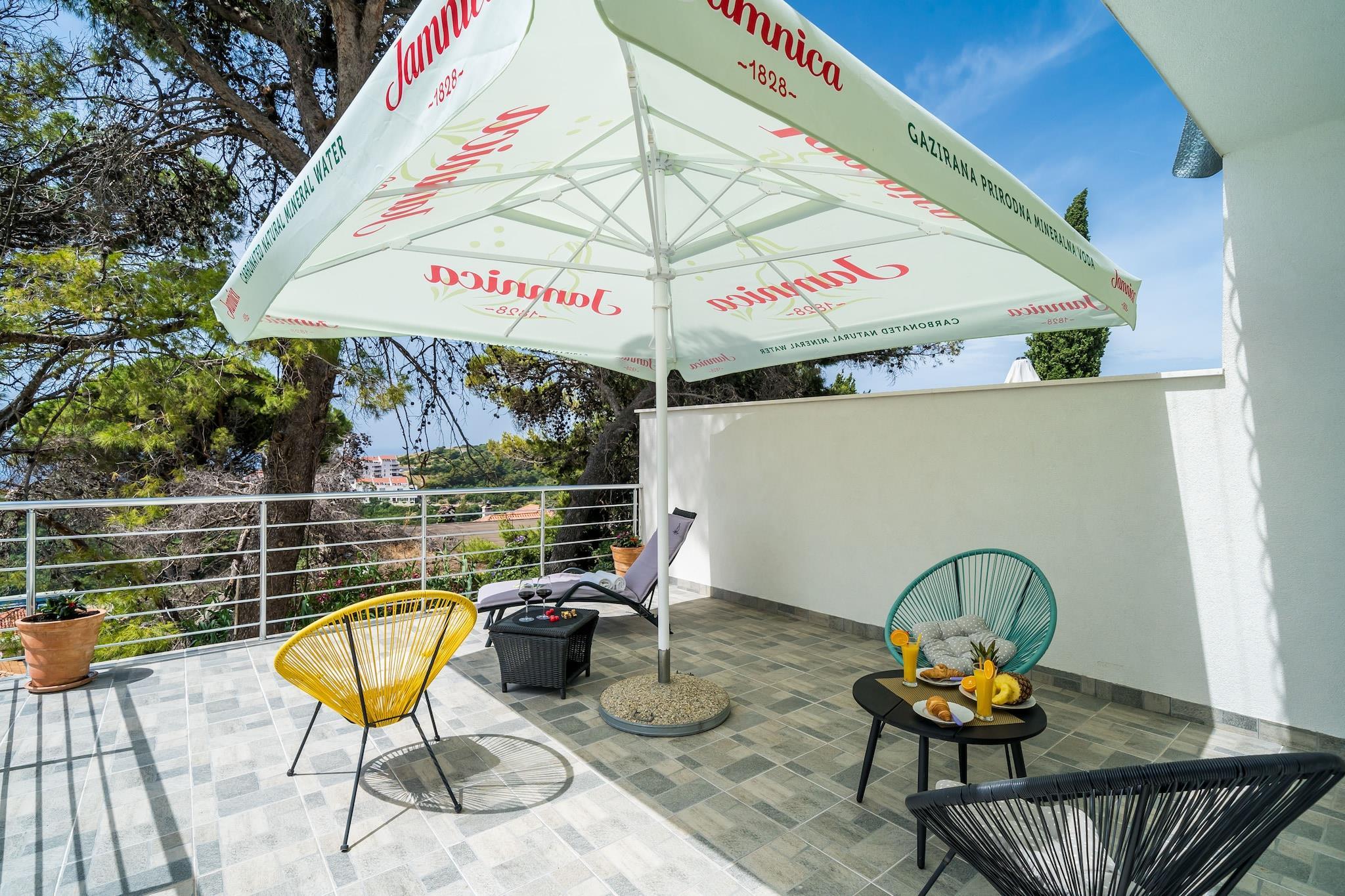 Nice terrace!Nice terrace, 30 mins walk from the center of Dubrovnik, possibility to park a car nearby(free parking) , a lot of space in apartment and fully equipped