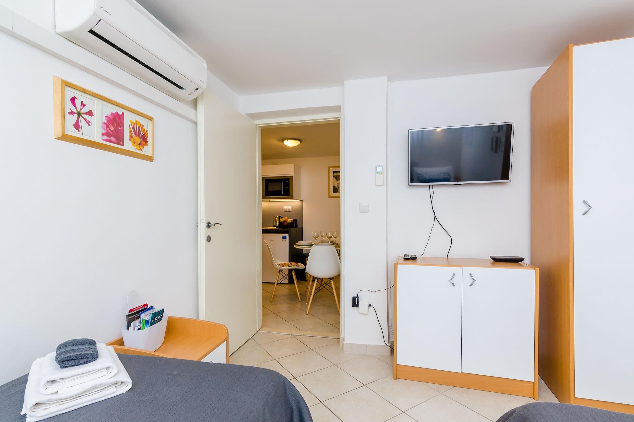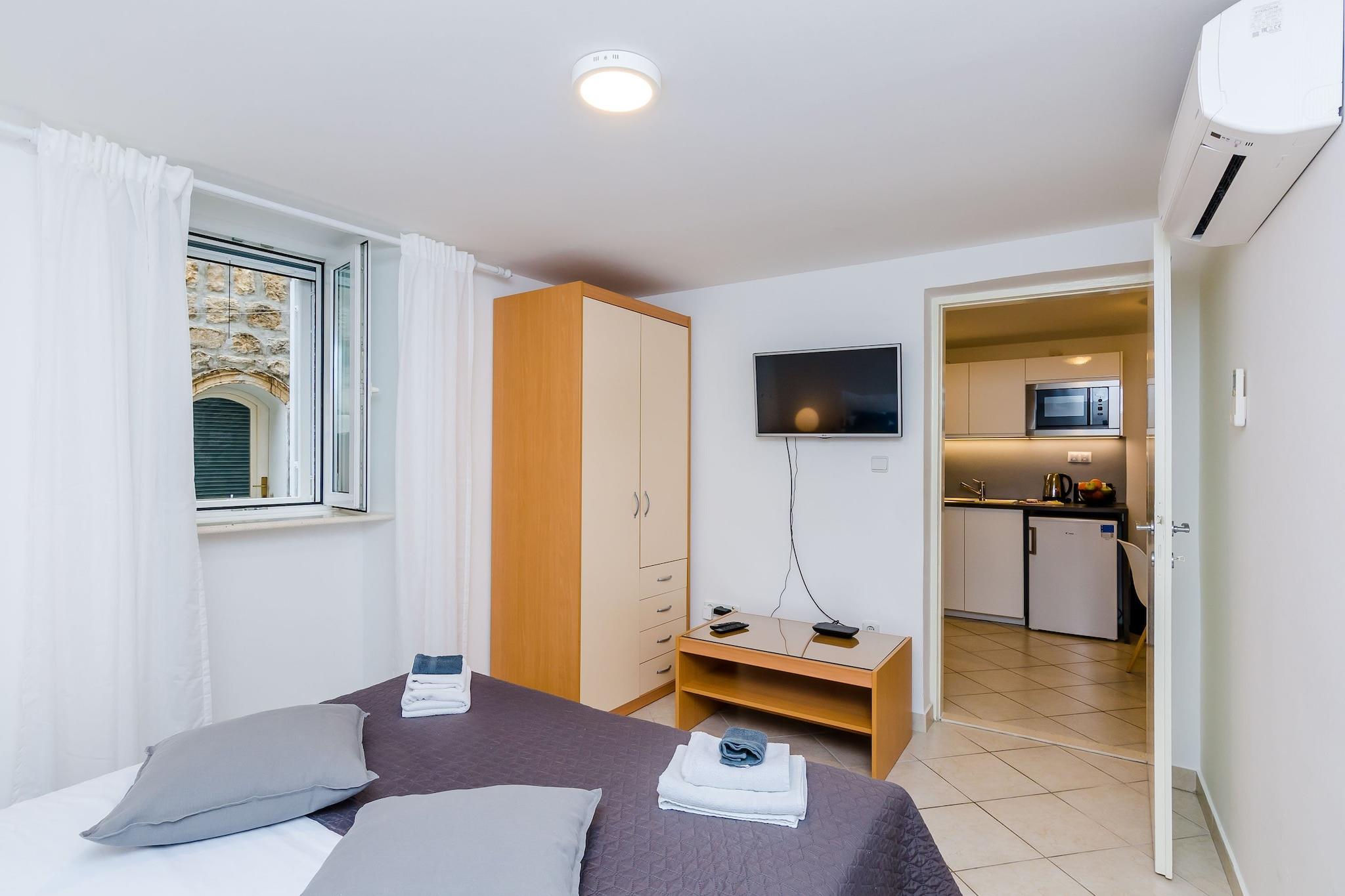Apartment Domix er beliggende i hjertet af den gamle bydel, omgivet af bymure, brostensbelagte gader og Stradun-promenaden, hvilket gør det til et ideelt sted for at opdage Dubrovnik. Denne toværelses lejlighed er perfekt til op til fire personer. Det har WiFi, aircondition på alle værelser og fladskærms-satellit-tv. Tekøkken er kombineret med spiseplads. Badeværelset omfatter brusekabine, hårtørrer og vaskemaskine. Den Gamle Bys centrale gade Stradun ligger kun 3 minutter væk. Der er et udendørs grøntmarked og andre butikker inden for gåafstand, samt en bageri, banker og pengeautomater, caféer, barer og restauranter med lokale og andre retter. Den berømte natklub Revelin, som ligger inde i det gamle fort, ligger kun 650 meter væk. Dubrovniks busstation og færgehavn, der forbinder fastlandet med forskellige dalmatiske øer, er 15 minutters kørsel fra lejligheden, mens Dubrovnik Lufthavn ligger 25 km væk.