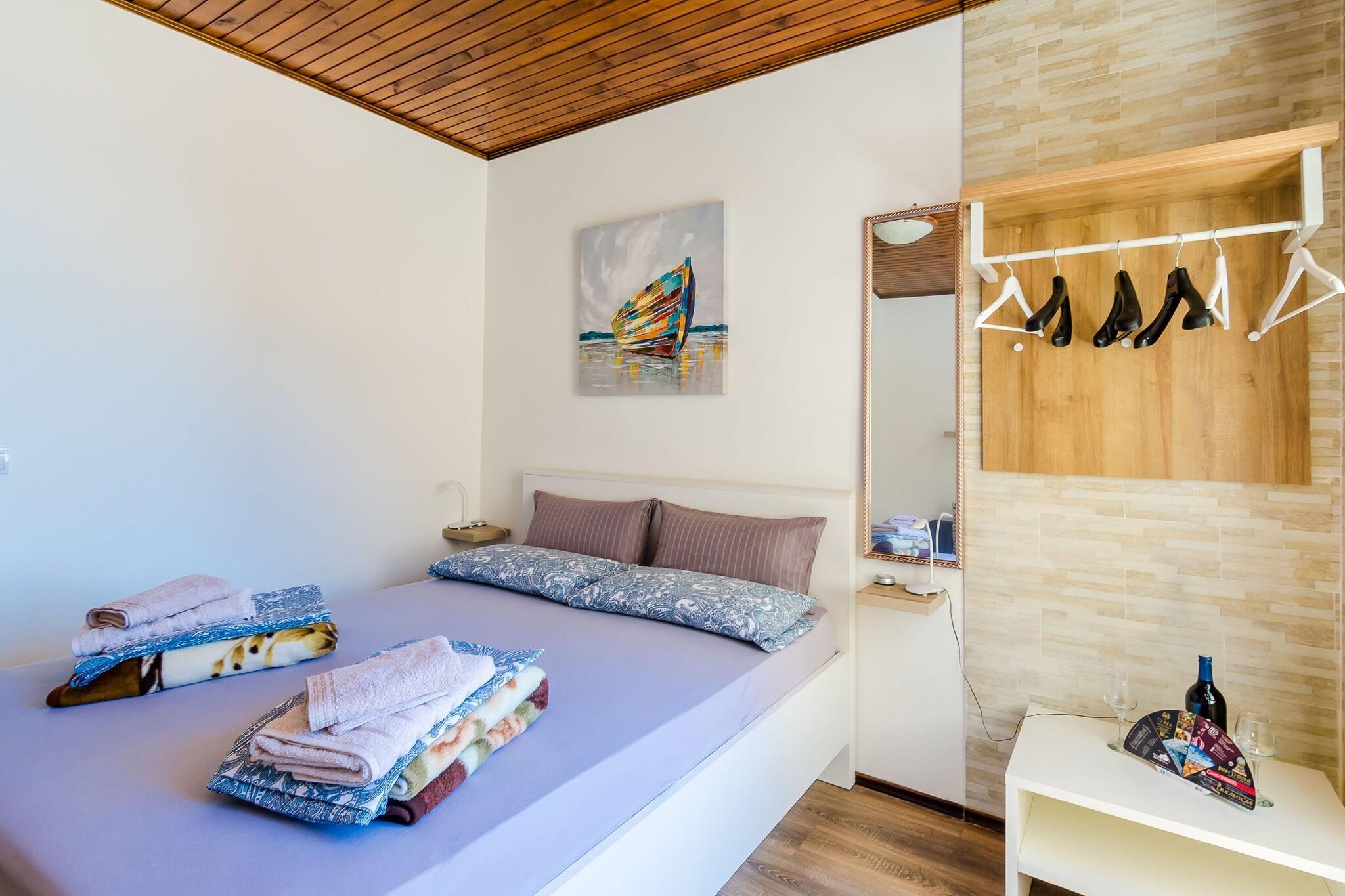 Værelser City Central Old Town er ideelt beliggende, da de er lige uden for bymurene og stenkast væk fra alt, hvad Dubrovnik har at byde på, uanset om man er interesseret i den historiske gamle by og dens mange seværdigheder eller i at sole sig i Middelhavets sol og svømme i det krystalklare Adriaterhav. Bagageopbevaring er mulig før check-in og efter check-out, så du kan udforske byen lidt mere før din afrejse. Dette 3-personersværelse har udsigt over Adriaterhavet og er perfekt til op til tre personer. gratis WiFi, aircondition, SAT LCD TV, sofa, køleskab med fryser, elkedel samt eget badeværelse med bruser og toilet. Strygejern, strygefaciliteter, hårtørrer samt sæbe, toiletpapir, håndklæder og sengetøj er til rådighed. Barneseng står til din rådighed.Hvis du vil se en masse berømte seværdigheder, er dette det perfekte sted for dig!Alt hvad du har brug for kan nås inden for gåafstand. Ejendommen ligger kun 1 minuts gang væk fra den nærmeste strand med mange flere af dem i det omkringliggende område. Et supermarked, restauranter, caféer og barer kan nås inden for 20 m. Inde i bymuren, 200 meter fra ejendommen, kan du finde et udendørs grøntmarked og andre butikker, samt et bageri, banker og pengeautomater, caféer, barer og restauranter med lokale og andre retter. behov for offentlig transport, mens du bor her, men hvis du vil se andre dele af byen, kan du være der på 10 minutters kørsel. Taxa- og busstation ligger 5 minutters gang fra ejendommen.Dubrovniks busstation og færgehavn, der forbinder fastlandet med forskellige dalmatiske øer, ligger 15 minutters kørsel fra ejendommen, mens Dubrovnik Lufthavn ligger 19,5 km derfra.