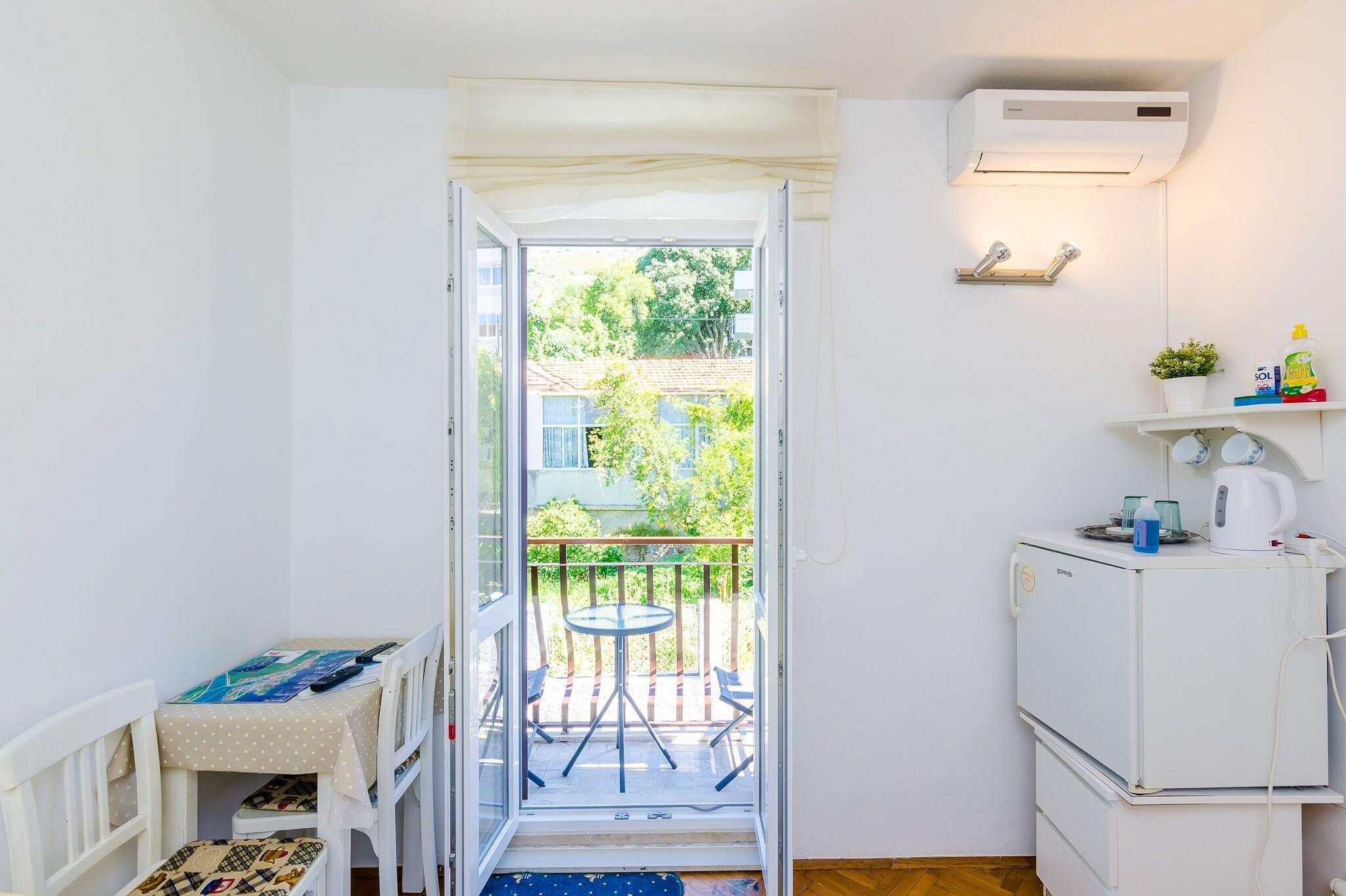 Placeringen af dette værelse er meget populær, fordi alt hvad du har brug for er i nærheden af boligen, og gæsterne kan nå den gamle bydel på mindre end 15 minutters gang. Bagageopbevaring før indtjekning og efter udtjekning er til rådighed, så du kan udforske området lidt mere før afgang. Dette dejlige værelse kan komfortabelt rumme op til 2 personer. Det har gratis WiFi, aircondition og SAT-tv, samt eget badeværelse med bruser. Køleskab og møbleret balkon er også til gæsternes rådighed. De mest interessante seværdigheder kan ses i den berømte gamle bydel i Dubrovnik, som ligger 18 minutters gang fra boligen, samt forskellige strande, restauranter, caféer, barer, butikker, bagerier og banker. Gæsterne kan også finde en købmand og en busstation inden for 100 m. Den nærmeste strand ""Bellevue"" er 800 m væk fra ejendommen. Vi anbefaler at nyde en svævebanetur, stationen ligger kun 20 minutters gang fra Det tilbyder panoramaudsigt over det historiske centrum og de omkringliggende øer.Dubrovniks busstation og færgehavn, der forbinder fastlandet med forskellige dalmatiske øer, ligger 5 minutters kørsel fra overnatningsstedet, mens Dubrovnik Lufthavn ligger 21 km derfra.