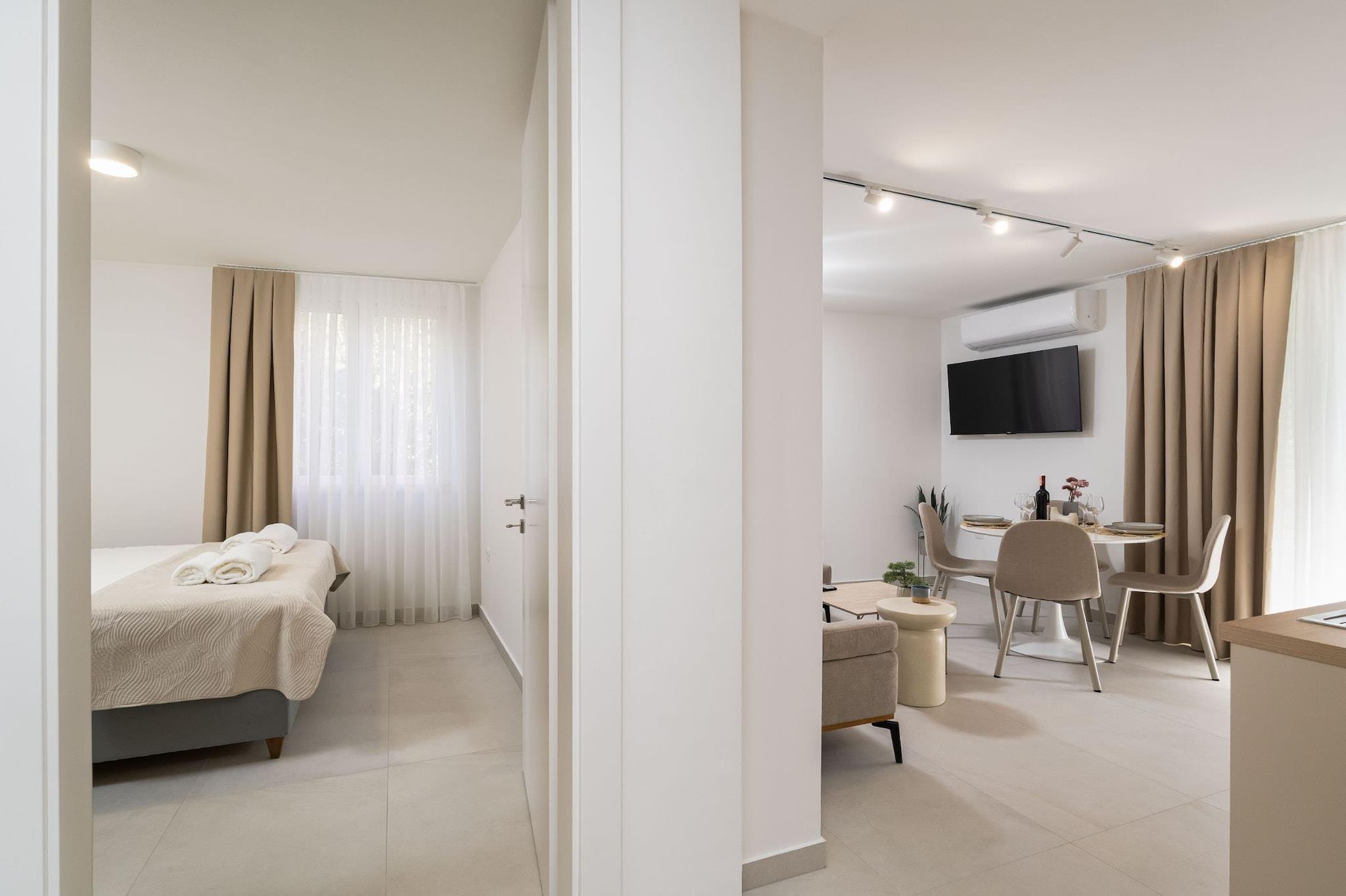 Modern City Escape" in Dubrovnik-Neretva County, Croatia, isn't a specific, widely recognized term, but it can refer to an experience or type of travel that blends modern comforts with the rich cultural history and natural beauty of the region. Dubrovnik-Neretva County is located in the southernmost part of Croatia, and it's a popular destination for travelers seeking a combination of historic exploration and contemporary leisure. Elaphiti Islands: These islands near Dubrovnik offer peaceful escapes with hiking, swimming, and boat tours, combining nature with luxurious services and modern facilities. Mljet National Park: A lush, green island that's known for its saltwater lakes and beautiful hiking trails. Beaches: Dubrovnik-Neretva County is home to some stunning beaches where you can relax in comfort, but also explore seaside cliffs and water sports. Note: Parking is not available. Wi-Fi is available throughout the property. Pets are not allowed. Baby cot is available on request. This apartment features free WiFi, air-conditioning and flat-screen cable TV. Kitchen is fully equipped with refrigerator, oven, water kettle, microwave, and dishwasher. Bathroom is equipped with shower. The apartment will also provide you with a lovely furnished balcony. Thanks to its excellent location, everything you'll need for your vacation is just a short walk away from the property. Grocery stores-50.00 m, cafes and restaurants—300.00 m. The beach is 1.60 km away from the property. Dubrovnik Main Bus Station and Ferry Port are 1.5 km away, while Dubrovnik Airport is 21 km away.