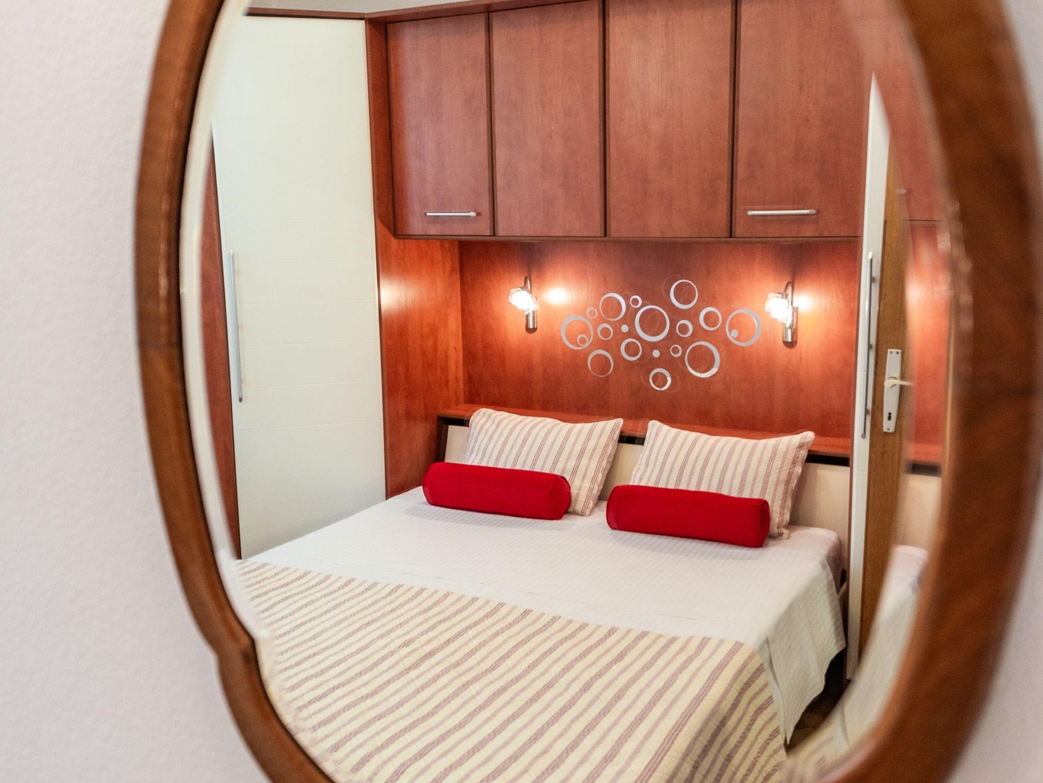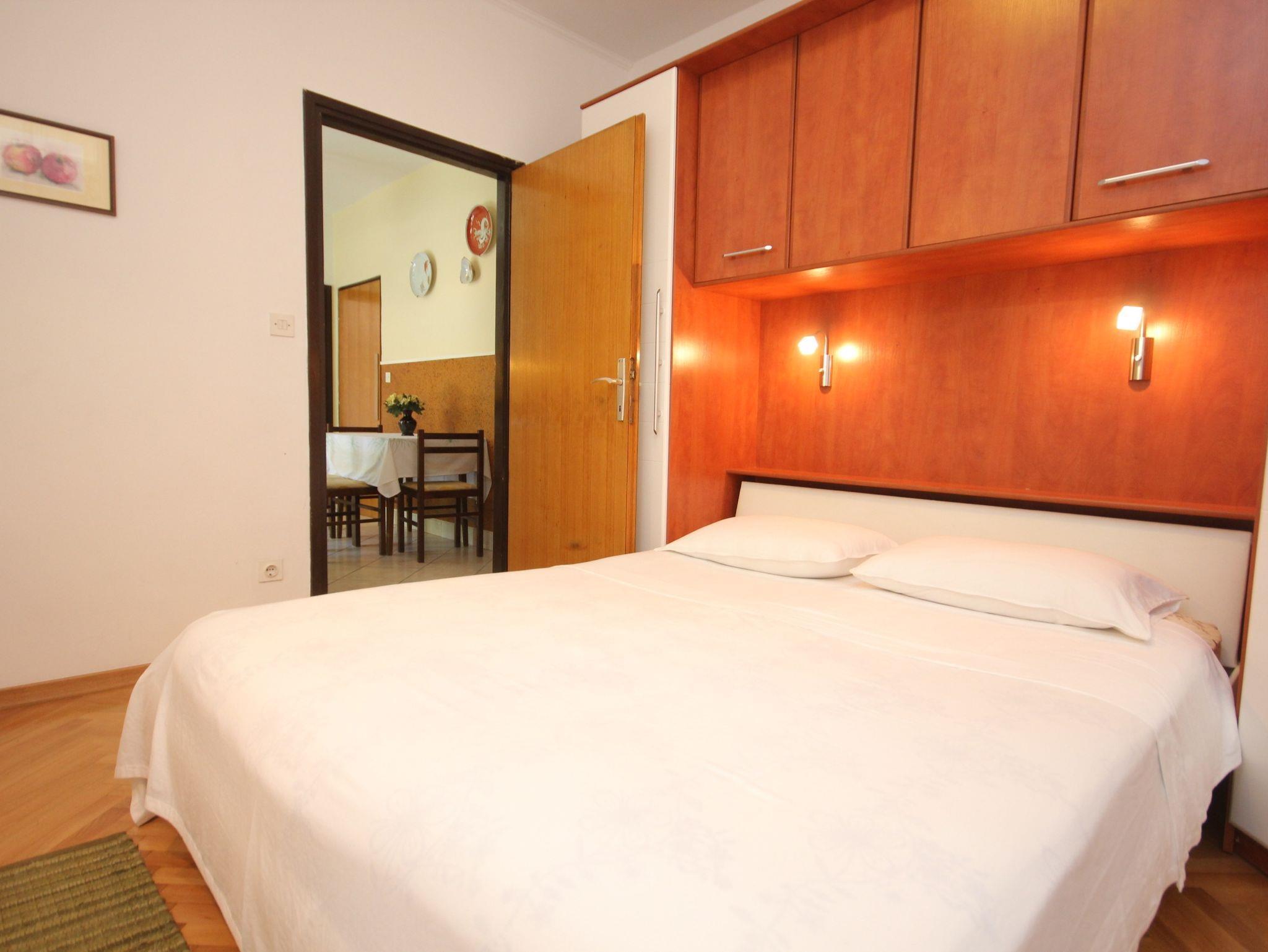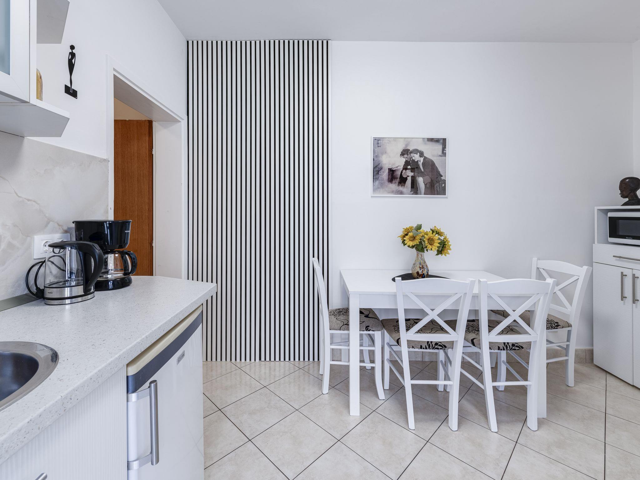 Ferienwohnung bietet Platz für 4 Gäste. Die Betten sind in Schlafzimmern, die es 2 gibt, innerhalb einer Gesamtfläche von 30m2, angeordnet. Es ist erlaubt, Speisen auf dem Gemeinschafts-Grill vorzubereiten. In der Unterkunftseinheit besteht die Möglichkeit des Mitbringens von Haustieren gegen Aufpreis. Die reservierte Unterkunftseinheit verfügt über einen gemeinsame Terrasse. IM PREIS INBEGRIFFEN: Kurtaxe, Endreinigung, Klimatisierung, Internet, Kinderbett, Bügeleisen, Bügelbrett, Föhn. VERBINDLICHE ZUSÄTZLICHE KOSTEN: Aufzahlung für Kurzaufenthalte (prozentualer Zuschlag pro Nächtigungsanzahl: 30% - 1, 20% - 2, 10% - 3). UNVERBINDLICHE ZUSÄTZLICHE KOSTEN: Haustiere (5,00 € pro Nacht). Die Verfügbarkeit zusätzlicher Dienstleistungen in Ihrem reservierten Termin und die Preise derselben (falls nicht aufgeführt) müssen im Voraus überprüft werden. Zusätzliche Dienstleistungen die in der Zahlungsaufforderung nicht aufgeführt sind werden direkt beim Vermieter bezahlt, angenommen der Gast nutzt auch diese. Ermäßigung auf den Grundpreis: Gratistag 14=13 (bei einem Aufenthalt von 14 Tagen oder mehr erhalten Sie einen Gratistag für den Aufenthalt bis 31.12.26).