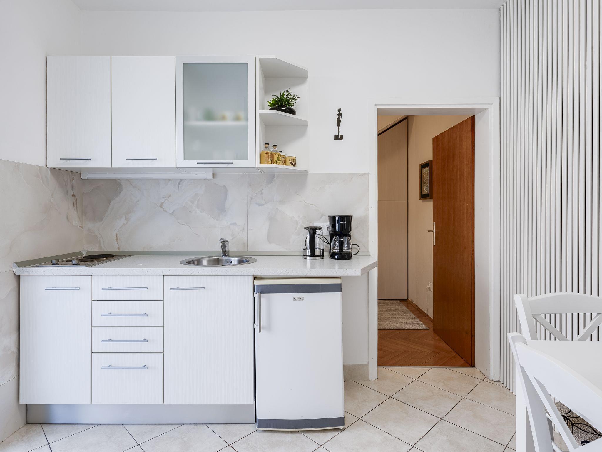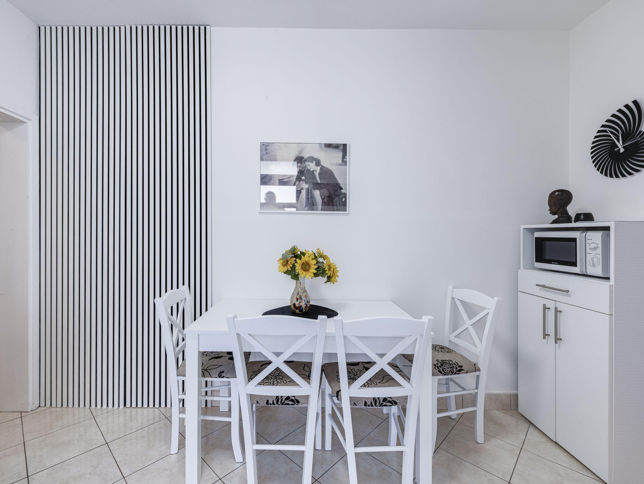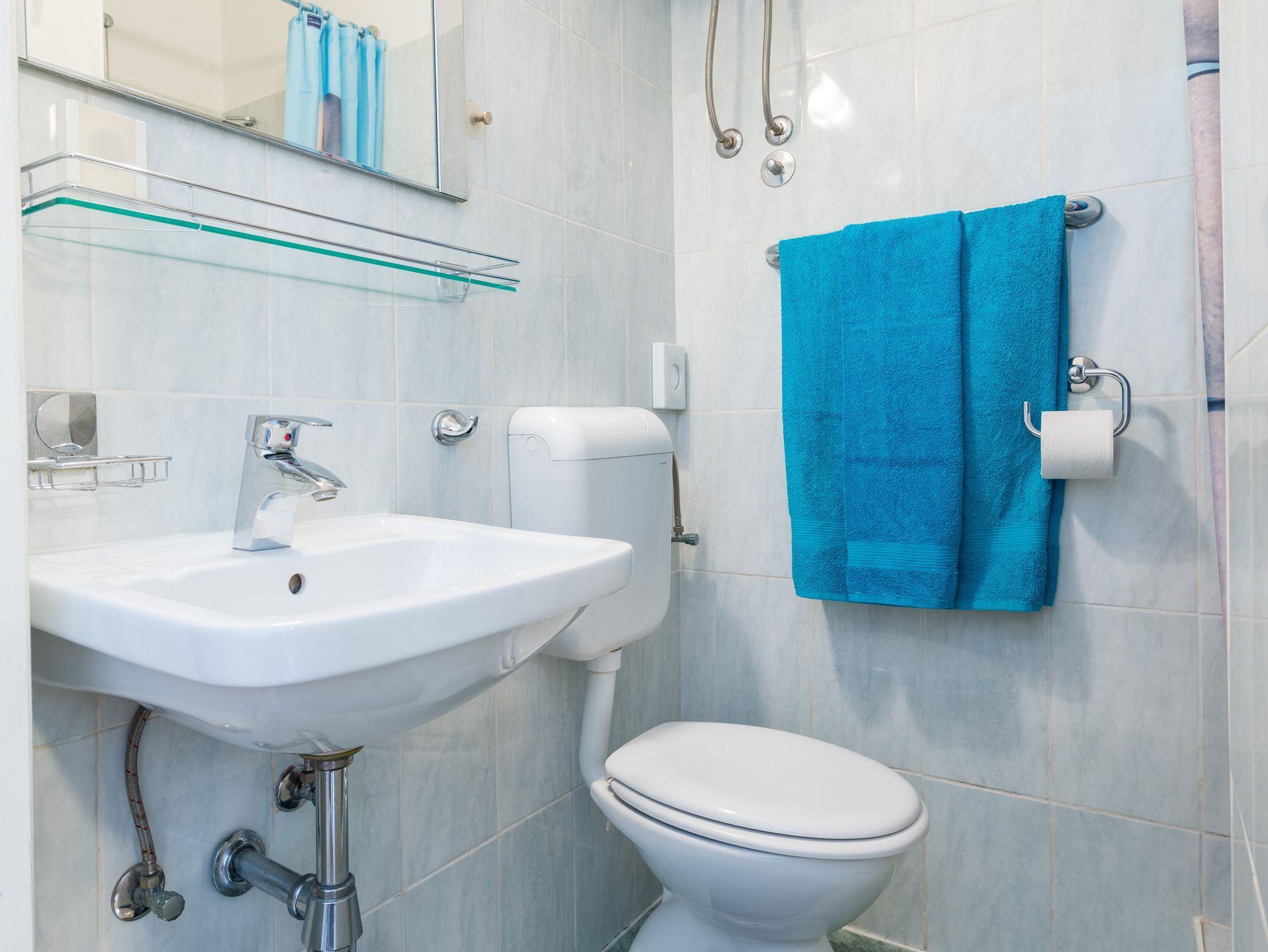 Ferienwohnung bietet Platz für 4 Gäste. Die Betten sind in Schlafzimmern, die es 2 gibt, innerhalb einer Gesamtfläche von 30m2, angeordnet. Es ist erlaubt, Speisen auf dem Gemeinschafts-Grill vorzubereiten. In der Unterkunftseinheit besteht die Möglichkeit des Mitbringens von Haustieren gegen Aufpreis. Die reservierte Unterkunftseinheit verfügt über einen gemeinsame Terrasse. IM PREIS INBEGRIFFEN: Kurtaxe, Endreinigung, Klimatisierung, Internet, Kinderbett, Bügeleisen, Bügelbrett, Föhn. VERBINDLICHE ZUSÄTZLICHE KOSTEN: Aufzahlung für Kurzaufenthalte (prozentualer Zuschlag pro Nächtigungsanzahl: 30% - 1, 20% - 2, 10% - 3). UNVERBINDLICHE ZUSÄTZLICHE KOSTEN: Haustiere (5,00 € pro Nacht). Die Verfügbarkeit zusätzlicher Dienstleistungen in Ihrem reservierten Termin und die Preise derselben (falls nicht aufgeführt) müssen im Voraus überprüft werden. Zusätzliche Dienstleistungen die in der Zahlungsaufforderung nicht aufgeführt sind werden direkt beim Vermieter bezahlt, angenommen der Gast nutzt auch diese. Ermäßigung auf den Grundpreis: Gratistag 14=13 (bei einem Aufenthalt von 14 Tagen oder mehr erhalten Sie einen Gratistag für den Aufenthalt bis 31.12.26).
