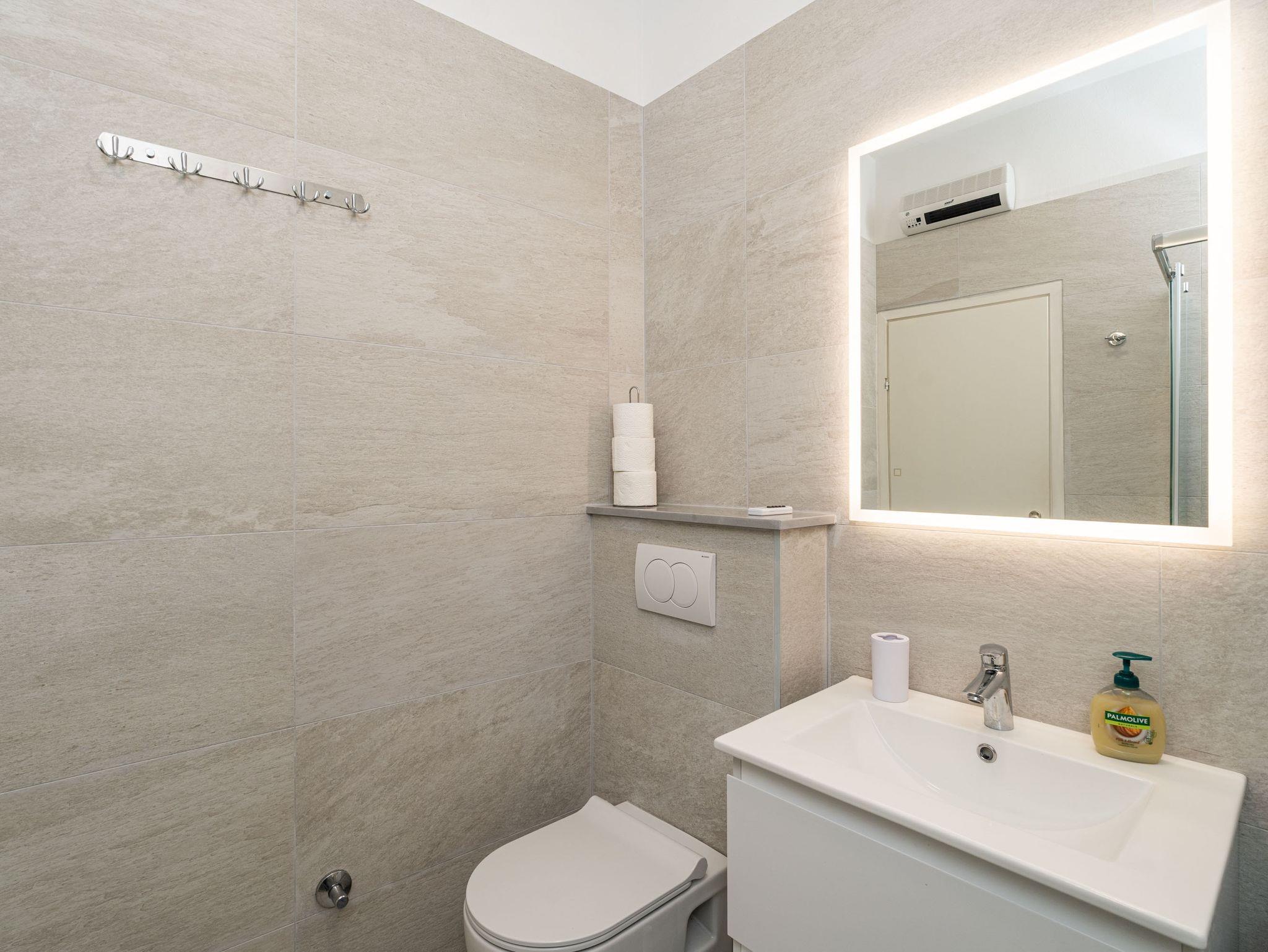 Ferienwohnung bietet Platz für 4 Gäste. Die Betten sind in Schlafzimmern, die es 1 gibt, und in Wohnzimmer, innerhalb einer Gesamtfläche von 31m2, angeordnet. Die Gäste haben eine eigene Terrasse zur Verfügung, auf der sie in warmen Sommernächten genießen können. Es ist erlaubt, Speisen auf dem Gemeinschafts-Grill vorzubereiten. IM PREIS INBEGRIFFEN: Kurtaxe, Endreinigung, Klimatisierung, Parkplatz, Internet, Bügeleisen, Bügelbrett, Föhn. VERBINDLICHE ZUSÄTZLICHE KOSTEN: Aufzahlung für Kurzaufenthalte (prozentualer Zuschlag pro Nächtigungsanzahl: 30% - 1, 20% - 2, 10% - 3). Die Verfügbarkeit zusätzlicher Dienstleistungen in Ihrem reservierten Termin und die Preise derselben (falls nicht aufgeführt) müssen im Voraus überprüft werden. Zusätzliche Dienstleistungen die in der Zahlungsaufforderung nicht aufgeführt sind werden direkt beim Vermieter bezahlt, angenommen der Gast nutzt auch diese.