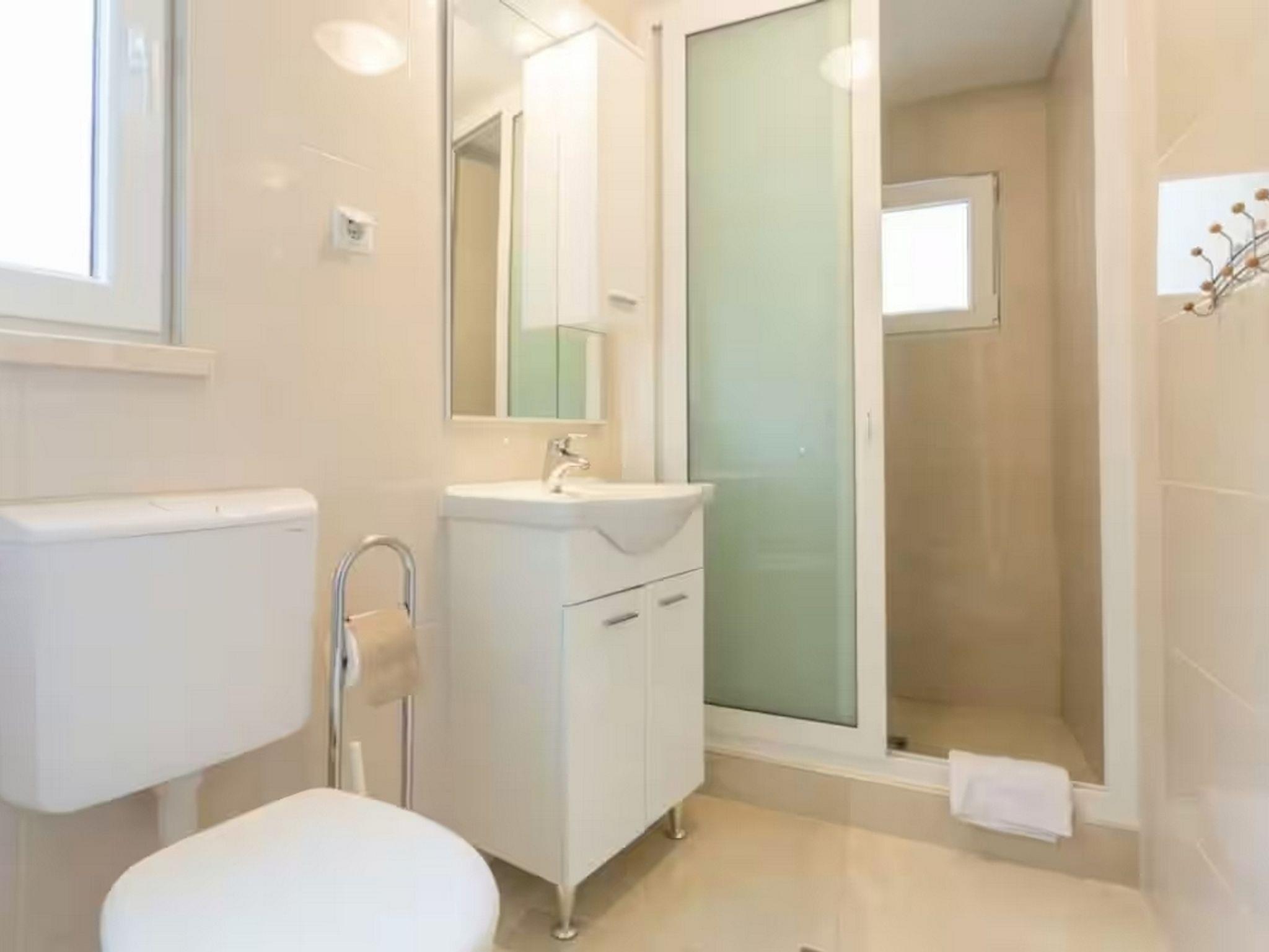 Ferienwohnung bietet Platz für 4 Gäste. Die Betten sind in Schlafzimmern, die es 2 gibt, innerhalb einer Gesamtfläche von 52m2, angeordnet. Die Gäste haben eine eigene Terrasse zur Verfügung, auf der sie in warmen Sommernächten genießen können. Es ist erlaubt, Speisen auf dem Gemeinschafts-Grill vorzubereiten. In der gebuchten Unterkunftseinheit zahlt man am Ort ein Depositum ( der Preis ist an der Internetseite angeführt ). IM PREIS INBEGRIFFEN: Kurtaxe, Endreinigung, Klimatisierung, Parkplatz, Internet, Kinderbett, Bügeleisen, Bügelbrett, Föhn. VERBINDLICHE ZUSÄTZLICHE KOSTEN: Kaution (200,00 € Einmalzahlung), Aufzahlung für Kurzaufenthalte (prozentualer Zuschlag pro Nächtigungsanzahl: 30% - 1, 20% - 2, 10% - 3). Die Verfügbarkeit zusätzlicher Dienstleistungen in Ihrem reservierten Termin und die Preise derselben (falls nicht aufgeführt) müssen im Voraus überprüft werden. Zusätzliche Dienstleistungen die in der Zahlungsaufforderung nicht aufgeführt sind werden direkt beim Vermieter bezahlt, angenommen der Gast nutzt auch diese.
