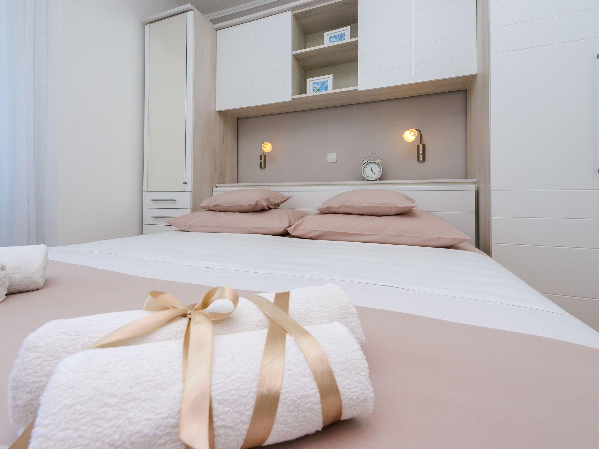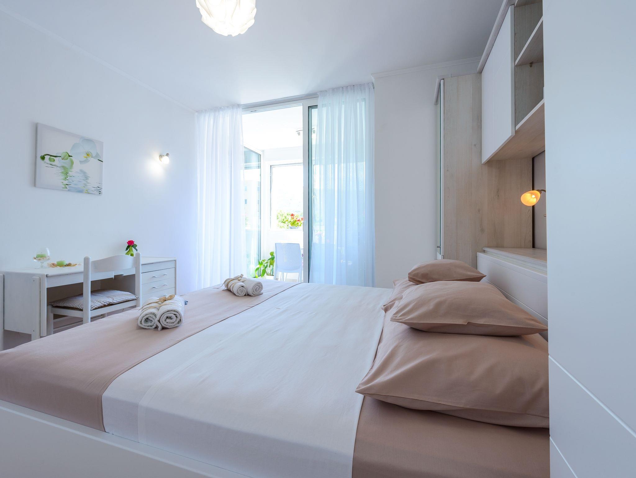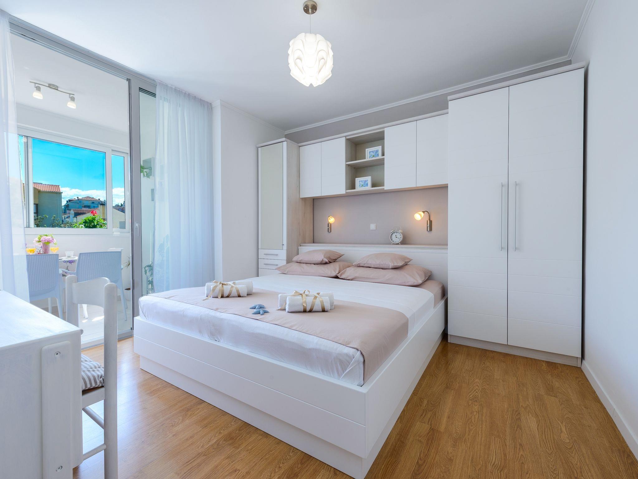 Ferienwohnung bietet Platz für 4 Gäste. Die Betten sind in Schlafzimmern, die es 2 gibt, innerhalb einer Gesamtfläche von 51m2, angeordnet. Die Gäste haben eine eigene Terrasse zur Verfügung, auf der sie in warmen Sommernächten genießen können. IM PREIS INBEGRIFFEN: Kurtaxe, Endreinigung, Klimatisierung, Parkplatz, Internet, Kinderbett, Bügeleisen, Bügelbrett, Föhn. VERBINDLICHE ZUSÄTZLICHE KOSTEN: Aufzahlung für Kurzaufenthalte (prozentualer Zuschlag pro Nächtigungsanzahl: 30% - 1, 20% - 2, 10% - 3). UNVERBINDLICHE ZUSÄTZLICHE KOSTEN: Zusatzbett (20,00 € pro Nacht). Die Verfügbarkeit zusätzlicher Dienstleistungen in Ihrem reservierten Termin und die Preise derselben (falls nicht aufgeführt) müssen im Voraus überprüft werden. Zusätzliche Dienstleistungen die in der Zahlungsaufforderung nicht aufgeführt sind werden direkt beim Vermieter bezahlt, angenommen der Gast nutzt auch diese. Ermäßigung auf den Grundpreis: Aktion (erzielen Sie während der Buchung zusätzliche Ermäßigung von 10%).
