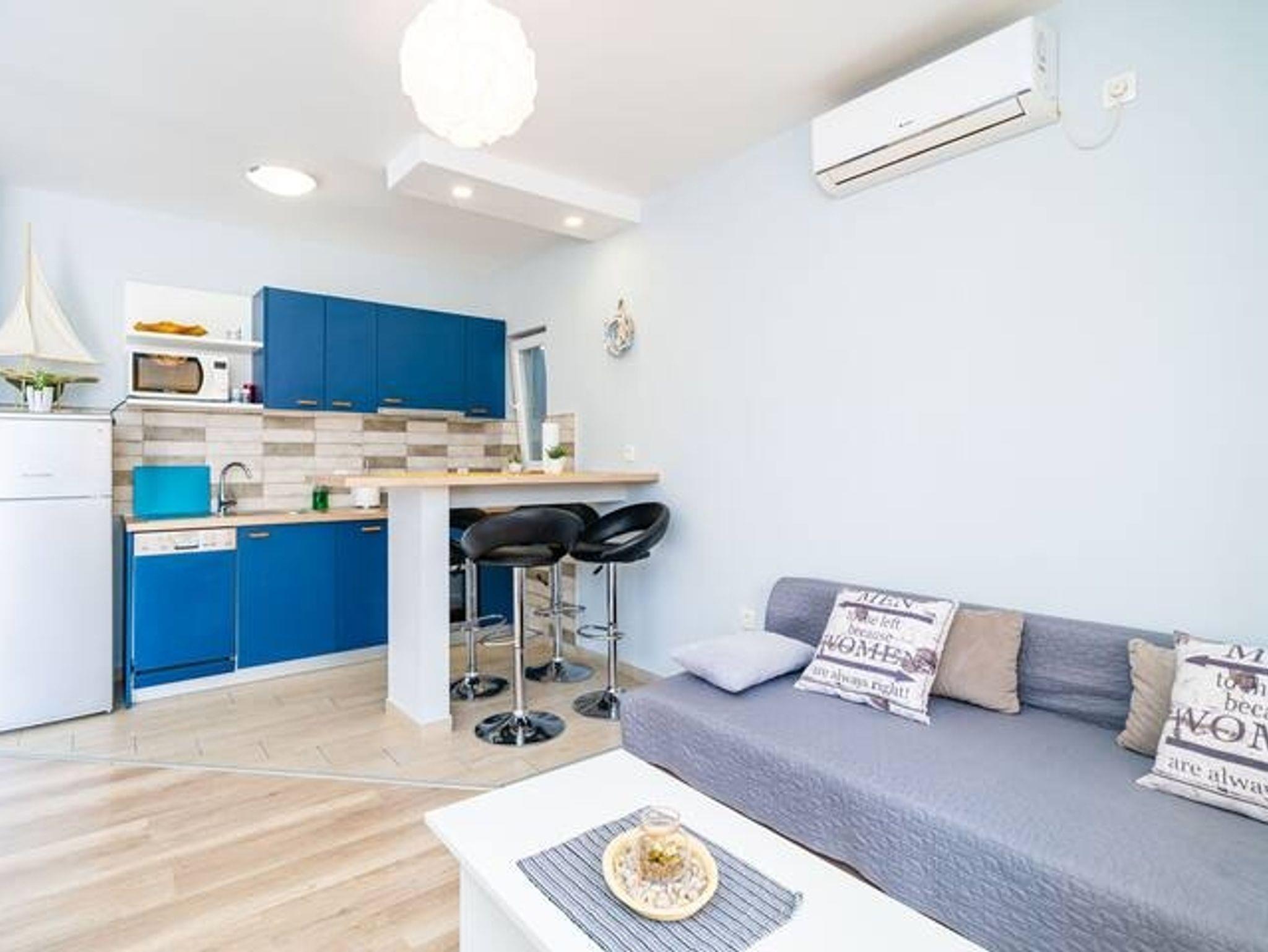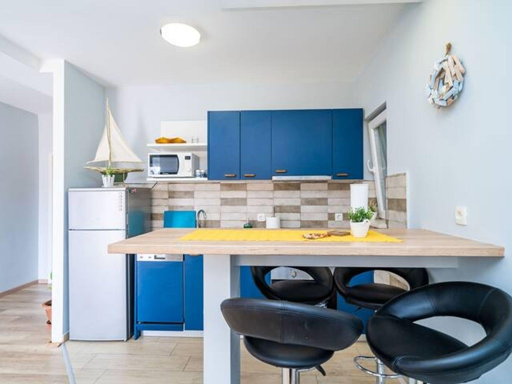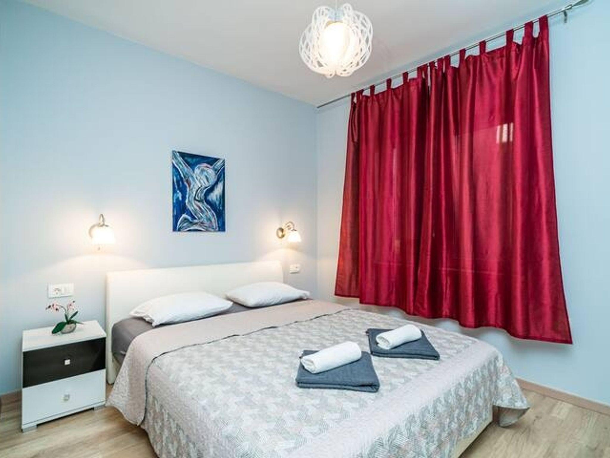 Ferienwohnung bietet Platz für 4 Gäste. Die Betten sind in Schlafzimmern, die es 1 gibt, und in Wohnzimmer, innerhalb einer Gesamtfläche von 37m2, angeordnet. Die Gäste haben eine eigene Terrasse zur Verfügung, auf der sie in warmen Sommernächten genießen können. Das Apartment bietet Meerblick. Für vollen Genuss und Entspannung gibt es einen privaten Grill für Gäste dieser Unterkunft. In der Unterkunftseinheit besteht die Möglichkeit des Mitbringens von Haustieren gegen Aufpreis. IM PREIS INBEGRIFFEN: Kurtaxe, Endreinigung, Klimatisierung, Parkplatz, Internet, Kinderbett, Bügeleisen, Bügelbrett, Föhn, Sonnenschirm. UNVERBINDLICHE ZUSÄTZLICHE KOSTEN: Haustiere (20,00 € pro Nacht). Die Verfügbarkeit zusätzlicher Dienstleistungen in Ihrem reservierten Termin und die Preise derselben (falls nicht aufgeführt) müssen im Voraus überprüft werden. Zusätzliche Dienstleistungen die in der Zahlungsaufforderung nicht aufgeführt sind werden direkt beim Vermieter bezahlt, angenommen der Gast nutzt auch diese. Ermäßigung auf den Grundpreis: Gratistag 14=13 (bei einem Aufenthalt von 14 Tagen oder mehr erhalten Sie einen Gratistag für den Aufenthalt bis 31.12.25).