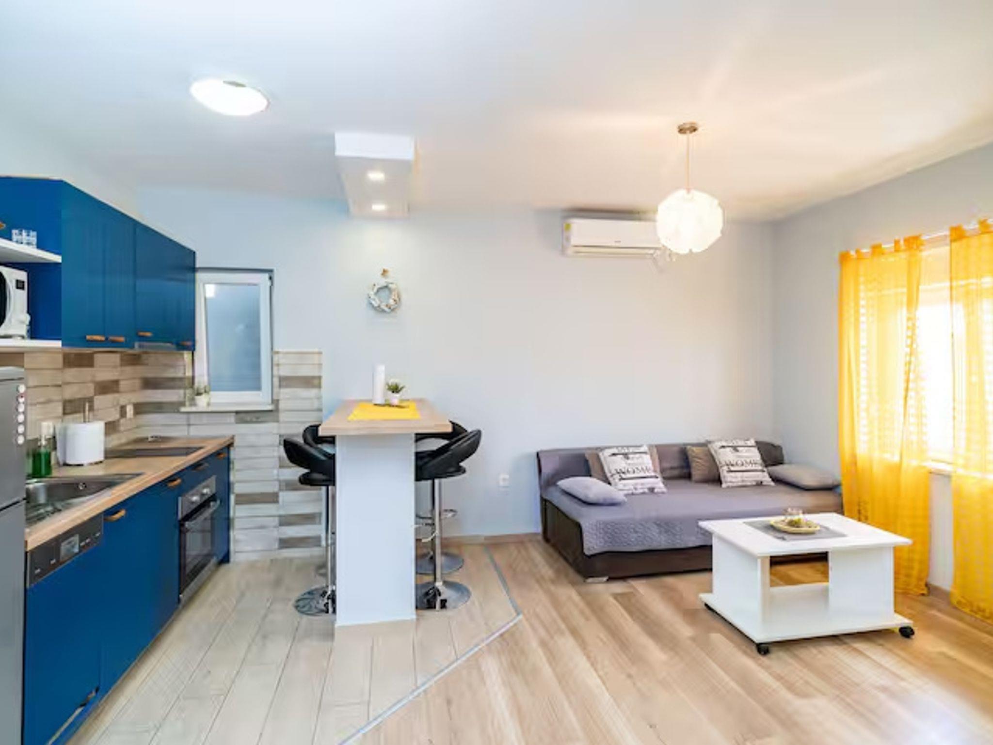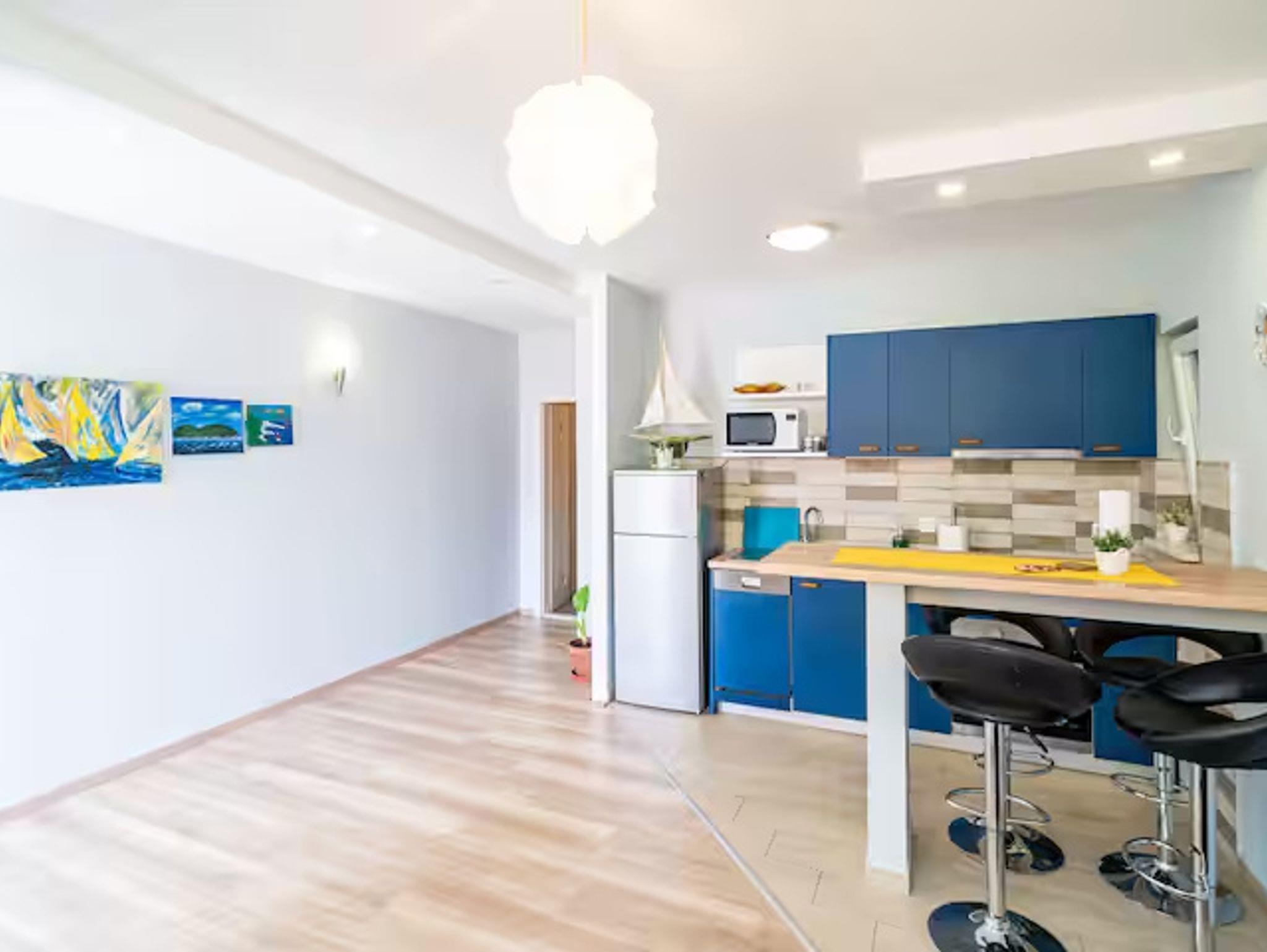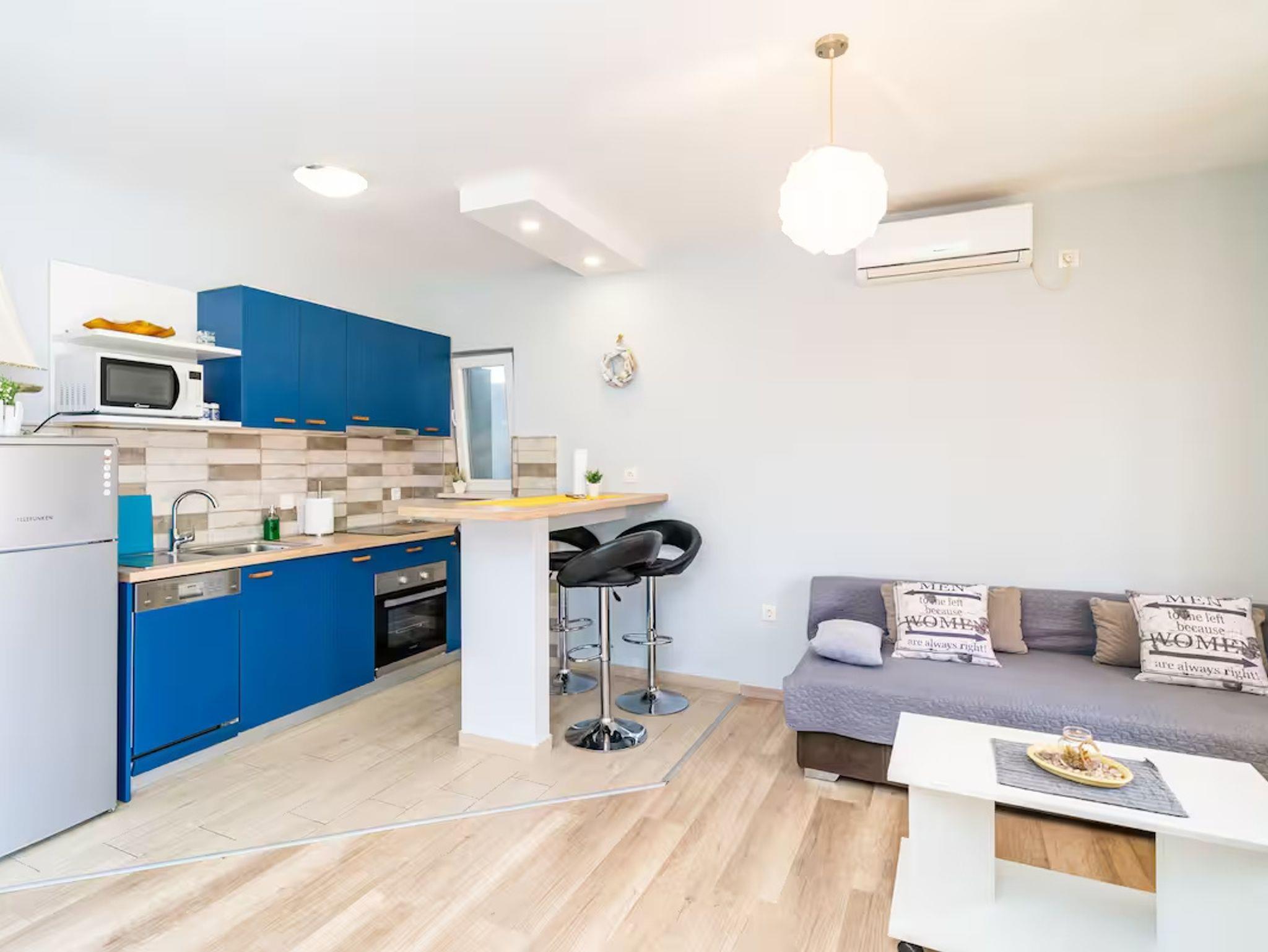 Ferienwohnung bietet Platz für 4 Gäste. Die Betten sind in Schlafzimmern, die es 1 gibt, und in Wohnzimmer, innerhalb einer Gesamtfläche von 37m2, angeordnet. Die Gäste haben eine eigene Terrasse zur Verfügung, auf der sie in warmen Sommernächten genießen können. Das Apartment bietet Meerblick. Für vollen Genuss und Entspannung gibt es einen privaten Grill für Gäste dieser Unterkunft. In der Unterkunftseinheit besteht die Möglichkeit des Mitbringens von Haustieren gegen Aufpreis. IM PREIS INBEGRIFFEN: Kurtaxe, Endreinigung, Klimatisierung, Parkplatz, Internet, Kinderbett, Bügeleisen, Bügelbrett, Föhn, Sonnenschirm. UNVERBINDLICHE ZUSÄTZLICHE KOSTEN: Haustiere (20,00 € pro Nacht). Die Verfügbarkeit zusätzlicher Dienstleistungen in Ihrem reservierten Termin und die Preise derselben (falls nicht aufgeführt) müssen im Voraus überprüft werden. Zusätzliche Dienstleistungen die in der Zahlungsaufforderung nicht aufgeführt sind werden direkt beim Vermieter bezahlt, angenommen der Gast nutzt auch diese. Ermäßigung auf den Grundpreis: Gratistag 14=13 (bei einem Aufenthalt von 14 Tagen oder mehr erhalten Sie einen Gratistag für den Aufenthalt bis 31.12.25).