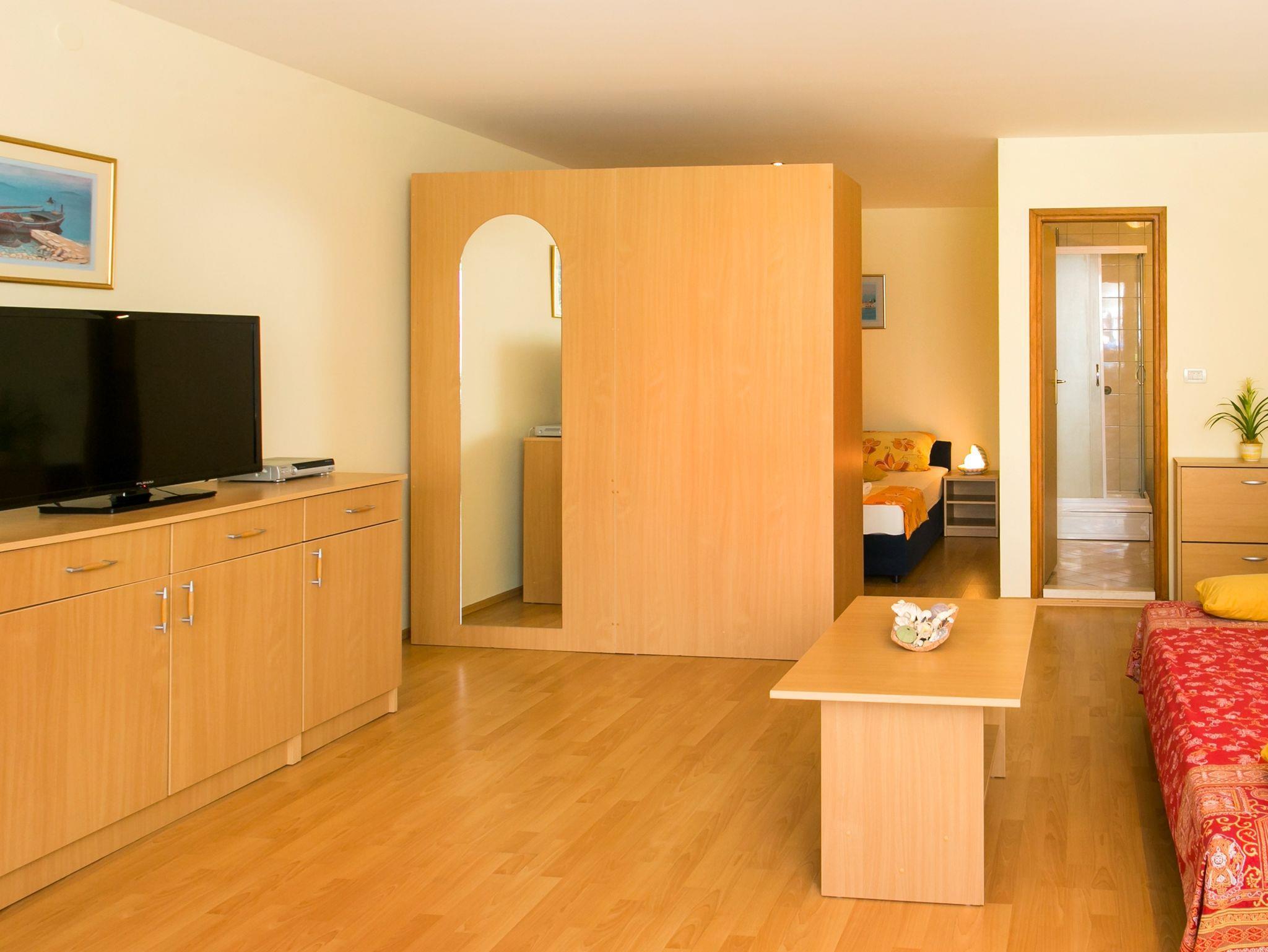 Studio bietet Platz für 4 Gäste. Die Betten sind in Schlafzimmern, die es 1 gibt, und in Wohnzimmer, innerhalb einer Gesamtfläche von 38m2, angeordnet. Die Gäste haben eine eigene Terrasse zur Verfügung, auf der sie in warmen Sommernächten genießen können. IM PREIS INBEGRIFFEN: Kurtaxe, Endreinigung, Klimatisierung, Parkplatz, Internet, Kinderbett, Bügeleisen, Bügelbrett, Föhn. Die Verfügbarkeit zusätzlicher Dienstleistungen in Ihrem reservierten Termin und die Preise derselben (falls nicht aufgeführt) müssen im Voraus überprüft werden. Zusätzliche Dienstleistungen die in der Zahlungsaufforderung nicht aufgeführt sind werden direkt beim Vermieter bezahlt, angenommen der Gast nutzt auch diese. Ermäßigung auf den Grundpreis: Gratistag 14=13 (bei einem Aufenthalt von 14 Tagen oder mehr erhalten Sie einen Gratistag für den Aufenthalt bis 31.12.26).