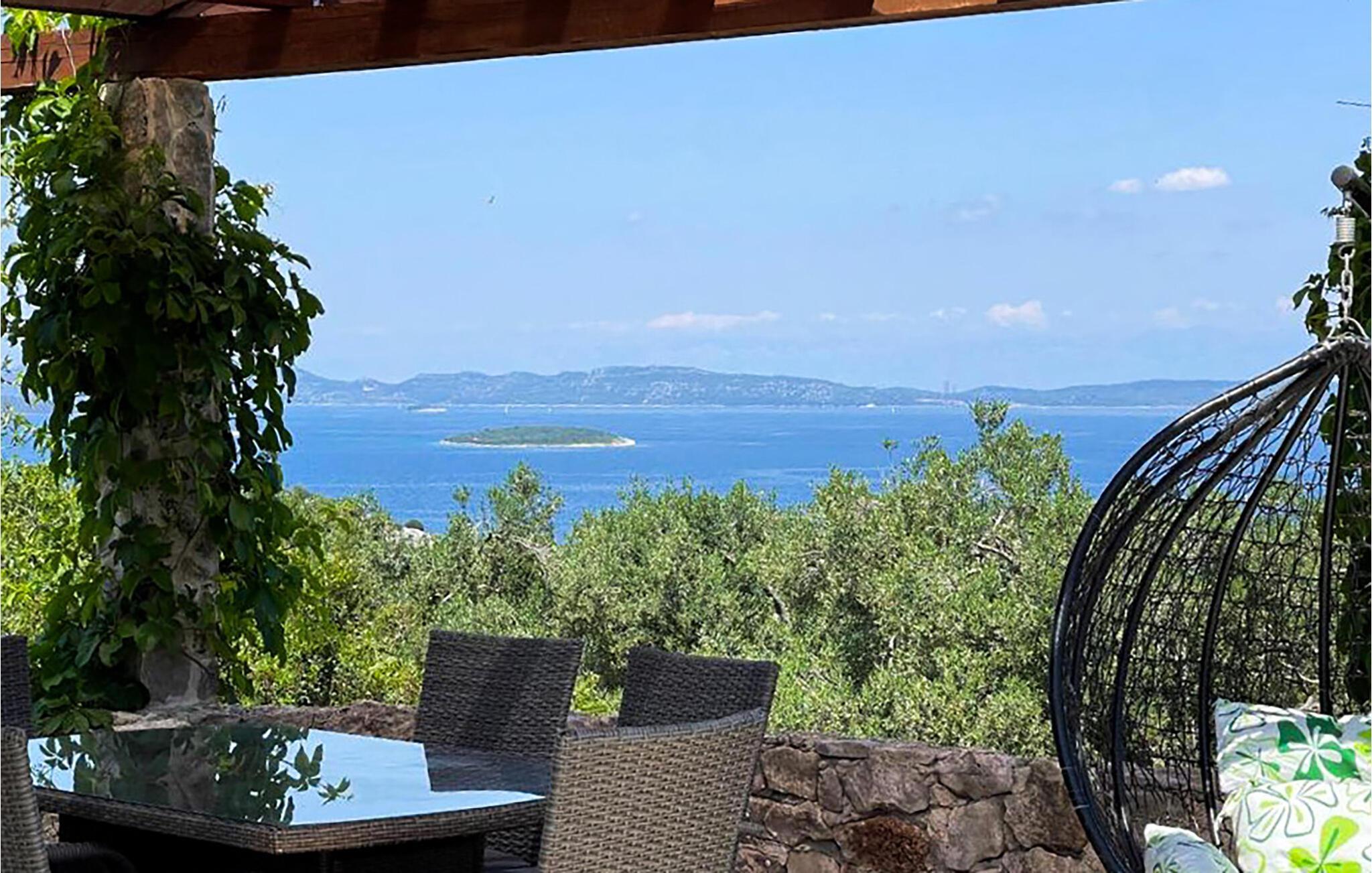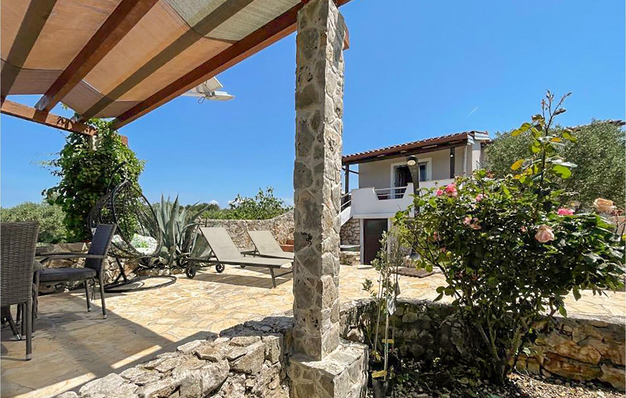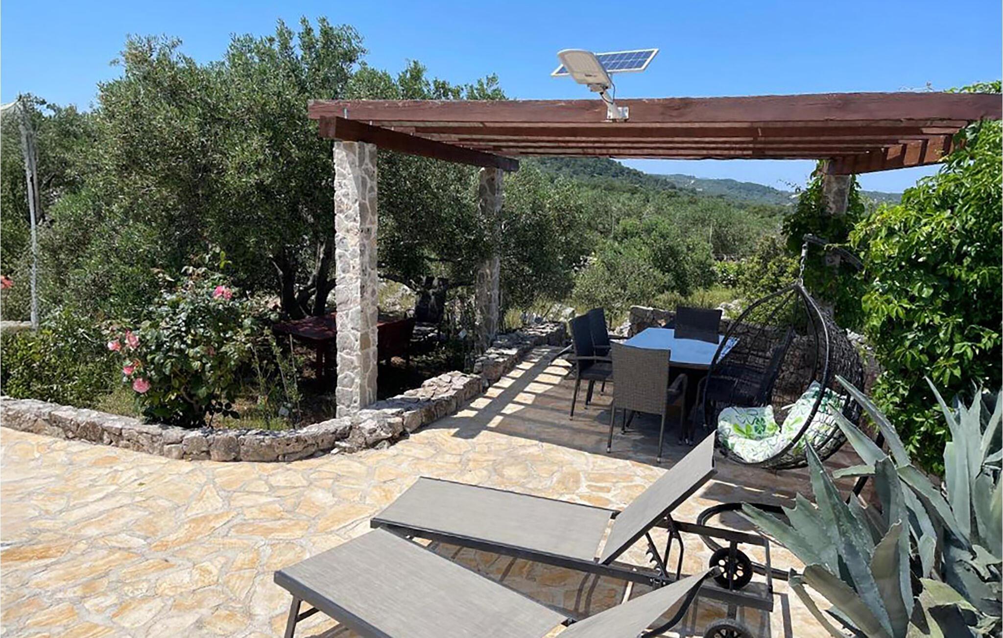 Udenfor finder I en have i middelhavsstil med terrasser, liggestole og en overdækket spiseplads. Slap af i hængestolen, nyd udsigten over det krystalklare hav og lyt til naturens lyde. Det omkringliggende landskab med oliventræer og stenmure tilbyder en idyllisk atmosfære til rolige timer.