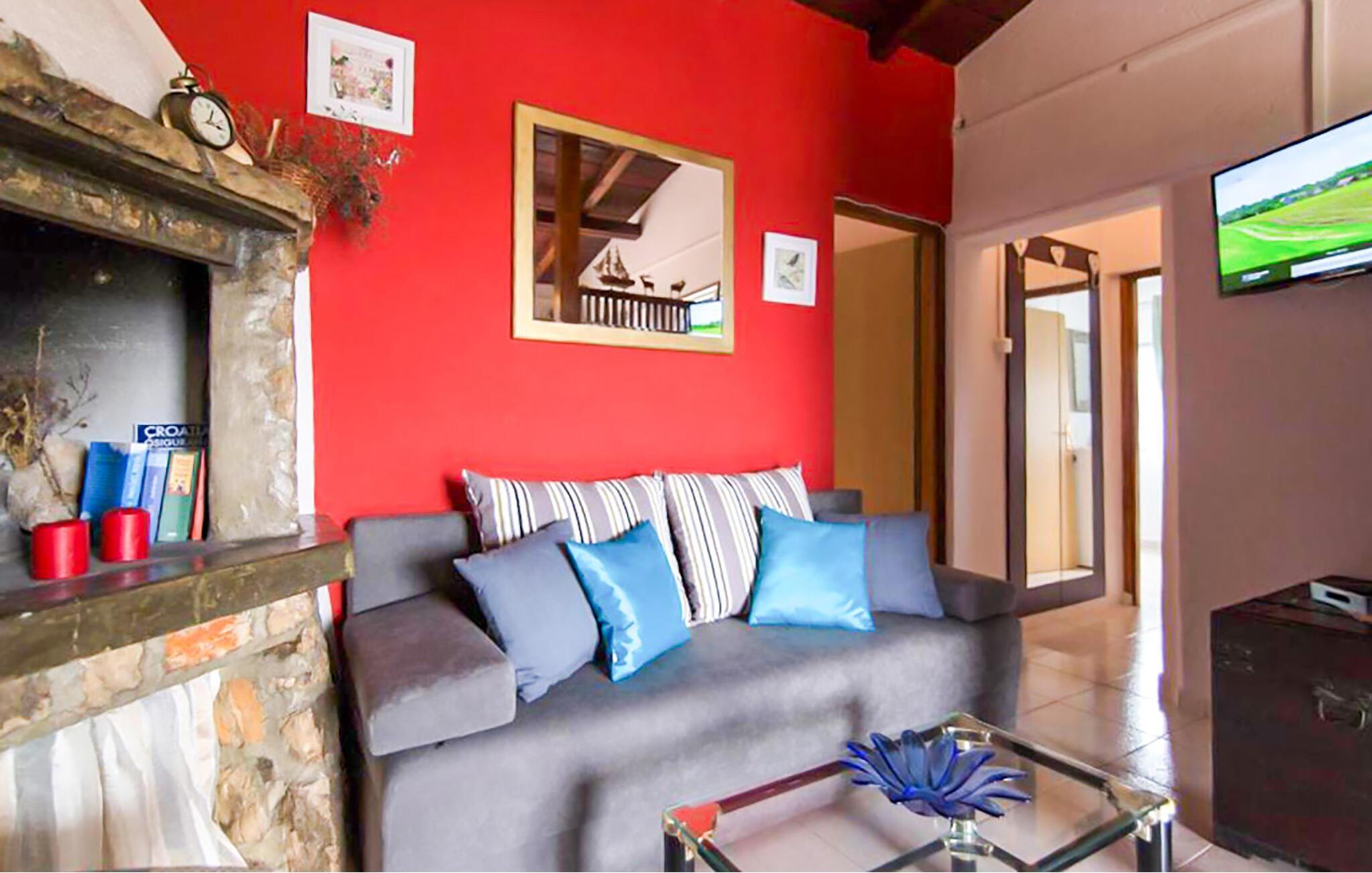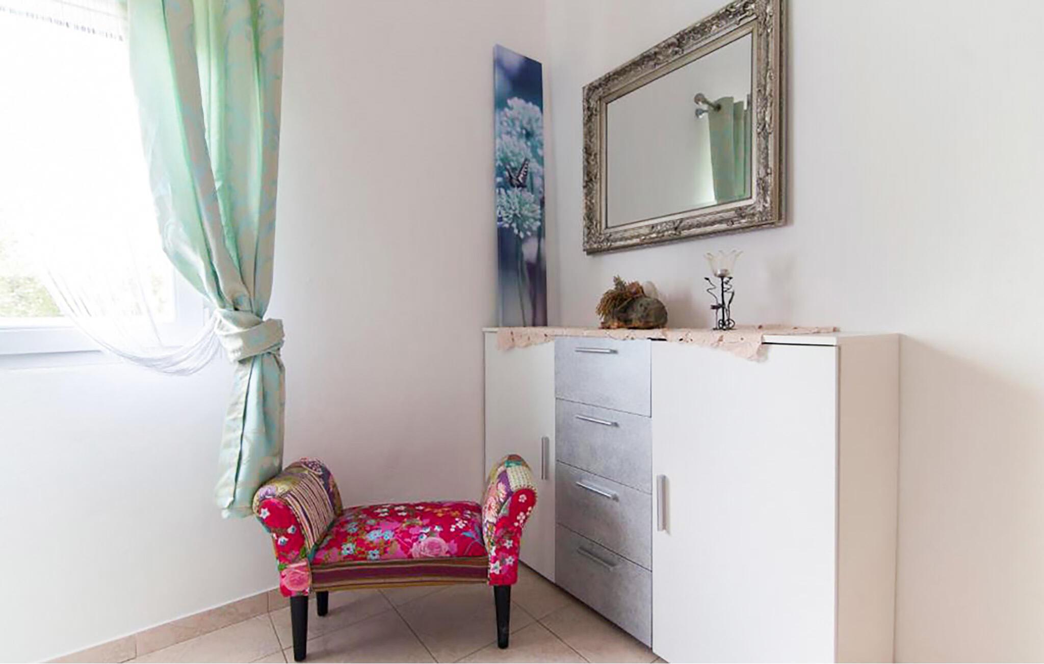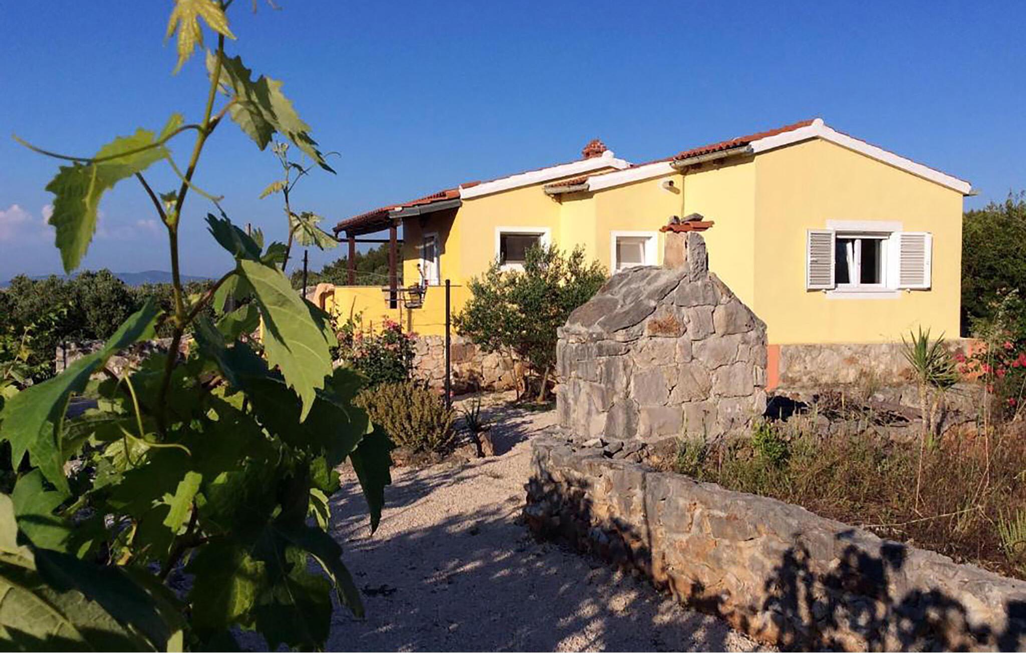 Udenfor finder I en have i middelhavsstil med terrasser, liggestole og en overdækket spiseplads. Slap af i hængestolen, nyd udsigten over det krystalklare hav og lyt til naturens lyde. Det omkringliggende landskab med oliventræer og stenmure tilbyder en idyllisk atmosfære til rolige timer.