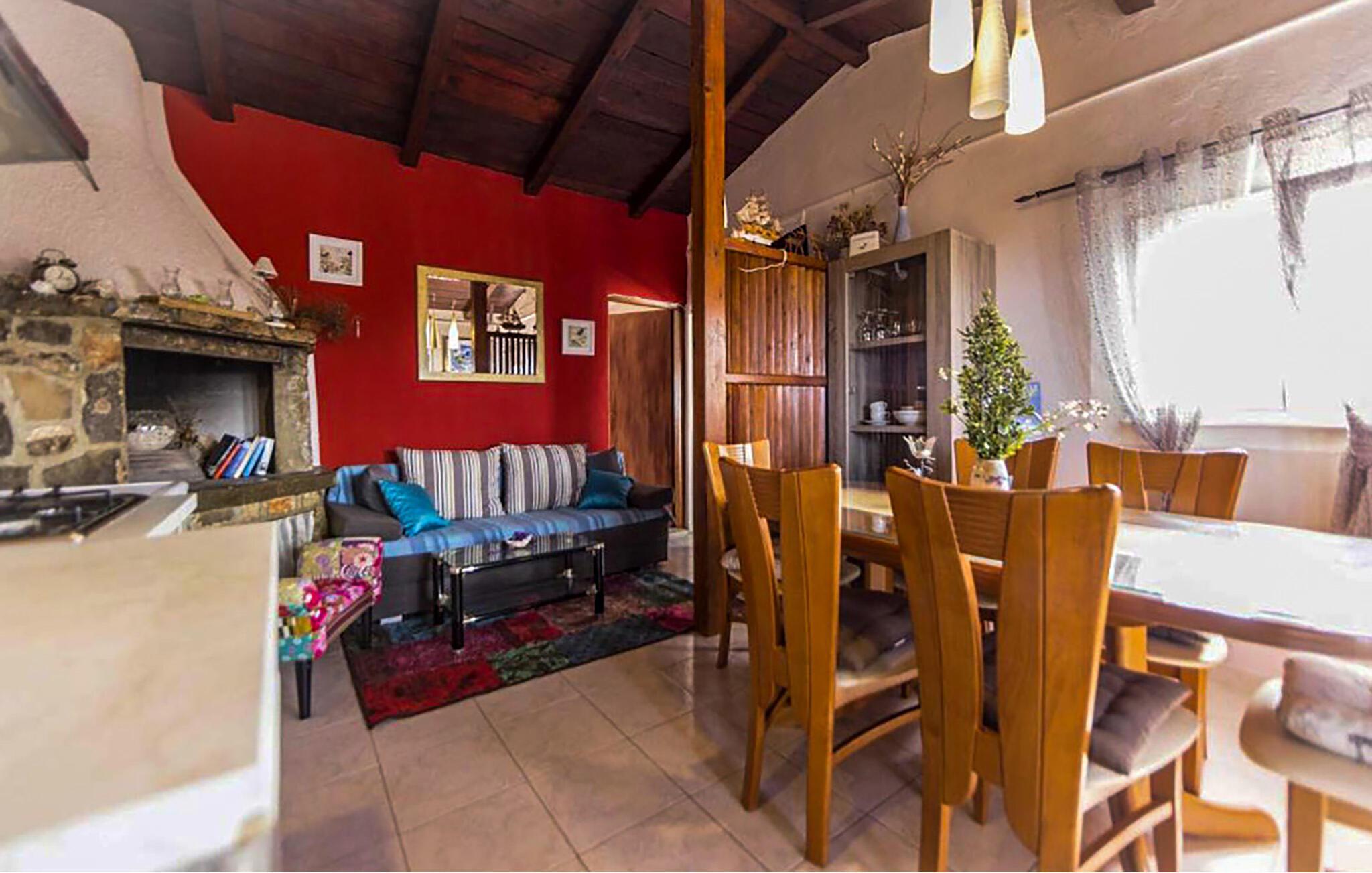 Tilbring afslappende dage i dette roligt beliggende feriehus. Huset ligger på en rummelig grund og tilbyder jer absolut privatliv. Husets interiør er charmerende møbleret med en behagelig sofa, farverige detaljer og et rustikt træloft. Madlav i det åbne køkken med traditionel stenovn og nyd dagens måltider ved det store spisebord. Lad dagen slutte i stuen, læs en god bog eller fordyb jer i stimulerende samtaler.
