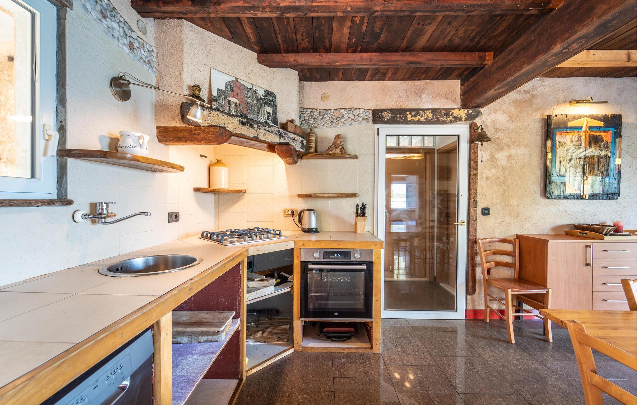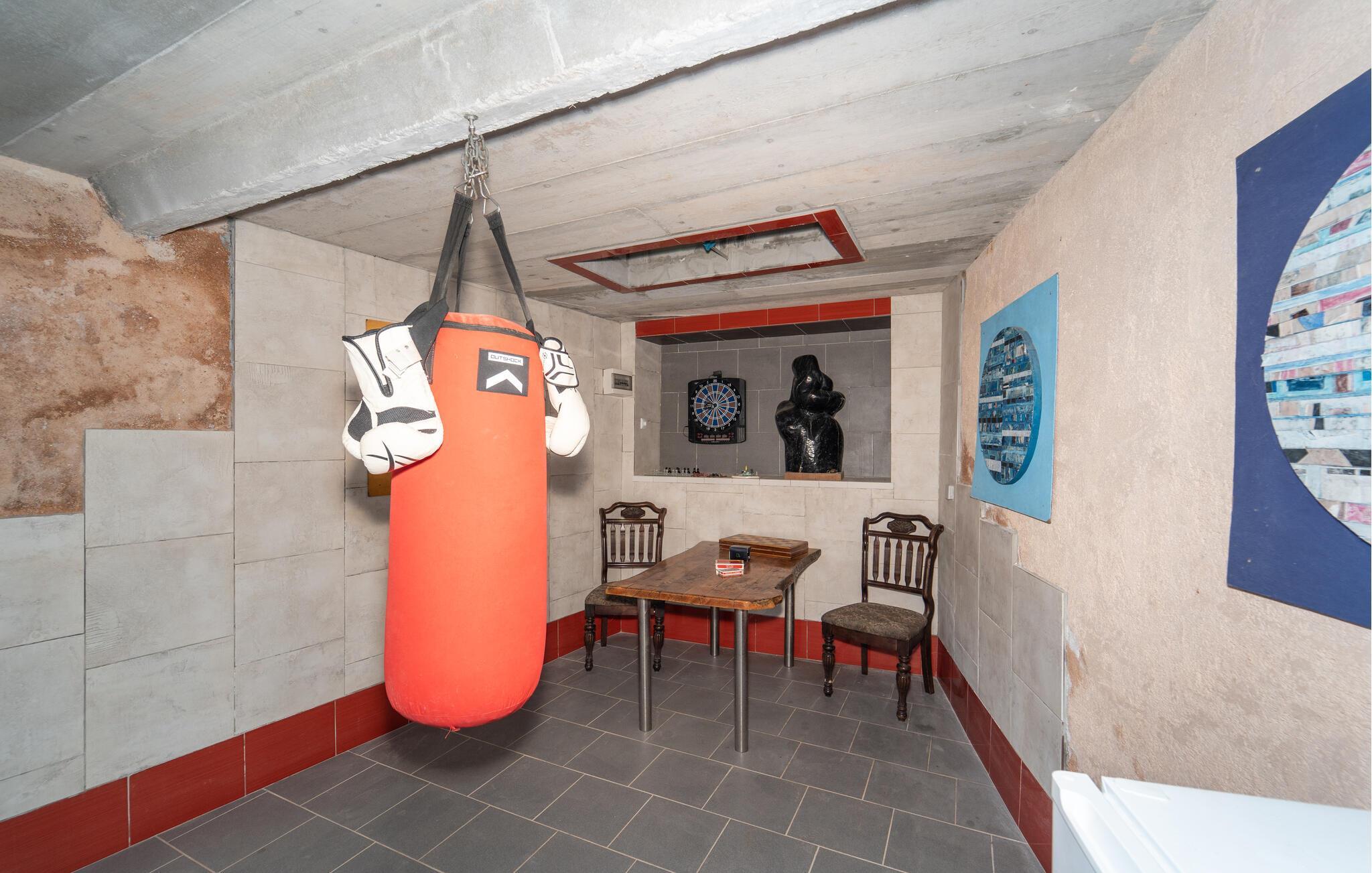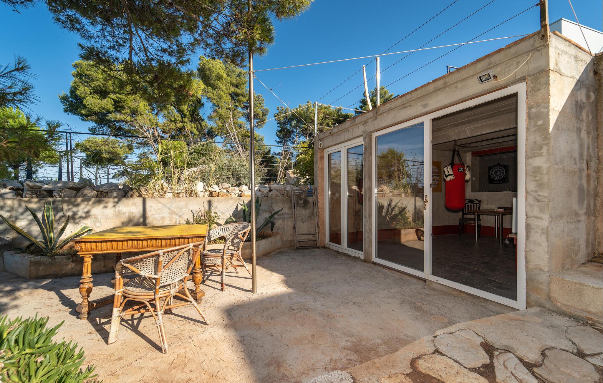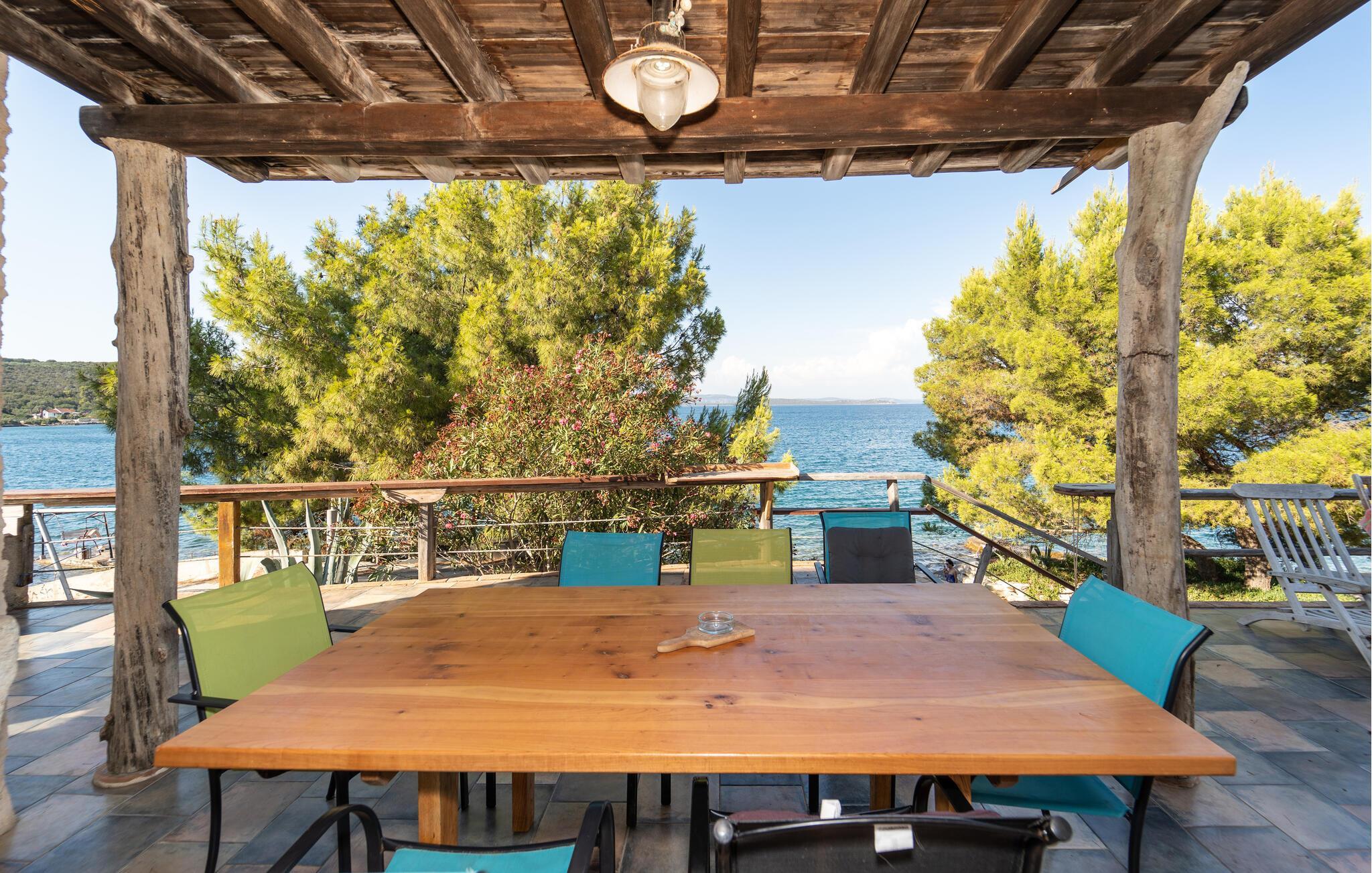 Nyd ferien i dette rummelige feriehus på Dugi Otok, som ligger lige ud til havet og har en udendørs havvandspool til forfriskende stunder. Huset byder på en hyggelig atmosfære, der er perfekt til store familier eller flere vennefamilier. Den klassiske indretning og de store vinduespartier, der bringer havet indenfor, skaber en unik feriefølelse. Spil dart, skak eller brug træningsudstyret til aktiv rekreation. Den rummelige terrasse lægger op til at dele måltider og tilbringe afslappende aftener ved havet.