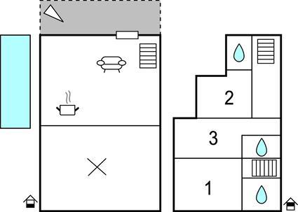 Opholdsstue/køkken 37m2 - 2 Sovepladser. (Sofa, madras eller lignende).