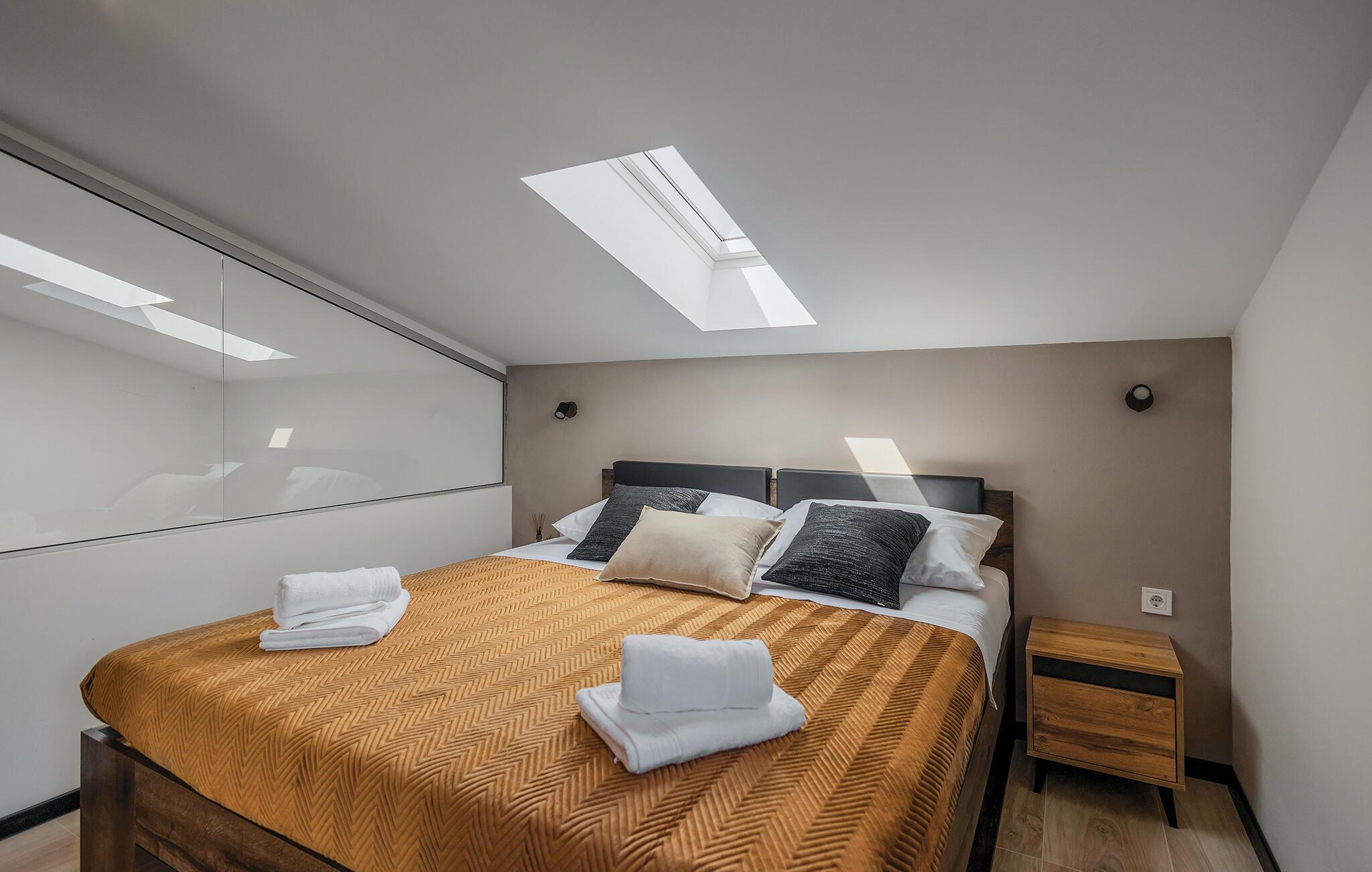 Tilbring jeres ferie i dette charmerende og komfortable feriehus på Dugi Otok. Huset, der har en privat beliggenhed og derfor er beskyttet mod nysgerrige blikke, byder på en betagende panoramaudsigt. De romantiske værelser i tagetagen er kærligt indrettet og udstråler en hyggelig atmosfære. I vil også blive begejstret over stueetagen med de store vinduespartier, hvor I kan nyde udsigten, mens I du laver mad i det moderne køkken, spiser eller slapper af på sofaen, omgivet af den flotte indretning, der emmer af høj kvalitet.