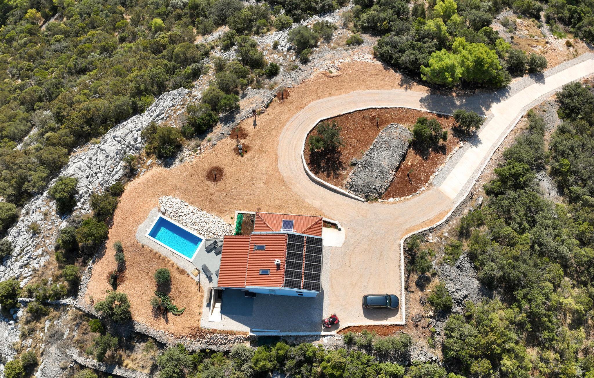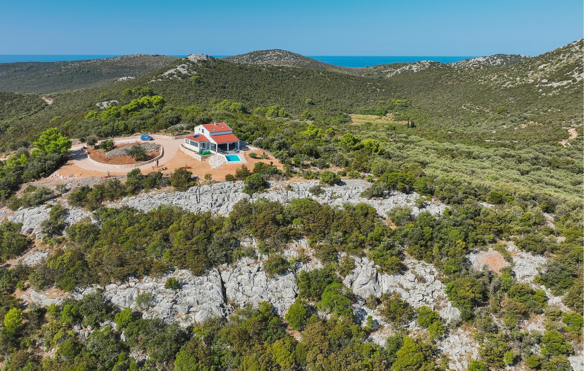 Nyd jeres ø-ferie i dette private feriehus med pool og panoramaudsigt over havet.