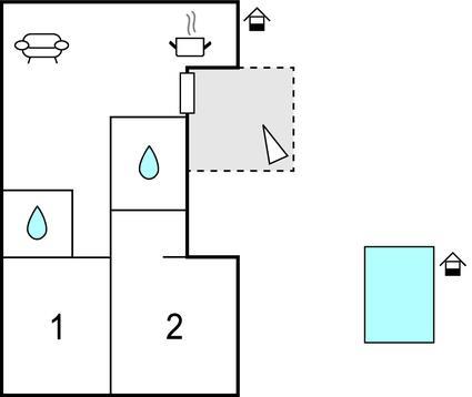 Opholdsstue/køkken - 2 Sovepladser. (Sofa, madras eller lignende).