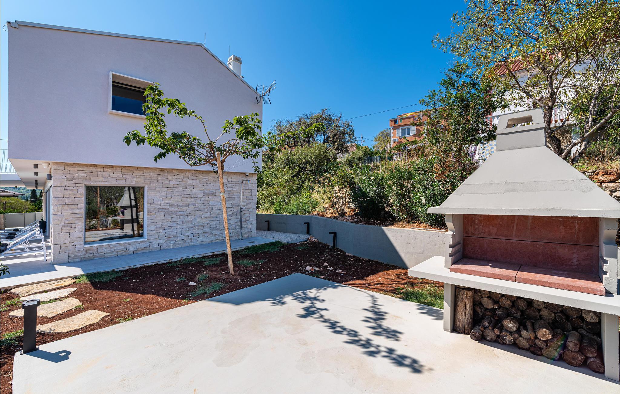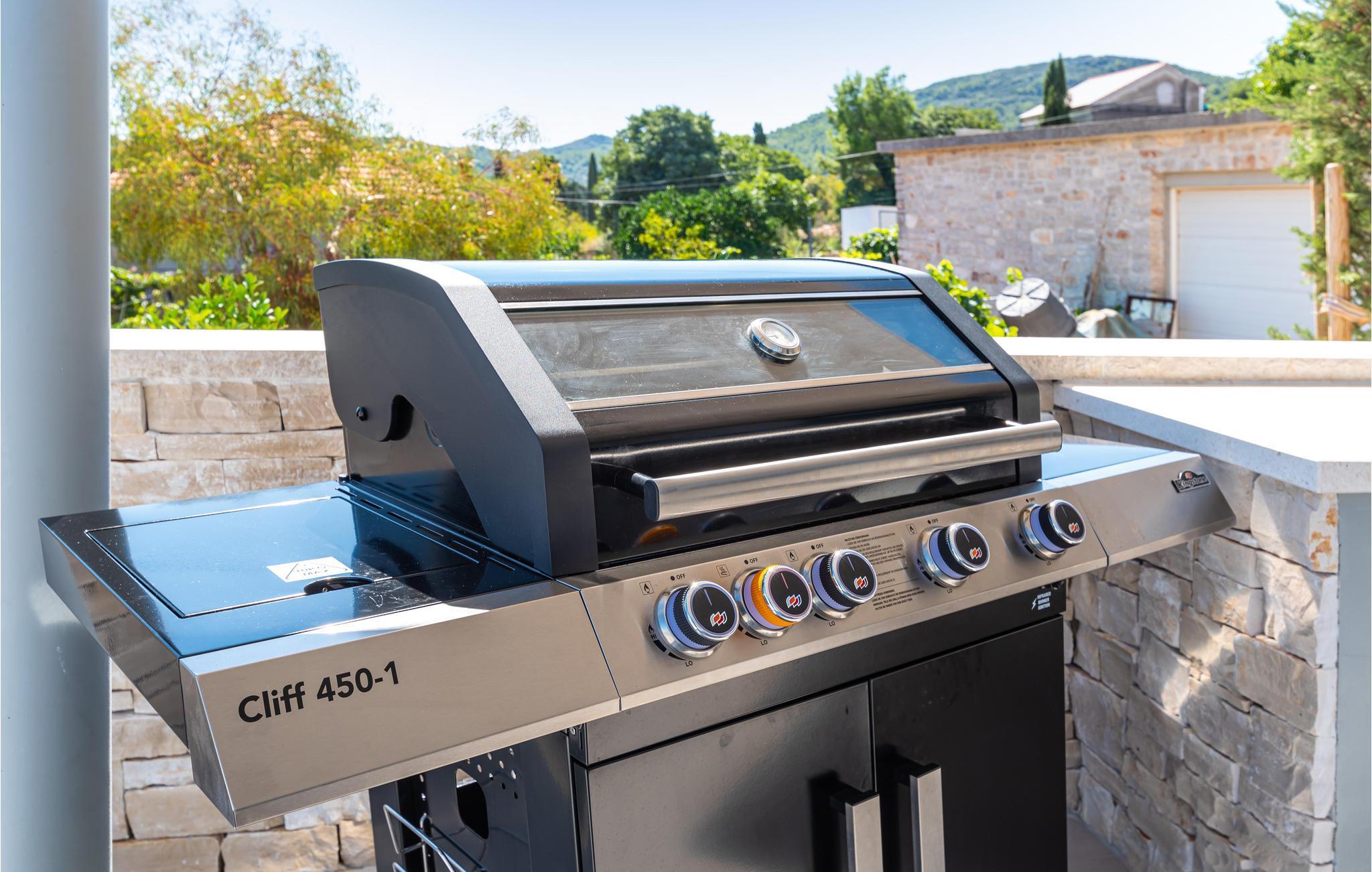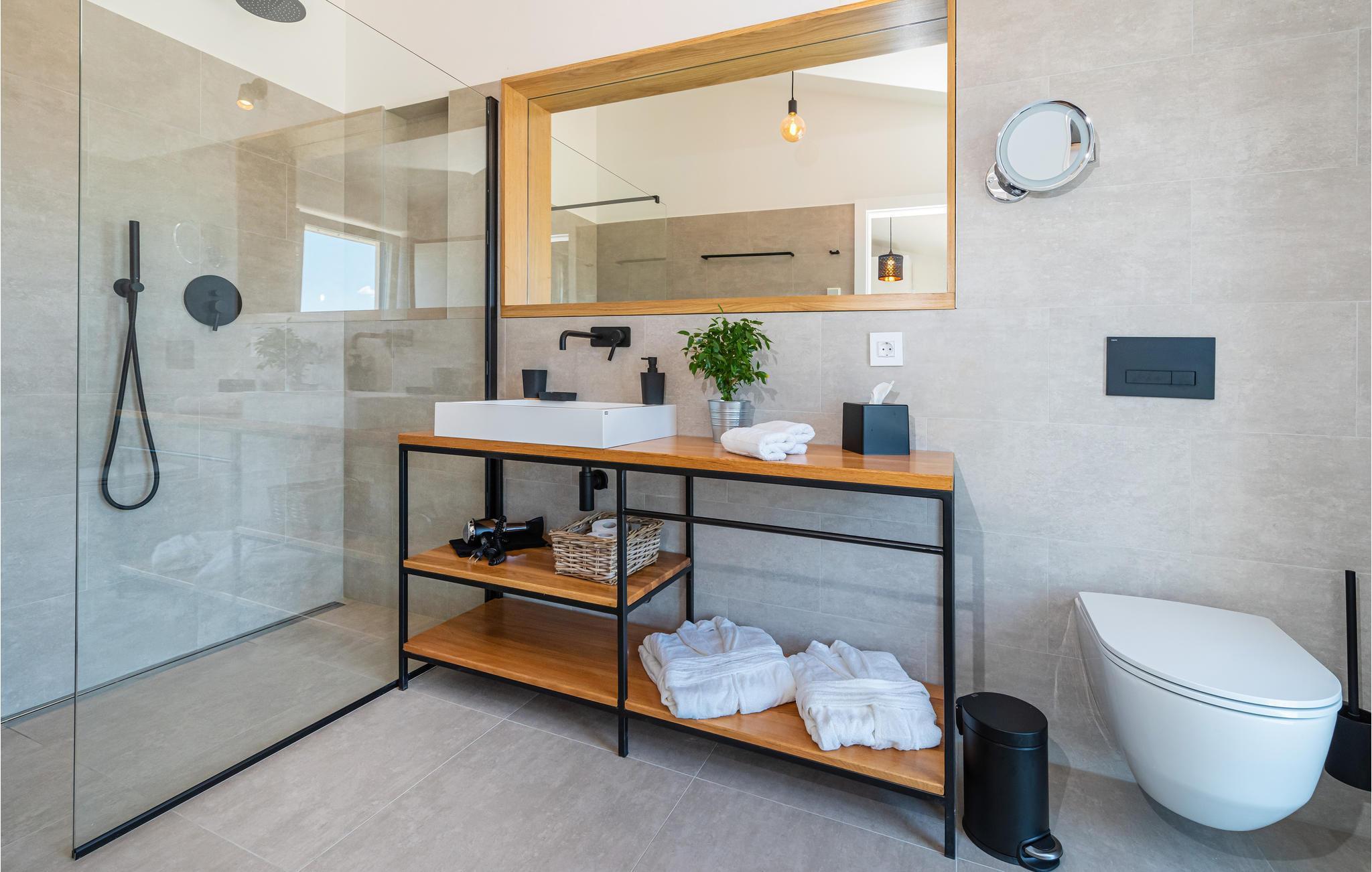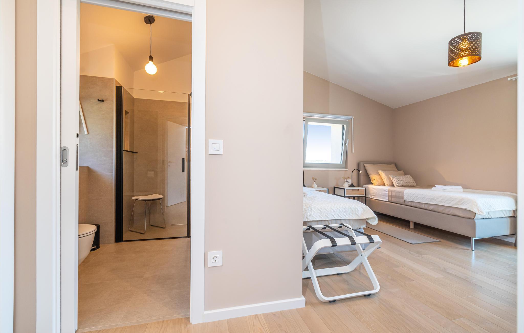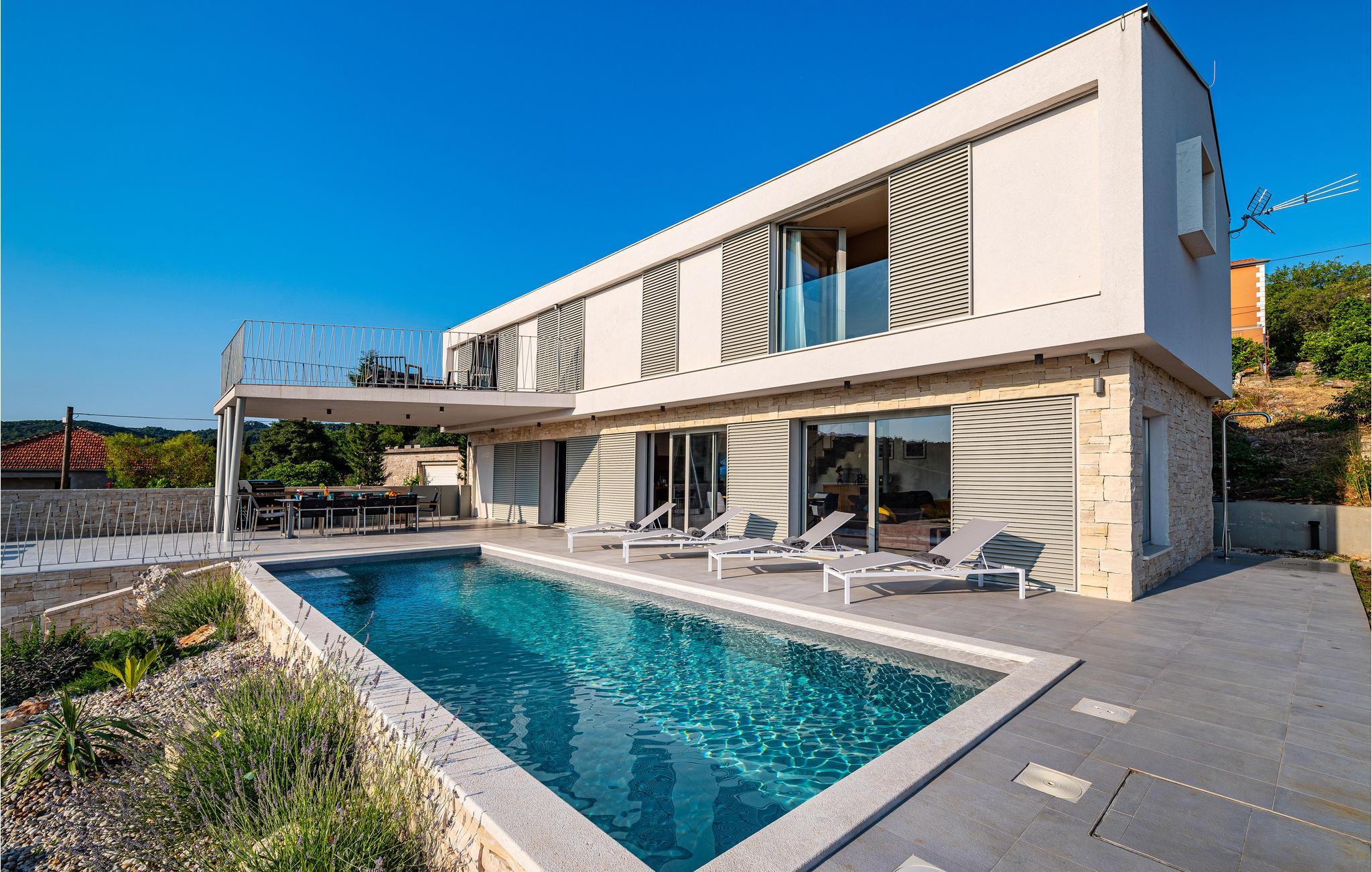 Denne ekstraordinære villa med moderne arkitektur lægger op til en uforglemmelig ferie. Den åbne planløsning i stueetagen kombinerer køkkenet, spisestuen og stuen for at skabe en luftig ramme, der fører direkte ud til solterrassen med pool. Hver etage har sin egen terrasse, hvor I kan nyde de rolige omgivelser. Poolen lover en forfriskning på varme dage, mens børnene leger i haven. Om aftenen kan I tilberede grillede specialiteter udendørs og afslutte dagen med at slappe af.