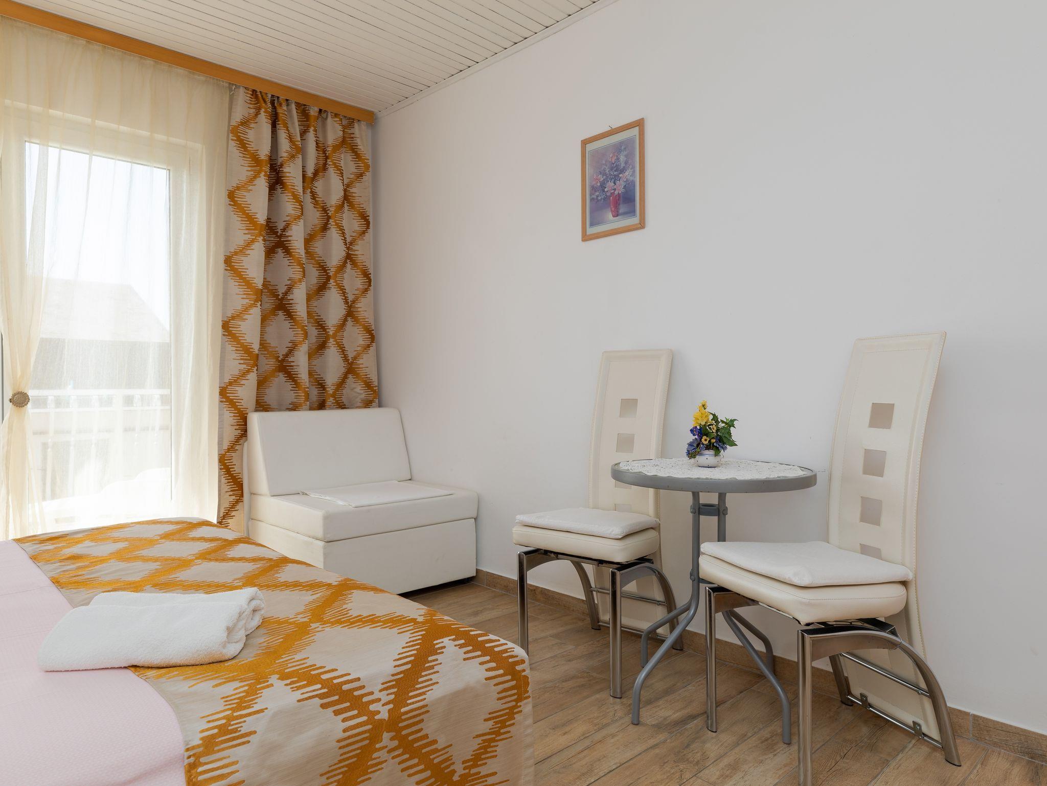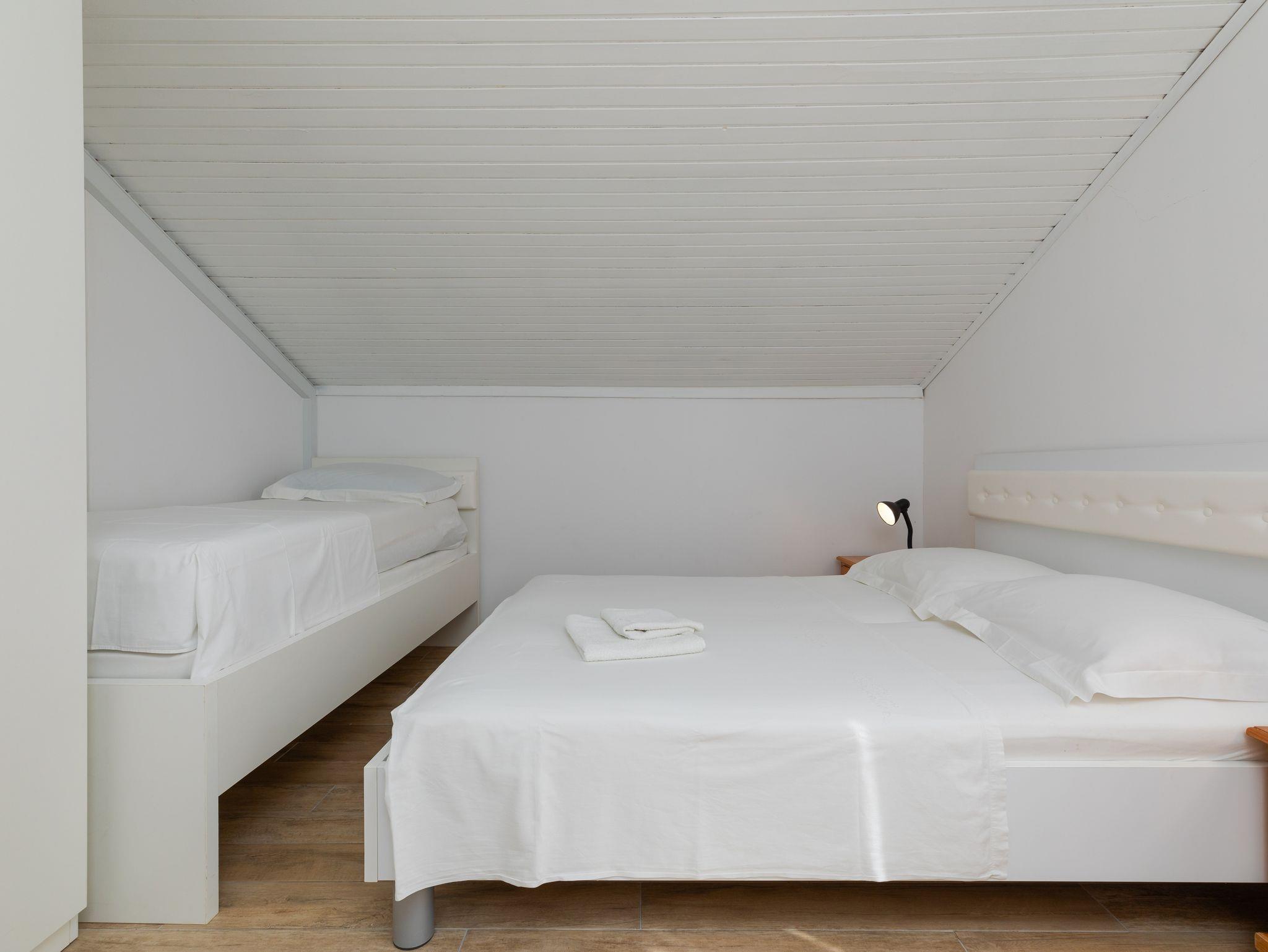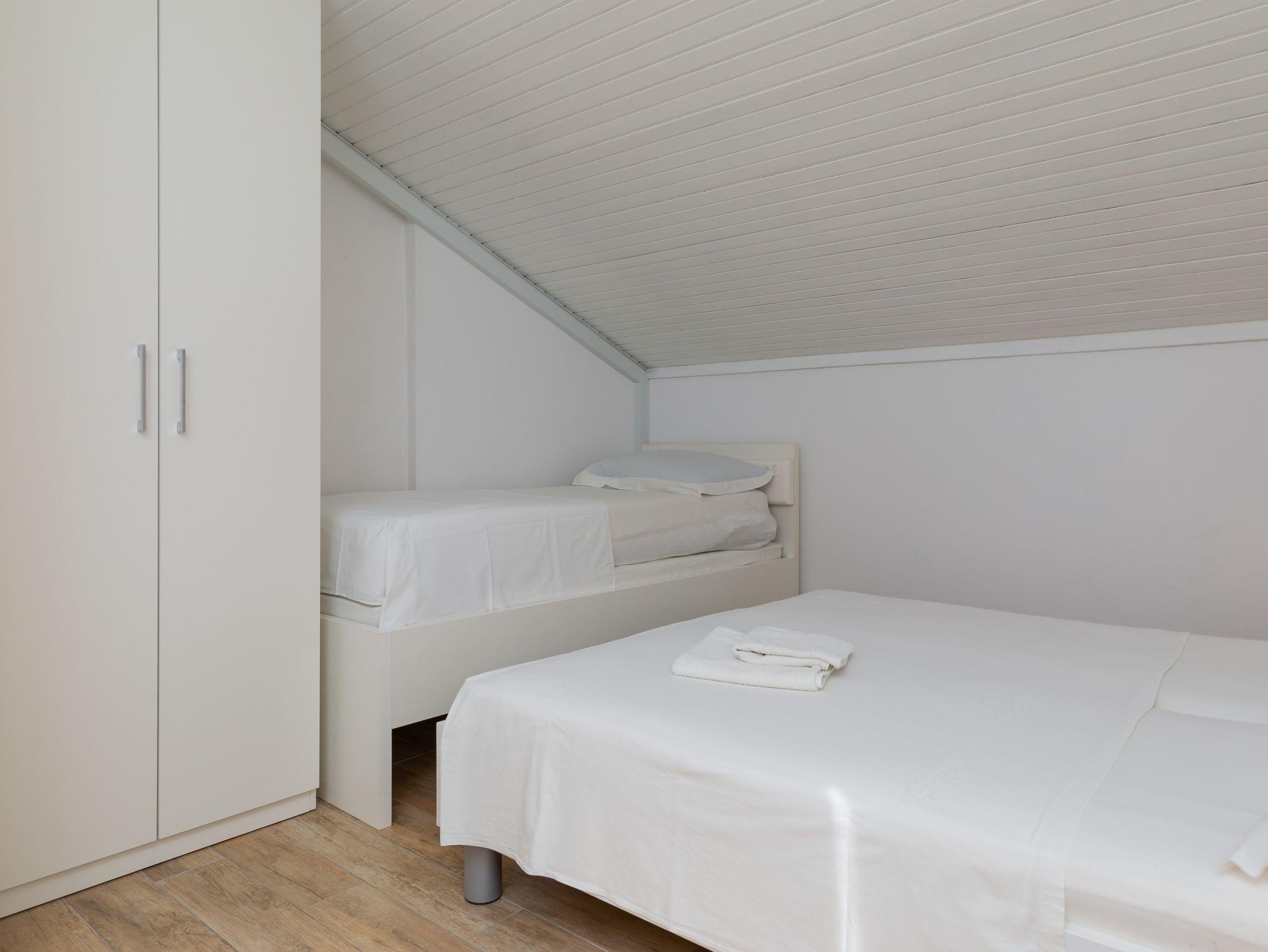 Ferienwohnung bietet Platz für 6 Gäste. Die Betten sind in Schlafzimmern, die es 2 gibt, innerhalb einer Gesamtfläche von 47m2, angeordnet. Die Gäste haben eine eigene Terrasse zur Verfügung, auf der sie in warmen Sommernächten genießen können. Das Apartment bietet Meerblick. Es ist erlaubt, Speisen auf dem Gemeinschafts-Grill vorzubereiten. IM PREIS INBEGRIFFEN: Kurtaxe, Endreinigung, Parkplatz, Internet. UNVERBINDLICHE ZUSÄTZLICHE KOSTEN: Klimatisierung (0,25 € pro Stunde), Wäschewaschen (5,00 € Waschen). Die Verfügbarkeit zusätzlicher Dienstleistungen in Ihrem reservierten Termin und die Preise derselben (falls nicht aufgeführt) müssen im Voraus überprüft werden. Zusätzliche Dienstleistungen die in der Zahlungsaufforderung nicht aufgeführt sind werden direkt beim Vermieter bezahlt, angenommen der Gast nutzt auch diese. Ermäßigung auf den Grundpreis: Gratistag 14=13 (bei einem Aufenthalt von 14 Tagen oder mehr erhalten Sie einen Gratistag für den Aufenthalt bis 31.12.26).