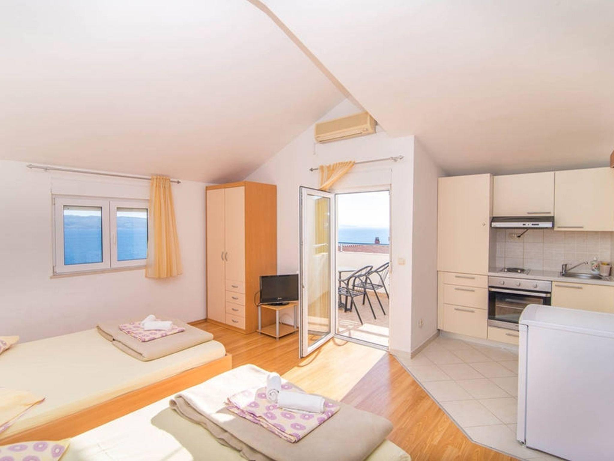 Studio bietet Platz für 4 Gäste. Die Betten sind in Schlafzimmern, die es 1 gibt, innerhalb einer Gesamtfläche von 25m2, angeordnet. Die Gäste haben eine eigene Terrasse zur Verfügung, auf der sie in warmen Sommernächten genießen können. Das Studio-Apartment bietet Meerblick. Es ist erlaubt, Speisen auf dem Gemeinschafts-Grill vorzubereiten. IM PREIS INBEGRIFFEN: Kurtaxe, Endreinigung, Klimatisierung, Parkplatz, Internet, Wäschewaschen, tragbarer Grill. VERBINDLICHE ZUSÄTZLICHE KOSTEN: Aufzahlung für Kurzaufenthalte (prozentualer Zuschlag pro Nächtigungsanzahl: 30% - 1, 20% - 2, 10% - 3). UNVERBINDLICHE ZUSÄTZLICHE KOSTEN: Bootsanlegeplatz (10,00 € pro Nacht), Zusatzbett (10,00 € pro Nacht). Die Verfügbarkeit zusätzlicher Dienstleistungen in Ihrem reservierten Termin und die Preise derselben (falls nicht aufgeführt) müssen im Voraus überprüft werden. Zusätzliche Dienstleistungen die in der Zahlungsaufforderung nicht aufgeführt sind werden direkt beim Vermieter bezahlt, angenommen der Gast nutzt auch diese.