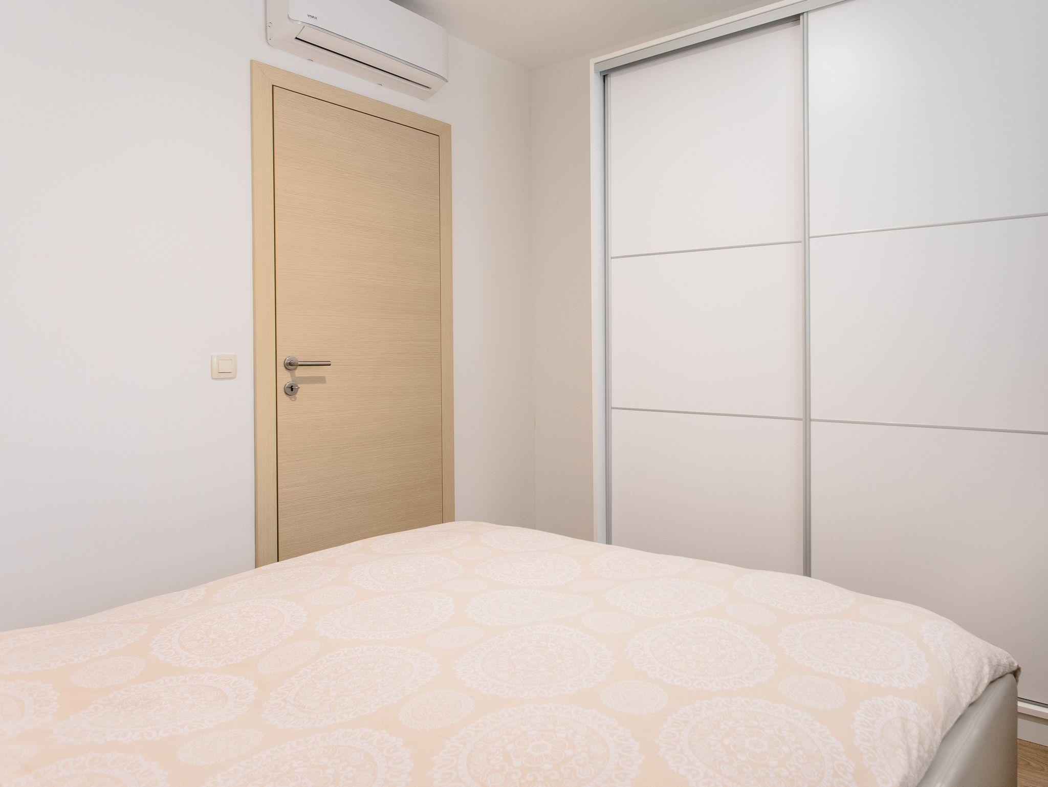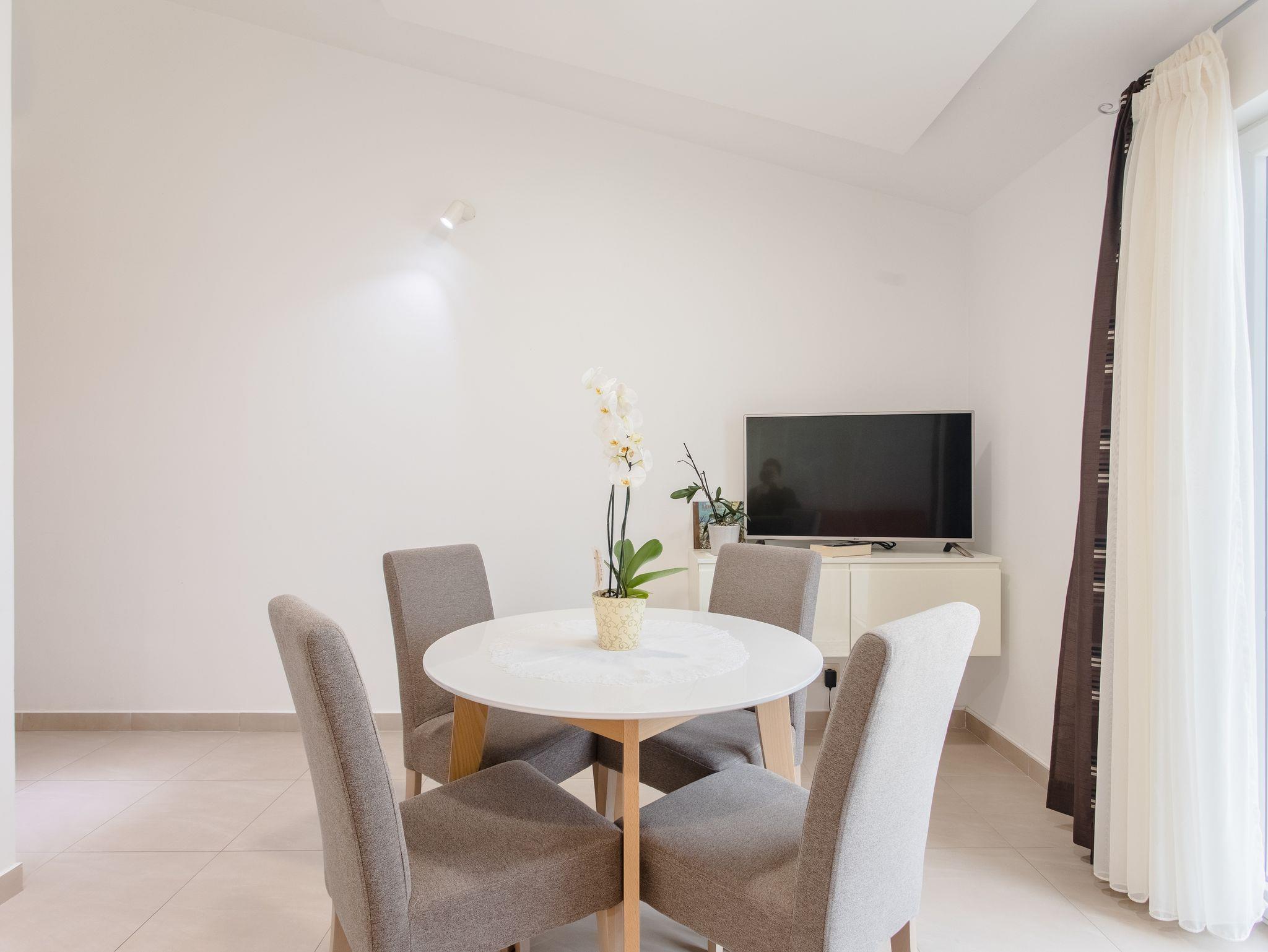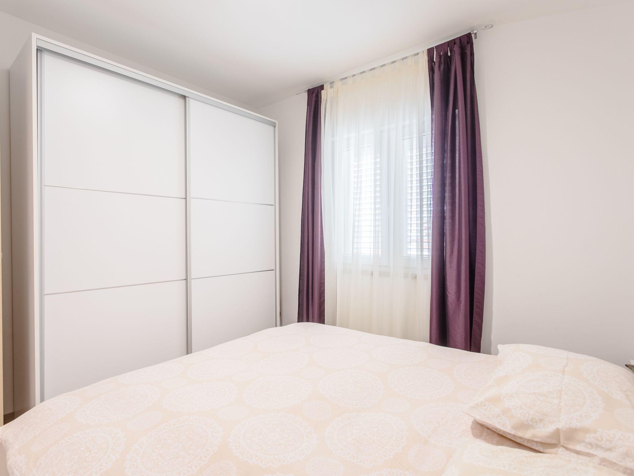 Ferienwohnung bietet Platz für 4 Gäste. Die Betten sind in Schlafzimmern, die es 1 gibt, und in Wohnzimmer, innerhalb einer Gesamtfläche von 39m2, angeordnet. Die Gäste haben eine eigene Terrasse zur Verfügung, auf der sie in warmen Sommernächten genießen können. Das Apartment bietet Meerblick. Es ist erlaubt, Speisen auf dem Gemeinschafts-Grill vorzubereiten. IM PREIS INBEGRIFFEN: Kurtaxe, Endreinigung, Klimatisierung, Parkplatz, Internet, Kinderbett, Bügeleisen, Föhn. UNVERBINDLICHE ZUSÄTZLICHE KOSTEN: Boot (50,00 € pro Nacht), Bootsanlegeplatz (20,00 € pro Nacht), Fahrrad (20,00 € täglich (pro Stück)). Die Verfügbarkeit zusätzlicher Dienstleistungen in Ihrem reservierten Termin und die Preise derselben (falls nicht aufgeführt) müssen im Voraus überprüft werden. Zusätzliche Dienstleistungen die in der Zahlungsaufforderung nicht aufgeführt sind werden direkt beim Vermieter bezahlt, angenommen der Gast nutzt auch diese. Ermäßigung auf den Grundpreis: Gratistag 14=13 (bei einem Aufenthalt von 14 Tagen oder mehr erhalten Sie einen Gratistag für den Aufenthalt bis 31.12.26).