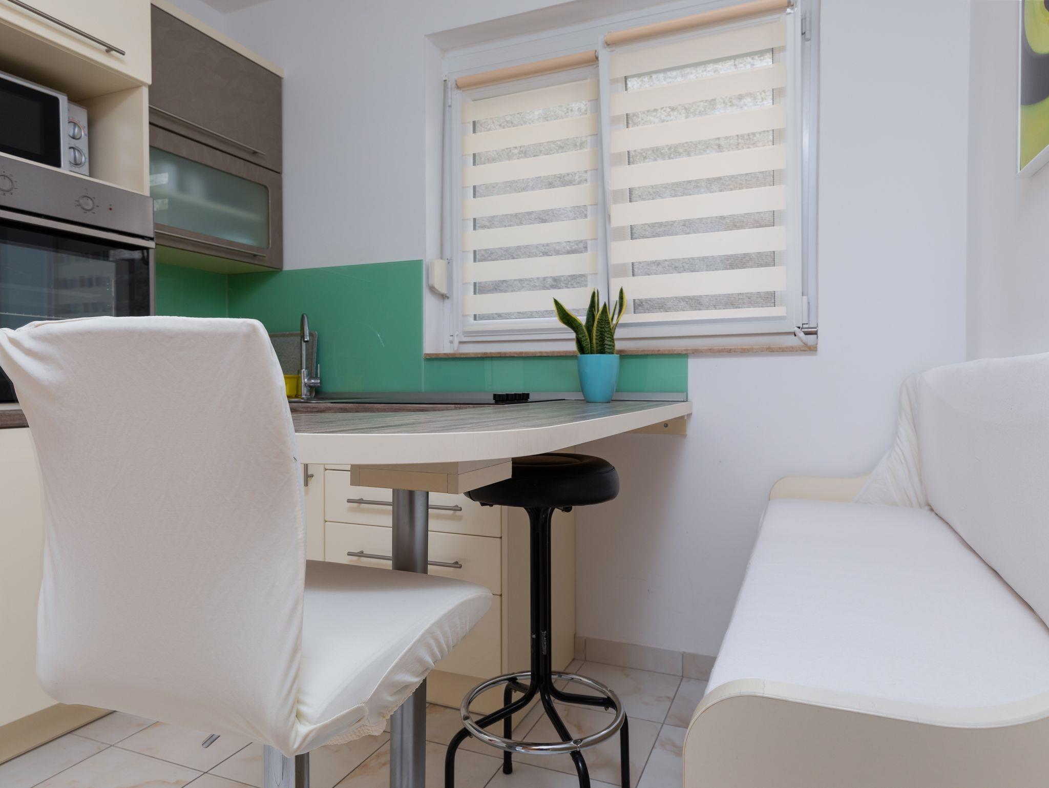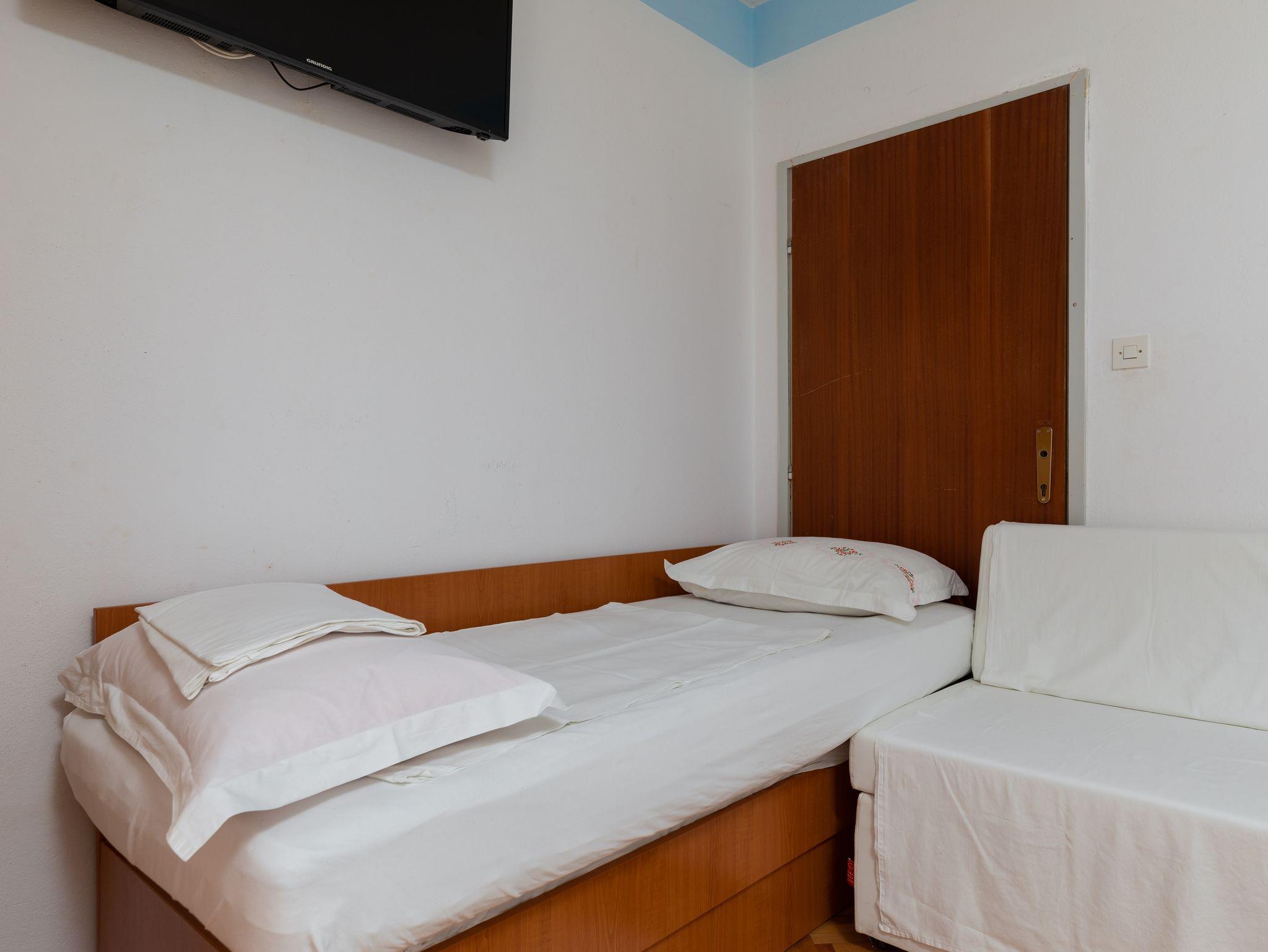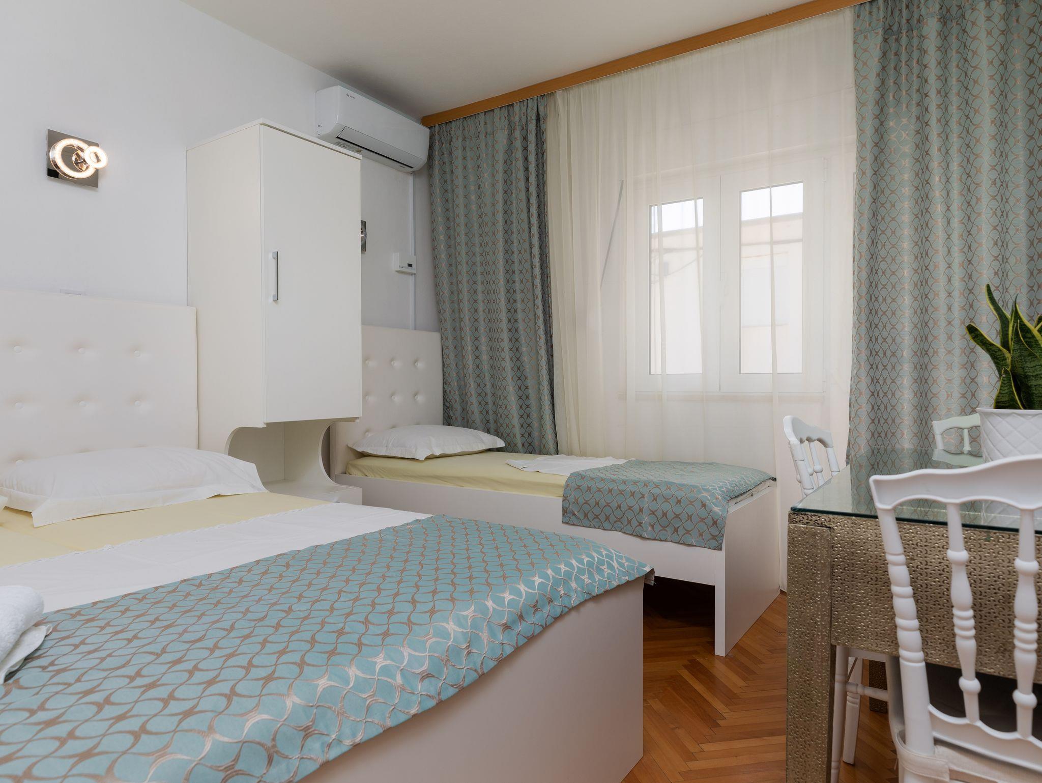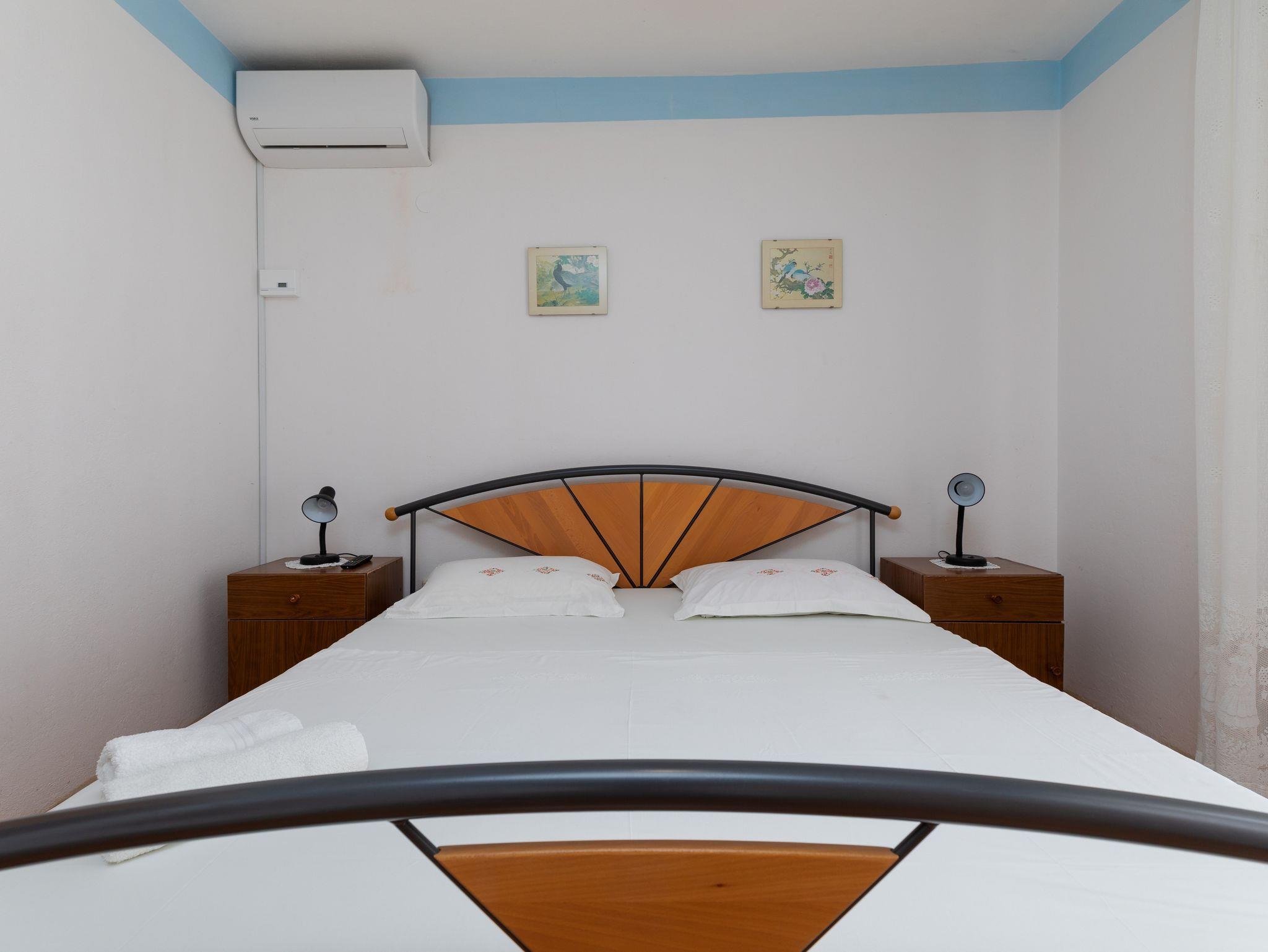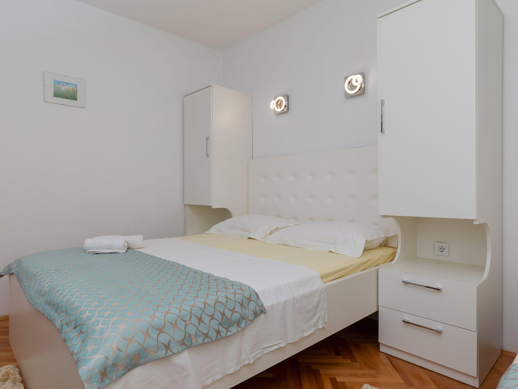 Ferienwohnung bietet Platz für 7 Gäste. Die Betten sind in Schlafzimmern, die es 2 gibt, innerhalb einer Gesamtfläche von 48m2, angeordnet. Die Gäste haben eine eigene Terrasse zur Verfügung, auf der sie in warmen Sommernächten genießen können. Das Apartment bietet Meerblick. Es ist erlaubt, Speisen auf dem Gemeinschafts-Grill vorzubereiten. IM PREIS INBEGRIFFEN: Kurtaxe, Endreinigung, Parkplatz, Internet. UNVERBINDLICHE ZUSÄTZLICHE KOSTEN: Klimatisierung (0,25 € pro Stunde), Wäschewaschen (5,00 € Waschen). Die Verfügbarkeit zusätzlicher Dienstleistungen in Ihrem reservierten Termin und die Preise derselben (falls nicht aufgeführt) müssen im Voraus überprüft werden. Zusätzliche Dienstleistungen die in der Zahlungsaufforderung nicht aufgeführt sind werden direkt beim Vermieter bezahlt, angenommen der Gast nutzt auch diese. Ermäßigung auf den Grundpreis: Gratistag 14=13 (bei einem Aufenthalt von 14 Tagen oder mehr erhalten Sie einen Gratistag für den Aufenthalt bis 31.12.26).