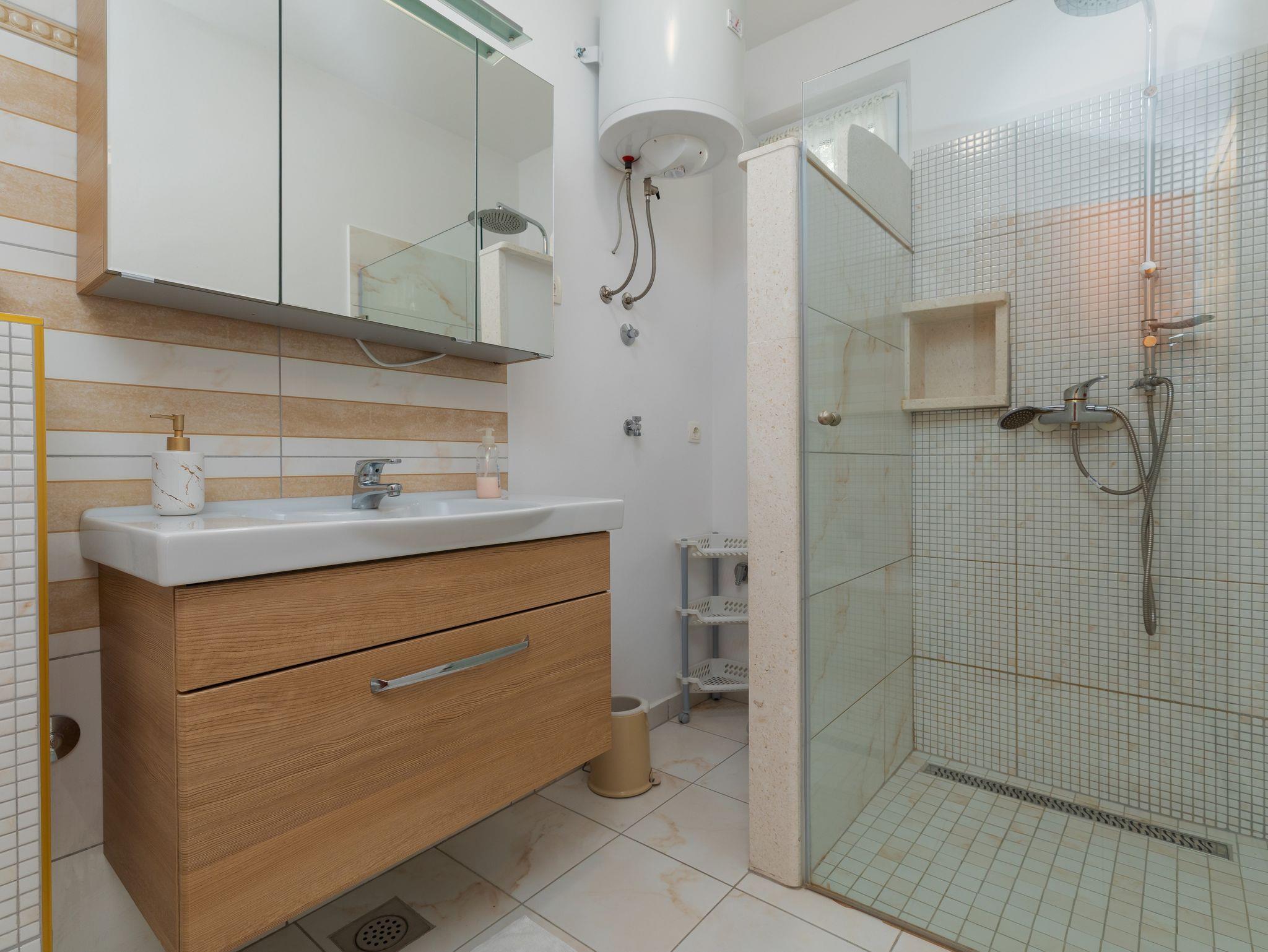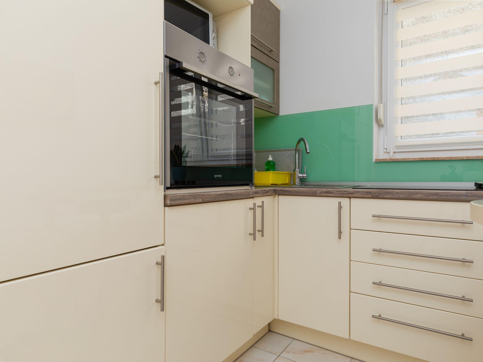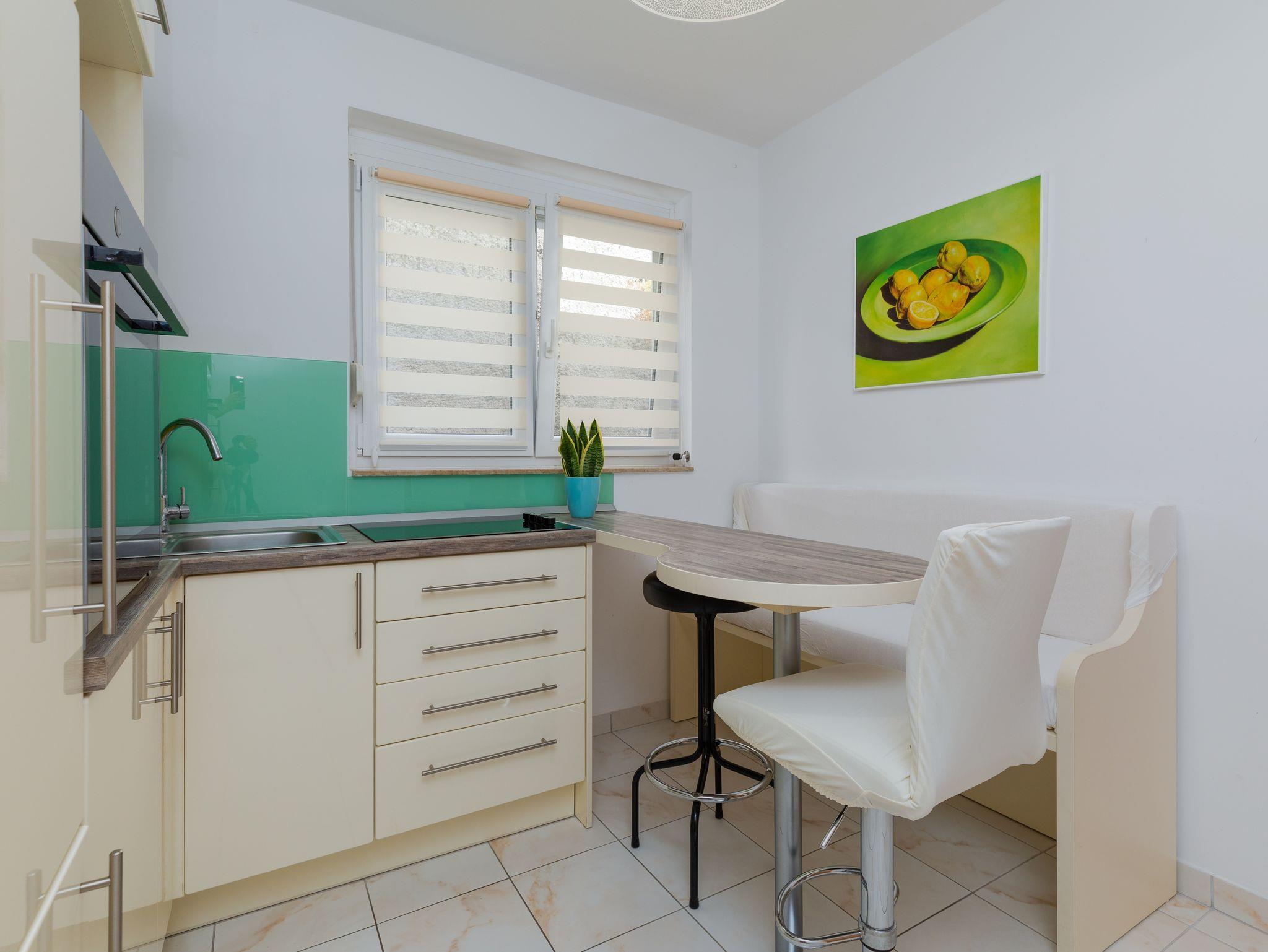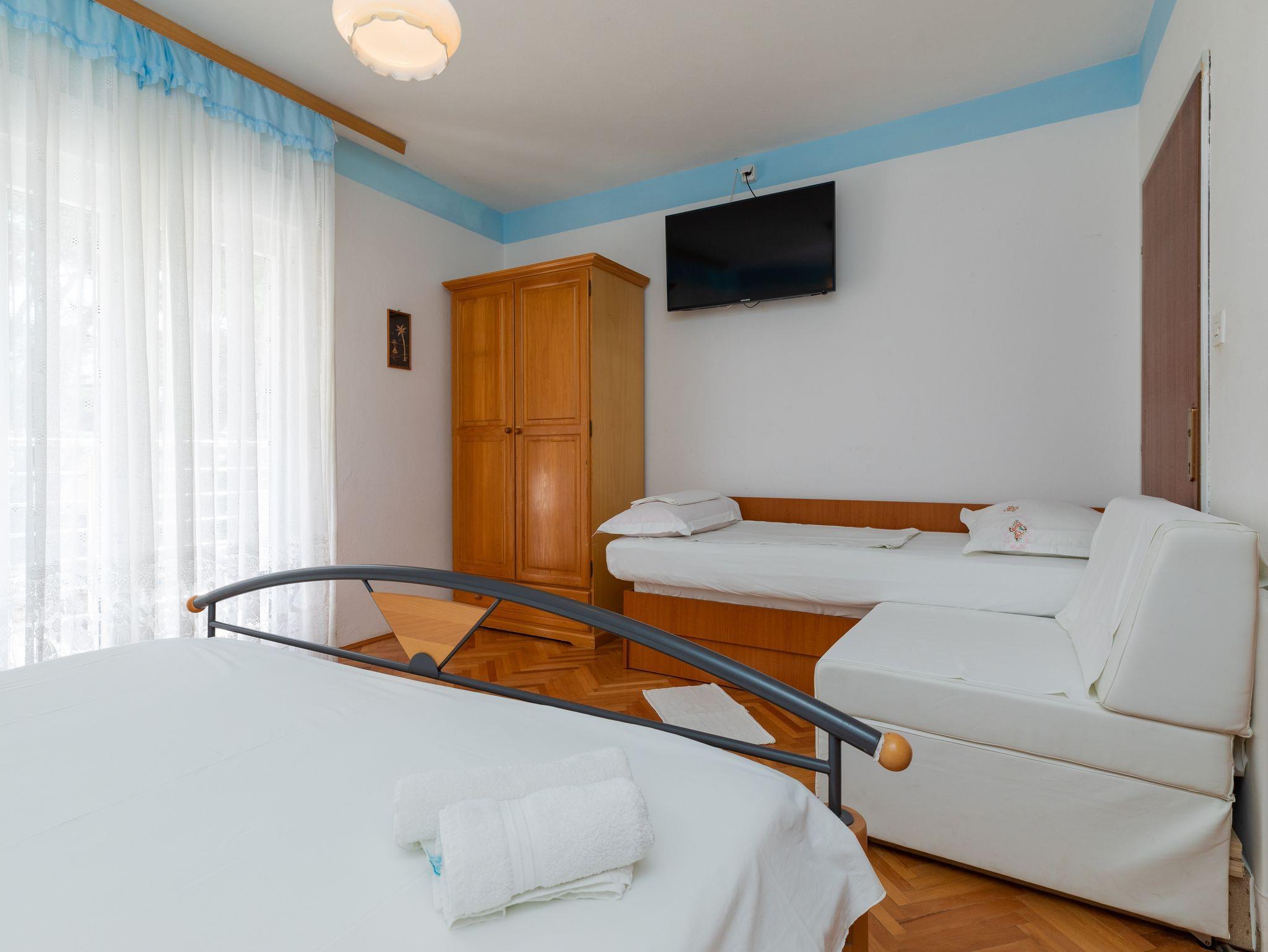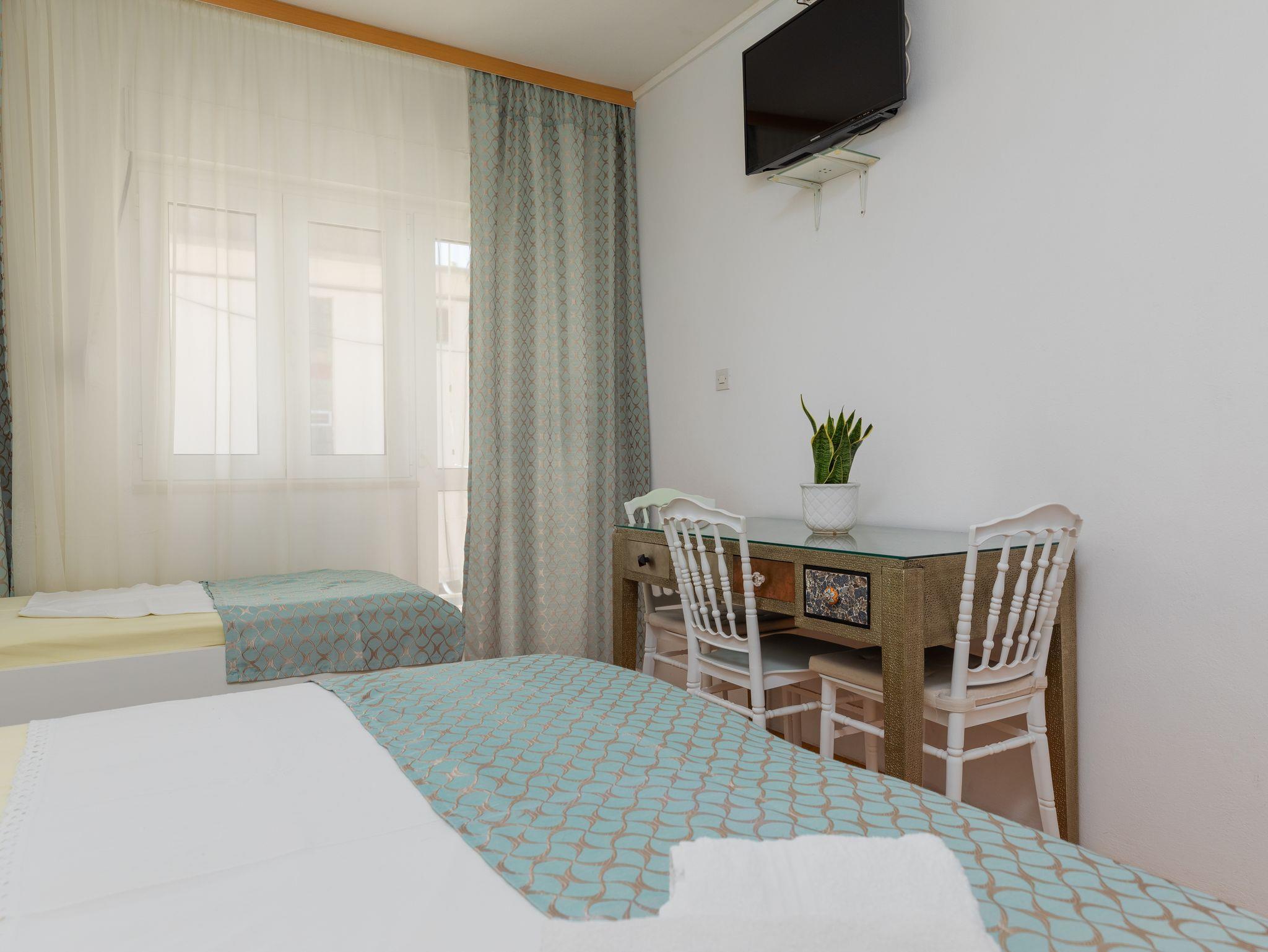 Ferienwohnung bietet Platz für 7 Gäste. Die Betten sind in Schlafzimmern, die es 2 gibt, innerhalb einer Gesamtfläche von 48m2, angeordnet. Die Gäste haben eine eigene Terrasse zur Verfügung, auf der sie in warmen Sommernächten genießen können. Das Apartment bietet Meerblick. Es ist erlaubt, Speisen auf dem Gemeinschafts-Grill vorzubereiten. IM PREIS INBEGRIFFEN: Kurtaxe, Endreinigung, Parkplatz, Internet. UNVERBINDLICHE ZUSÄTZLICHE KOSTEN: Klimatisierung (0,25 € pro Stunde), Wäschewaschen (5,00 € Waschen). Die Verfügbarkeit zusätzlicher Dienstleistungen in Ihrem reservierten Termin und die Preise derselben (falls nicht aufgeführt) müssen im Voraus überprüft werden. Zusätzliche Dienstleistungen die in der Zahlungsaufforderung nicht aufgeführt sind werden direkt beim Vermieter bezahlt, angenommen der Gast nutzt auch diese. Ermäßigung auf den Grundpreis: Gratistag 14=13 (bei einem Aufenthalt von 14 Tagen oder mehr erhalten Sie einen Gratistag für den Aufenthalt bis 31.12.26).
