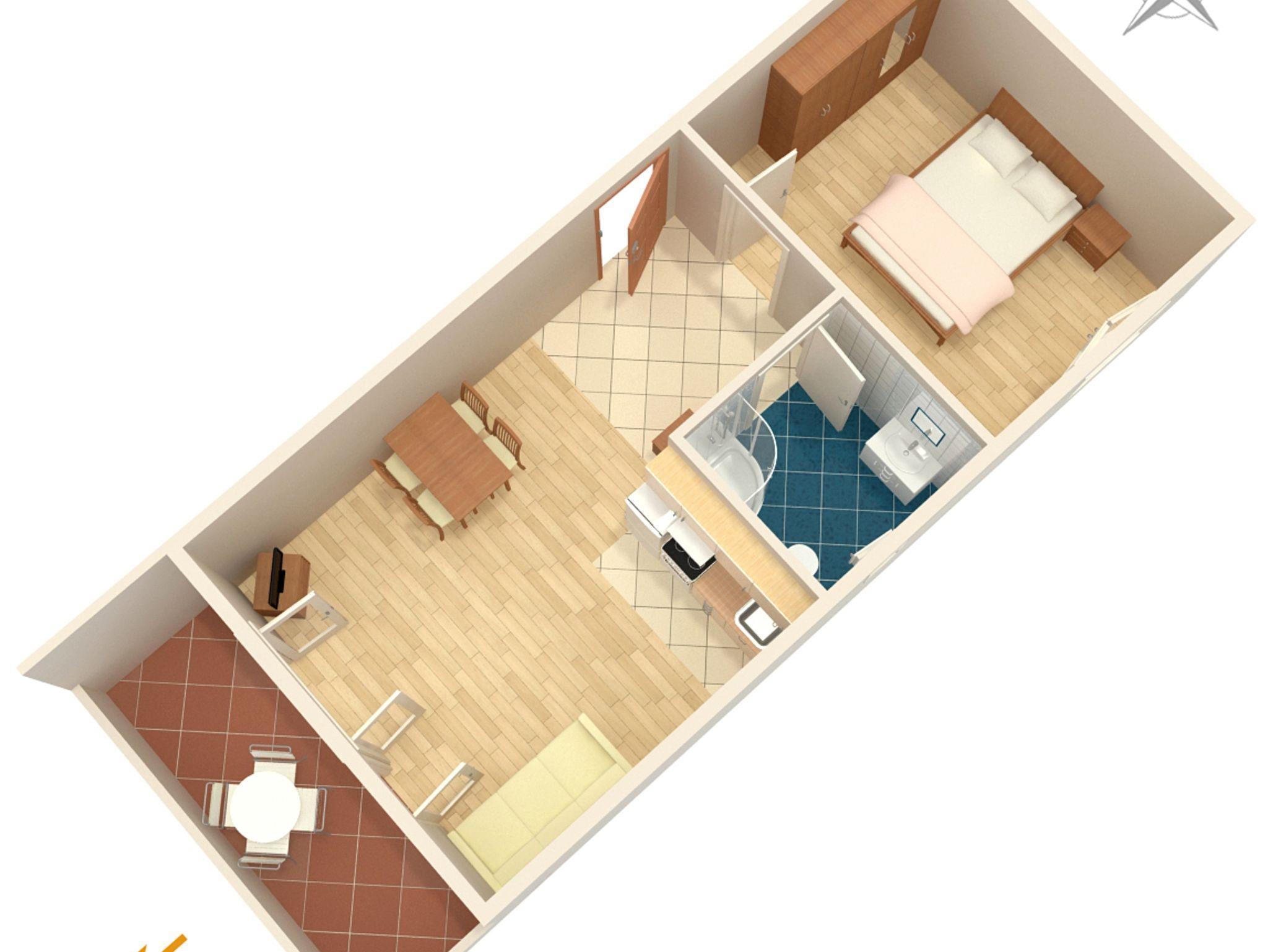 Ferienwohnung bietet Platz für 4 Gäste. Die Betten sind in Schlafzimmern, die es 1 gibt, und in Wohnzimmer, innerhalb einer Gesamtfläche von 35m2, angeordnet. Die Gäste haben eine eigene Terrasse zur Verfügung, auf der sie in warmen Sommernächten genießen können. Das Apartment bietet Meerblick. Es ist erlaubt, Speisen auf dem Gemeinschafts-Grill vorzubereiten. IM PREIS INBEGRIFFEN: Kurtaxe, Endreinigung, Klimatisierung, Parkplatz, Internet, Wäschewaschen, tragbarer Grill. VERBINDLICHE ZUSÄTZLICHE KOSTEN: Aufzahlung für Kurzaufenthalte (prozentualer Zuschlag pro Nächtigungsanzahl: 30% - 1, 20% - 2, 10% - 3). UNVERBINDLICHE ZUSÄTZLICHE KOSTEN: Bootsanlegeplatz (10,00 € pro Nacht), Zusatzbett (10,00 € pro Nacht). Die Verfügbarkeit zusätzlicher Dienstleistungen in Ihrem reservierten Termin und die Preise derselben (falls nicht aufgeführt) müssen im Voraus überprüft werden. Zusätzliche Dienstleistungen die in der Zahlungsaufforderung nicht aufgeführt sind werden direkt beim Vermieter bezahlt, angenommen der Gast nutzt auch diese.