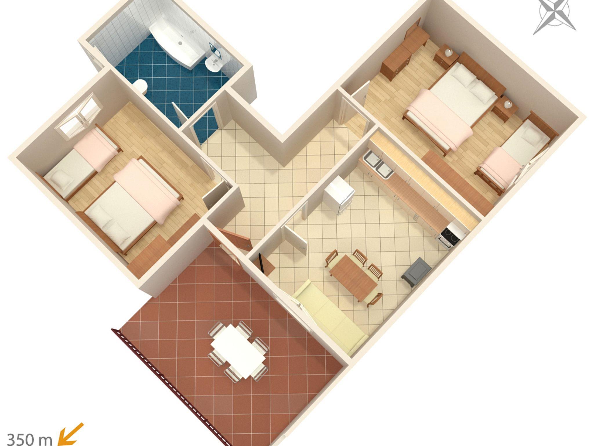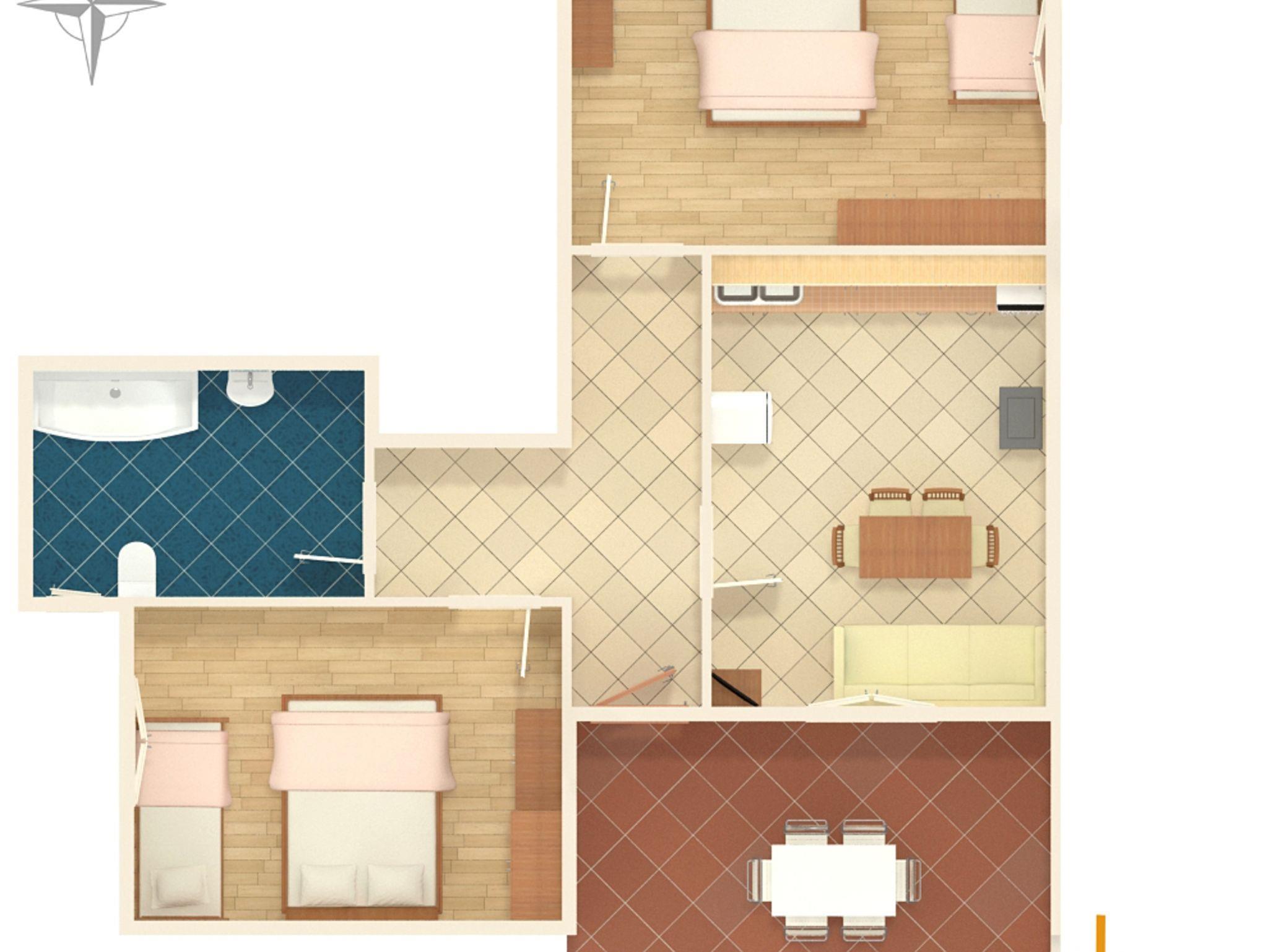 Ferienwohnung bietet Platz für 6 Gäste. Die Betten sind in Schlafzimmern, die es 2 gibt, innerhalb einer Gesamtfläche von 56m2, angeordnet. Die Gäste haben eine eigene Terrasse zur Verfügung, auf der sie in warmen Sommernächten genießen können. Das Apartment bietet Meerblick. Es ist erlaubt, Speisen auf dem Gemeinschafts-Grill vorzubereiten. Während ihres Aufenthalts können sich Gäste im privaten Schwimmbad entspannen. IM PREIS INBEGRIFFEN: Kurtaxe, Endreinigung, Klimatisierung, Pool, Parkplatz, Internet, tragbarer Grill. UNVERBINDLICHE ZUSÄTZLICHE KOSTEN: Bootsanlegeplatz (10,00 € pro Nacht), Zusatzbett (10,00 € pro Nacht). Die Verfügbarkeit zusätzlicher Dienstleistungen in Ihrem reservierten Termin und die Preise derselben (falls nicht aufgeführt) müssen im Voraus überprüft werden. Zusätzliche Dienstleistungen die in der Zahlungsaufforderung nicht aufgeführt sind werden direkt beim Vermieter bezahlt, angenommen der Gast nutzt auch diese.
