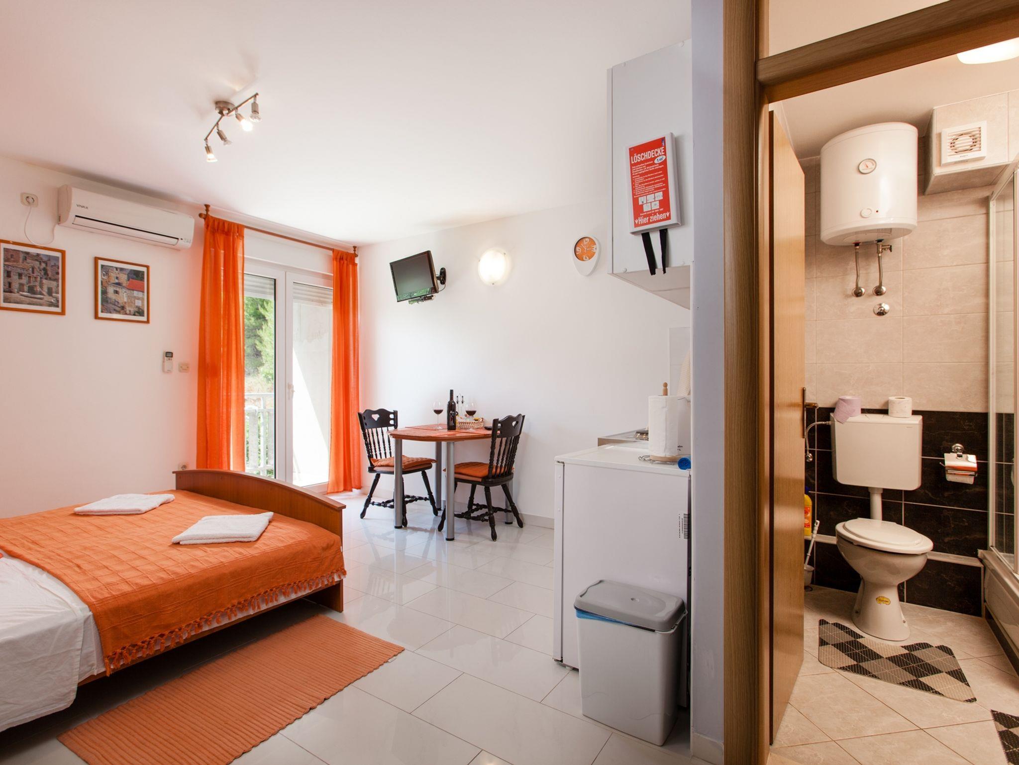 Studio bietet Platz für 2 Gäste. Die Betten sind in Schlafzimmern, die es 1 gibt, innerhalb einer Gesamtfläche von 20m2, angeordnet. Die Gäste haben einen eigenen Balkon zur Verfügung, auf der sie in warmen Sommernächten genießen können. Es ist erlaubt, Speisen auf dem Gemeinschafts-Grill vorzubereiten. In der Unterkunftseinheit besteht die Möglichkeit des Mitbringens von Haustieren gegen Aufpreis. IM PREIS INBEGRIFFEN: Kurtaxe, Endreinigung, Klimatisierung, Parkplatz, Internet, Wäschewaschen, Boot, Fahrrad, Kinderbett, Bügeleisen, Föhn. VERBINDLICHE ZUSÄTZLICHE KOSTEN: Aufzahlung für Kurzaufenthalte (prozentualer Zuschlag pro Nächtigungsanzahl: 30% - 1, 20% - 2, 10% - 3). UNVERBINDLICHE ZUSÄTZLICHE KOSTEN: Haustiere (5,00 € pro Nacht). Die Verfügbarkeit zusätzlicher Dienstleistungen in Ihrem reservierten Termin und die Preise derselben (falls nicht aufgeführt) müssen im Voraus überprüft werden. Zusätzliche Dienstleistungen die in der Zahlungsaufforderung nicht aufgeführt sind werden direkt beim Vermieter bezahlt, angenommen der Gast nutzt auch diese. Ermäßigung auf den Grundpreis: Gratistag 14=13 (bei einem Aufenthalt von 14 Tagen oder mehr erhalten Sie einen Gratistag für den Aufenthalt bis 31.12.26).