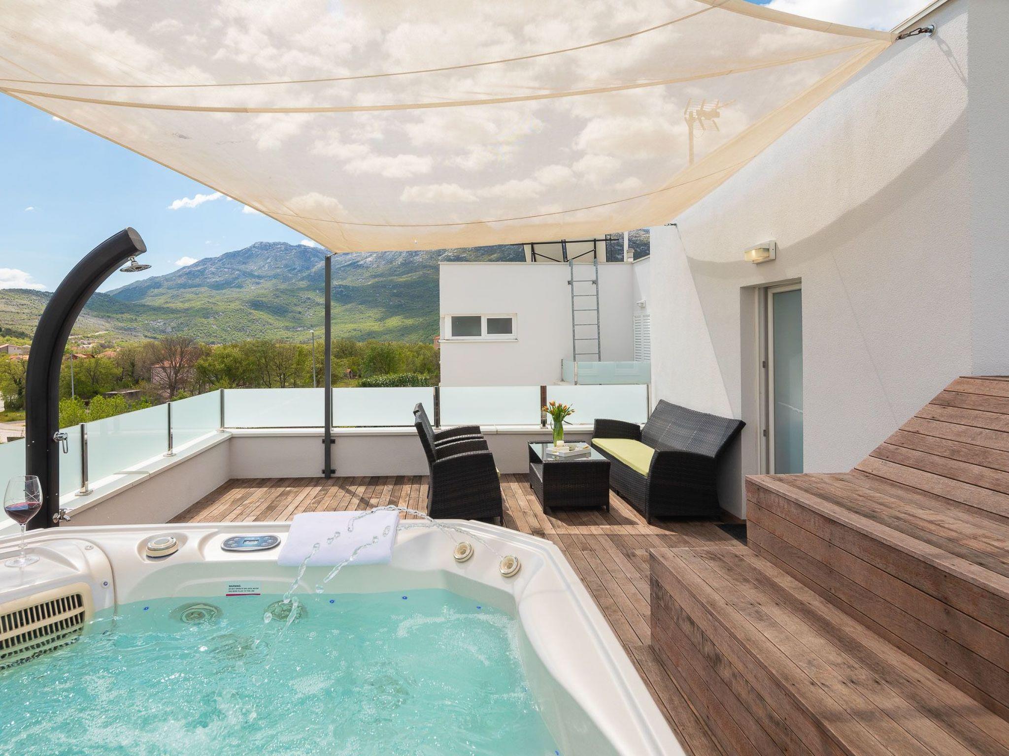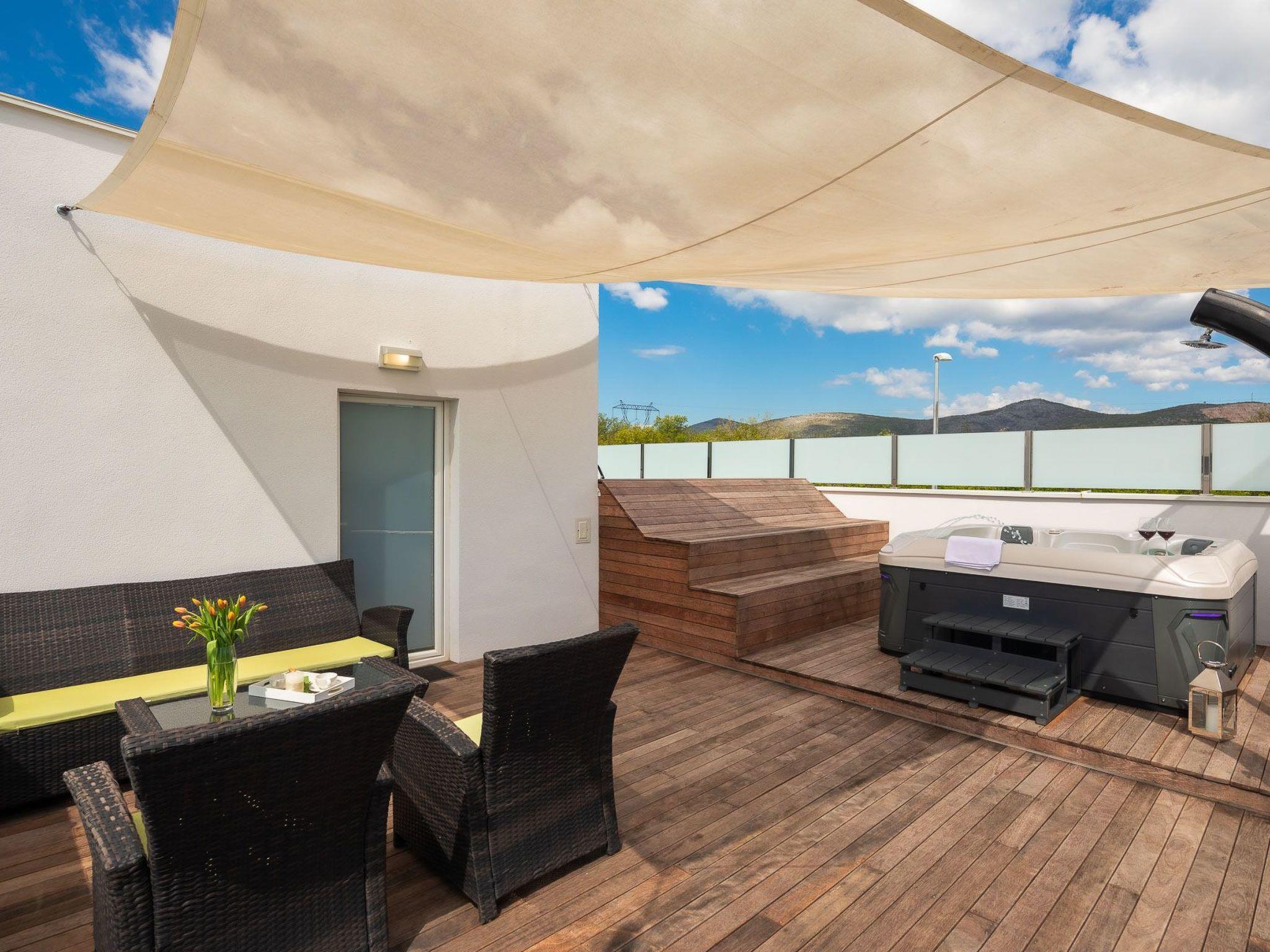 There are shopping facilities, restaurants and cafés in the area. It is just a 15-minute drive to the beautiful Adriatic beaches. Or you can visit the towns of Trogir, Omiš or Šibenik. There are countless hiking and cycling trails in the immediate vicinity of the house. You can go climbing or rafting at the Mosor mountain, or explore the Kotlenice cave or the Salona ruins.