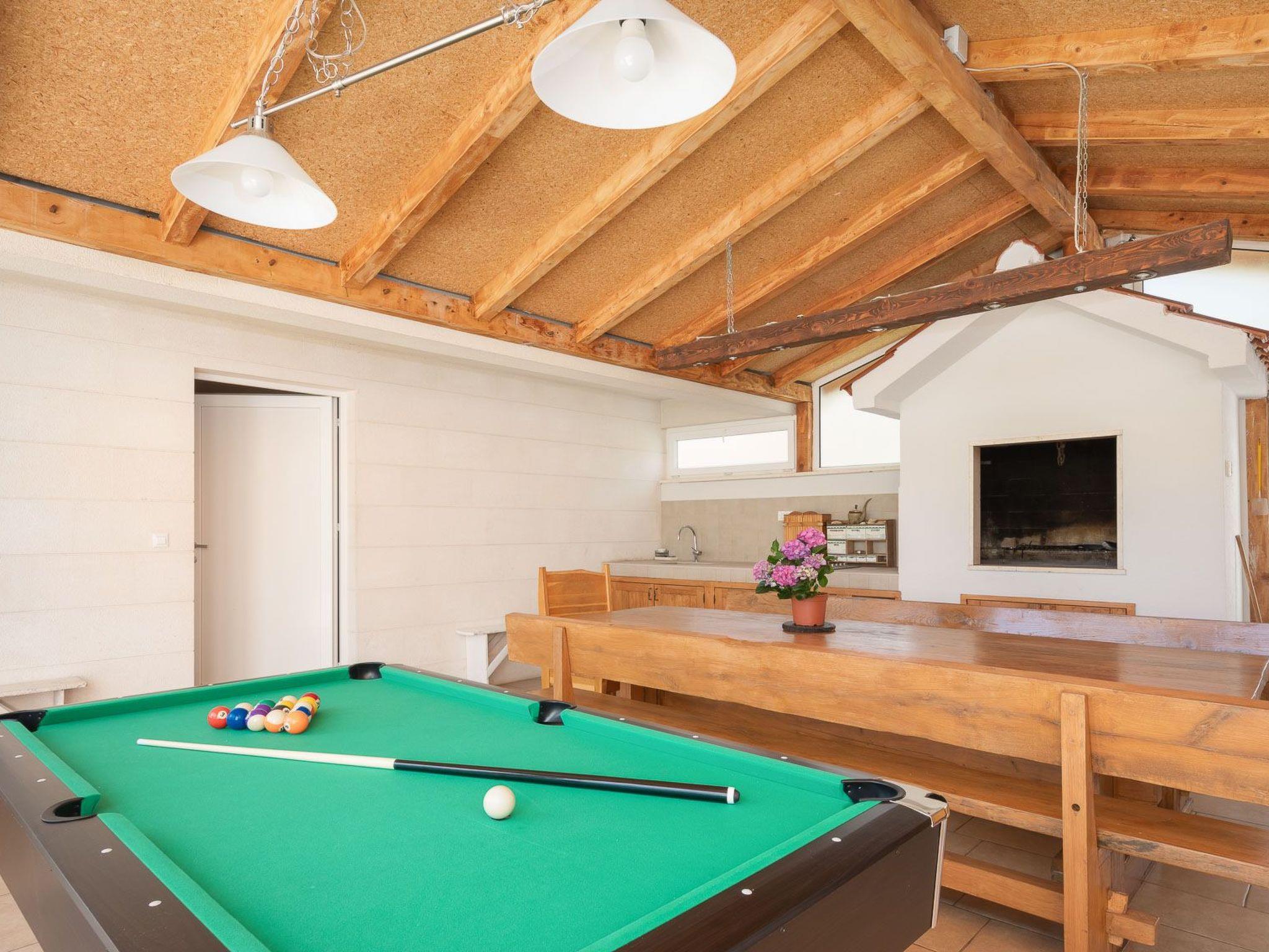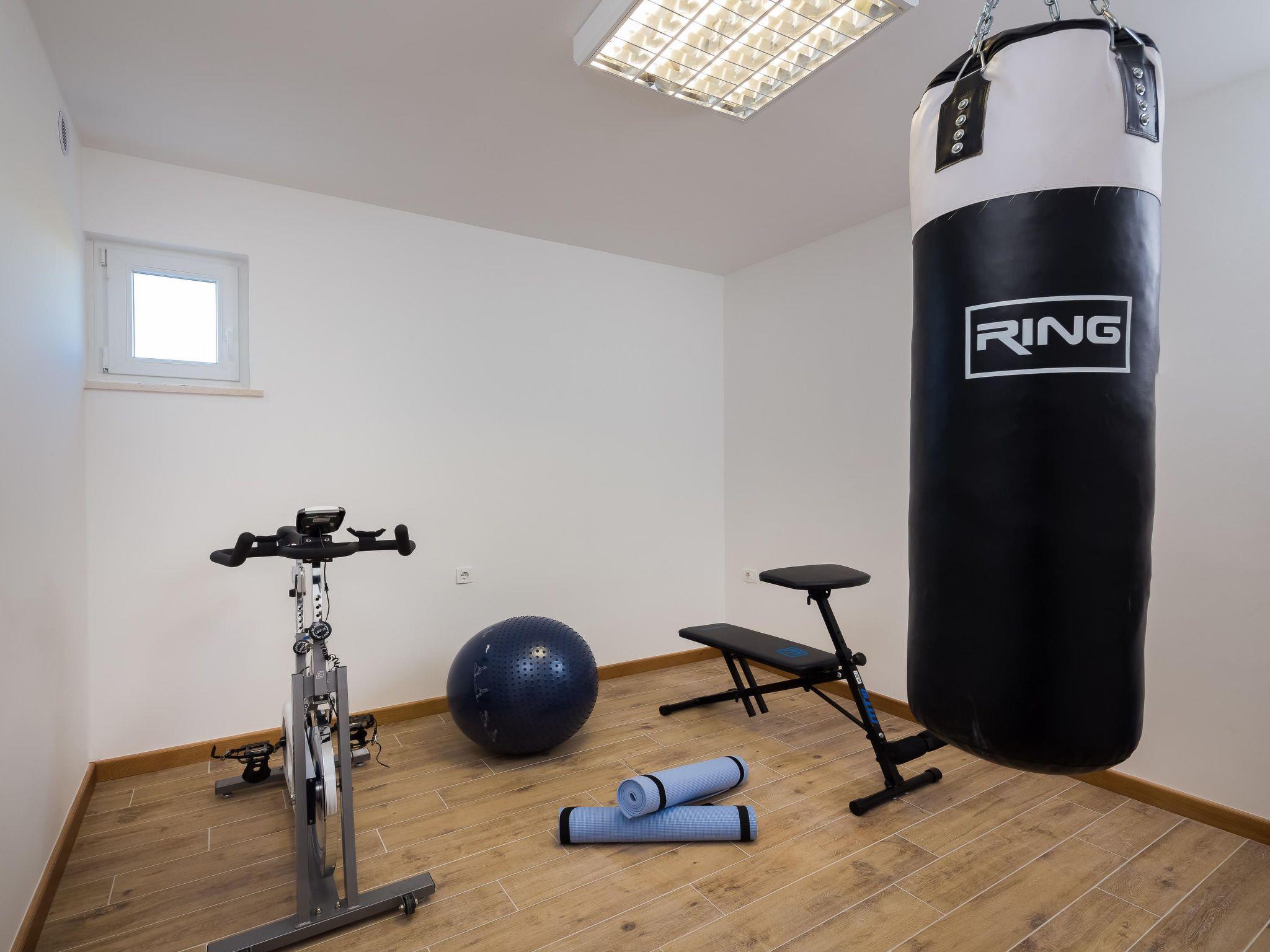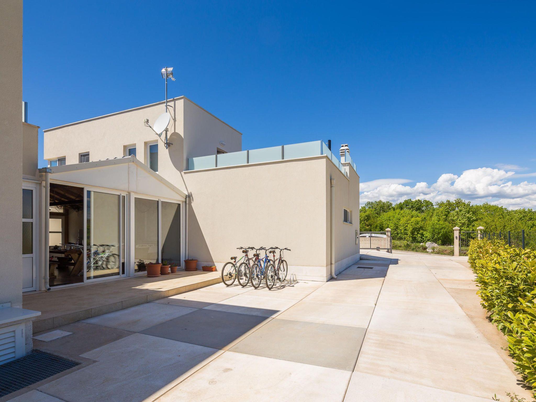 There is also a little gym. From the play room you can enter the two terraces, one with wooden floors and a jacuzzi and other is ideal for sunbathing and enjoying a view on a sunset and idyllic green hills. Respecting villas site, each space here has positioned to share unique view of the pool and nature sights. There is a large parking space for more than 8 cars.