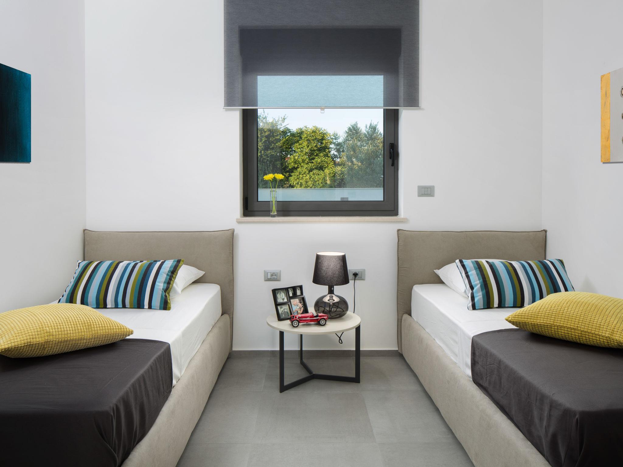 Modern villa "Villa Fasana". 5 apartments in the property. 150 m from the centre of Fažana, in a quiet, sunny position, 50 m from the sea, 50 m from the beach. For shared use: property (fenced). Private: property 100 m2 (fenced), small garden, swimming pool angular (6 x 4 m, depth 140 cm, seasonal availability: 04.Apr. - 10.Oct.) with internal staircase. Outdoor shower, barbecue. In the house: internet access. Parking at the house on the premises. Shop 300 m, supermarket 1 km, restaurant 150 m, bus stop 500 m, pebble beach, concrete beach 50 m. Golf course (18 hole) 2 km, surf school 2 km, tennis 1 km, riding stable 5 km, walking paths from the house 50 m, cycle lane 100 m. Nearby attractions: NP Brijuni 500 m. The owner does not accept any youth groups.
