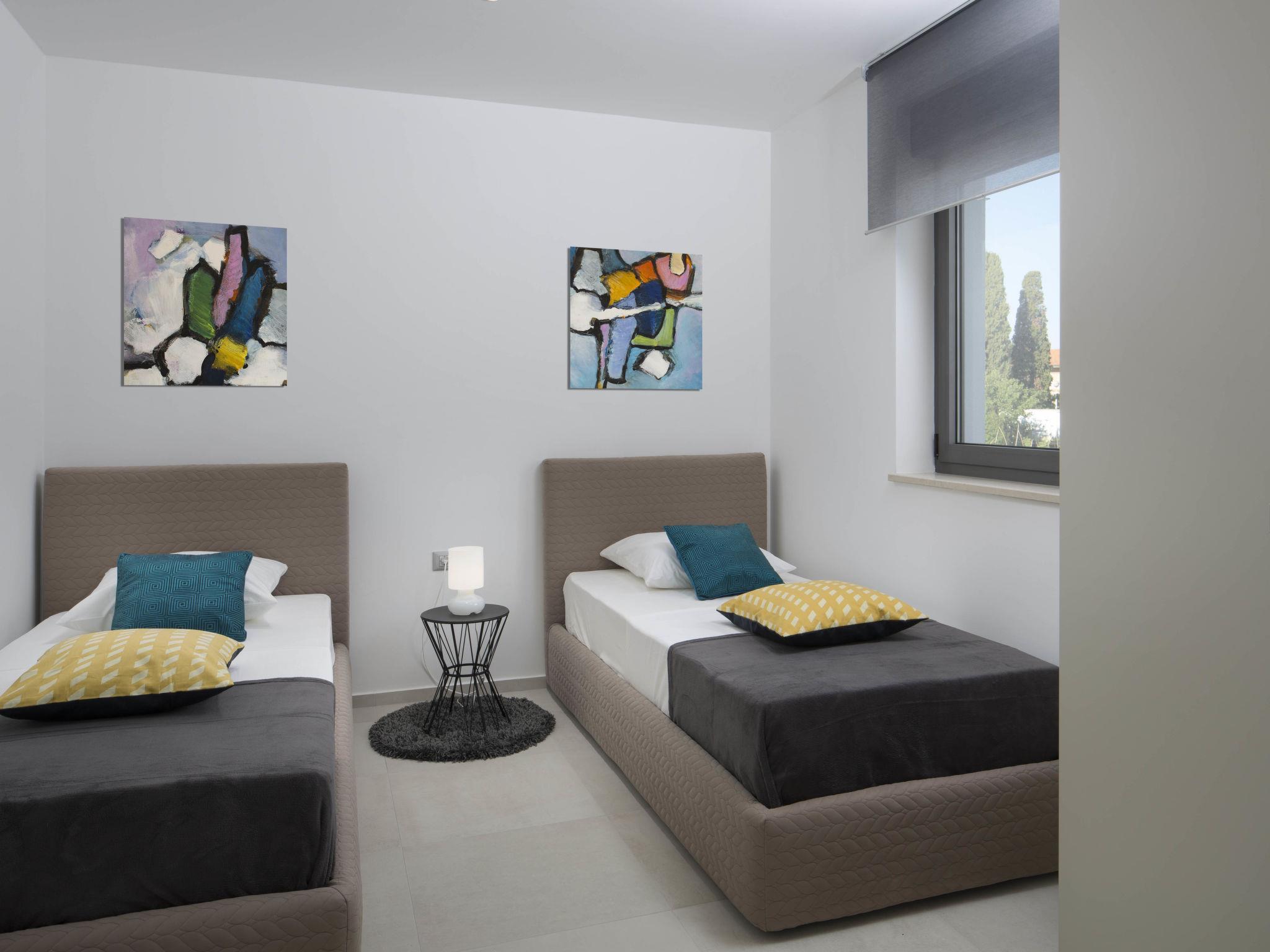 Modern villa "Villa Fasana", built in 2016. 5 apartments in the property. 150 m from the centre of Fažana, in a quiet, sunny position, 50 m from the sea, 50 m from the beach. For shared use: property (fenced). Private: hot tub. In the house: internet access. Parking at the house on the premises. Shop 300 m, supermarket 1 km, restaurant 150 m, bus stop 500 m, pebble beach, concrete beach 50 m. Golf course (18 hole) 2 km, surf school 2 km, tennis 1 km, riding stable 5 km, walking paths from the house 50 m, cycle lane 100 m. Nearby attractions: NP Brijuni 500 m. The owner does not accept any youth groups.