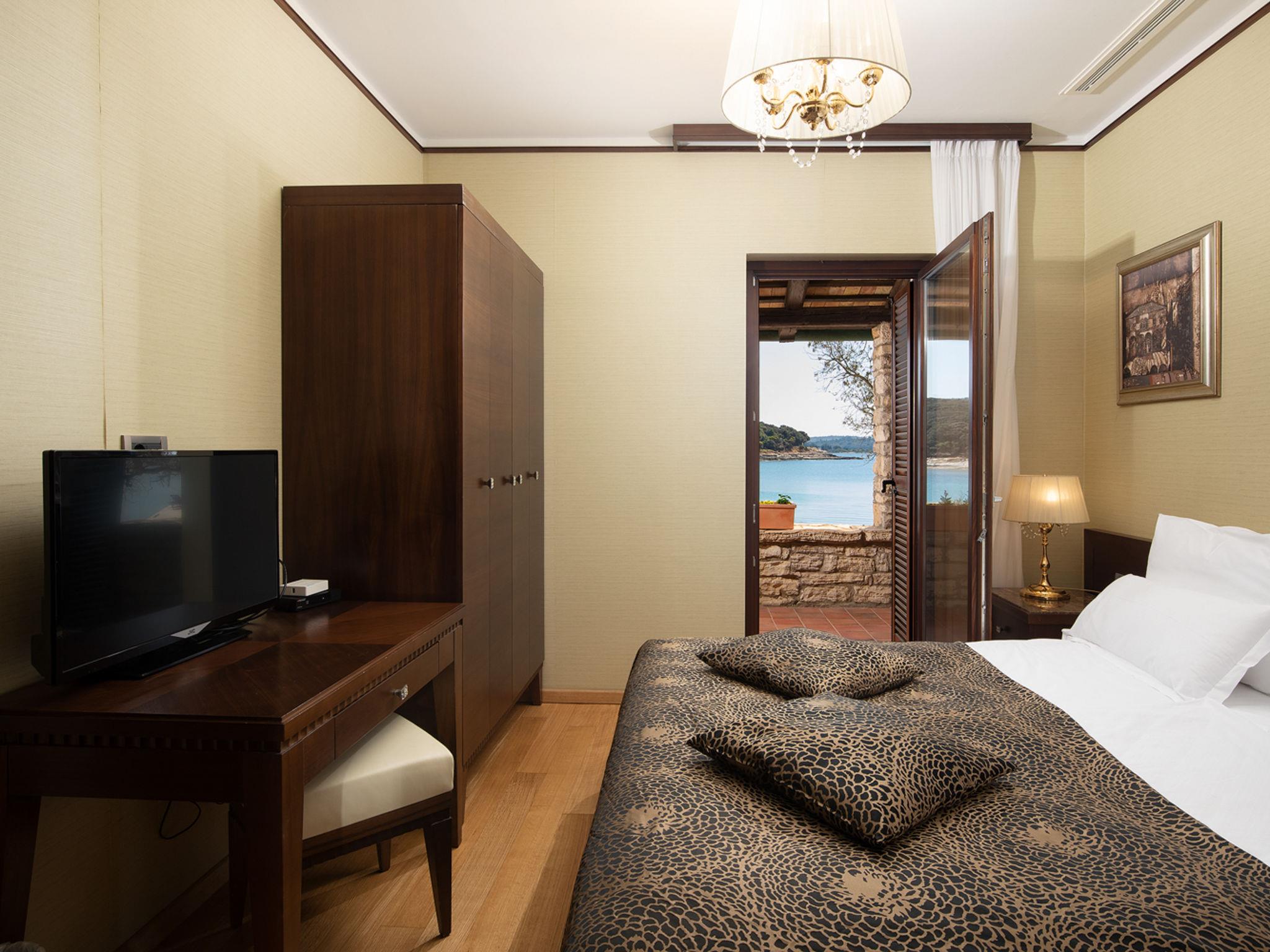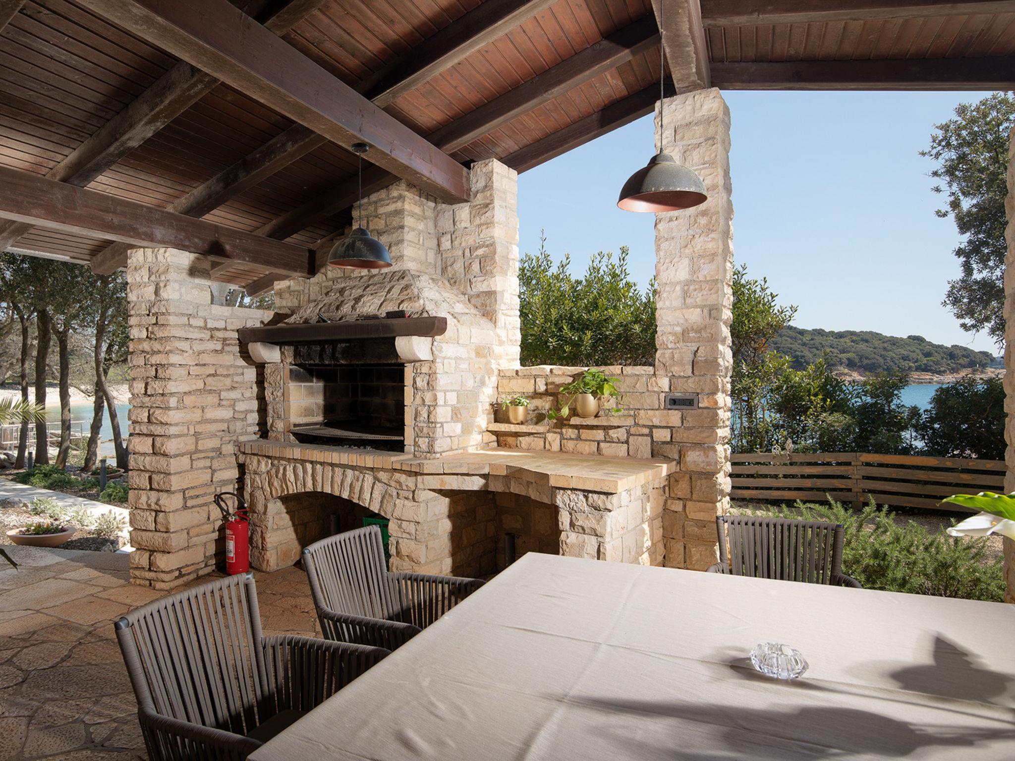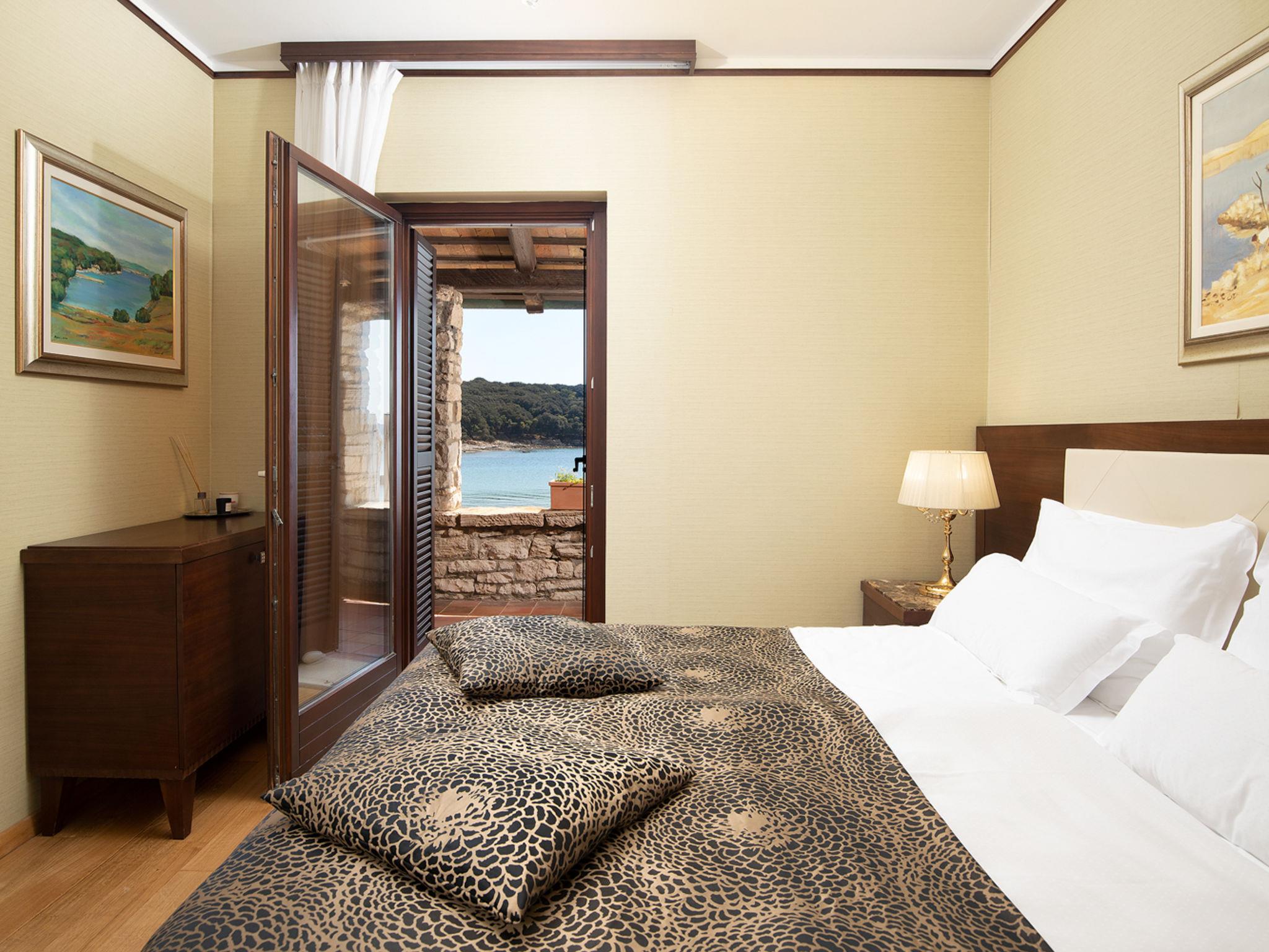 The Villa is located in the National park, The use of electric golf car and cycles is in price included. Available: speedboat for transfer from the land to the island and from the island to the land back. Villa "Lovorka". 3.5 km from the centre of Fažana, 5 m from the beach, direct access to the beach. Private: property 3'335 m2 (fenced). Outdoor shower, private beach, garden furniture, barbecue. In the house: internet access, sauna, hot tub. Room cleaning daily (included). Breakfast (included). Parking (for 2 cars, extra), single garage. E-charging station. Shop 3.5 km, supermarket 3.5 km, restaurant 1 km, bar 1 km, bus stop 3.5 km, pebble beach 5 m. Object suitable for 6 adults. Please note: airfield 10 km from the property.