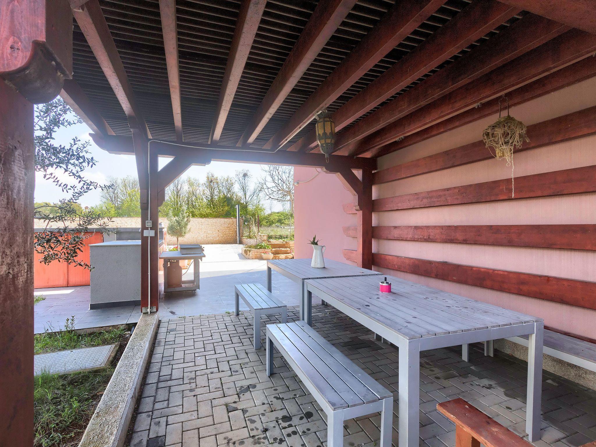 The house is in a quiet residential area in Fazana, in the Valdbandon area. It is about 2km to the romantic fishing village Fazana and about 7km to Pula.