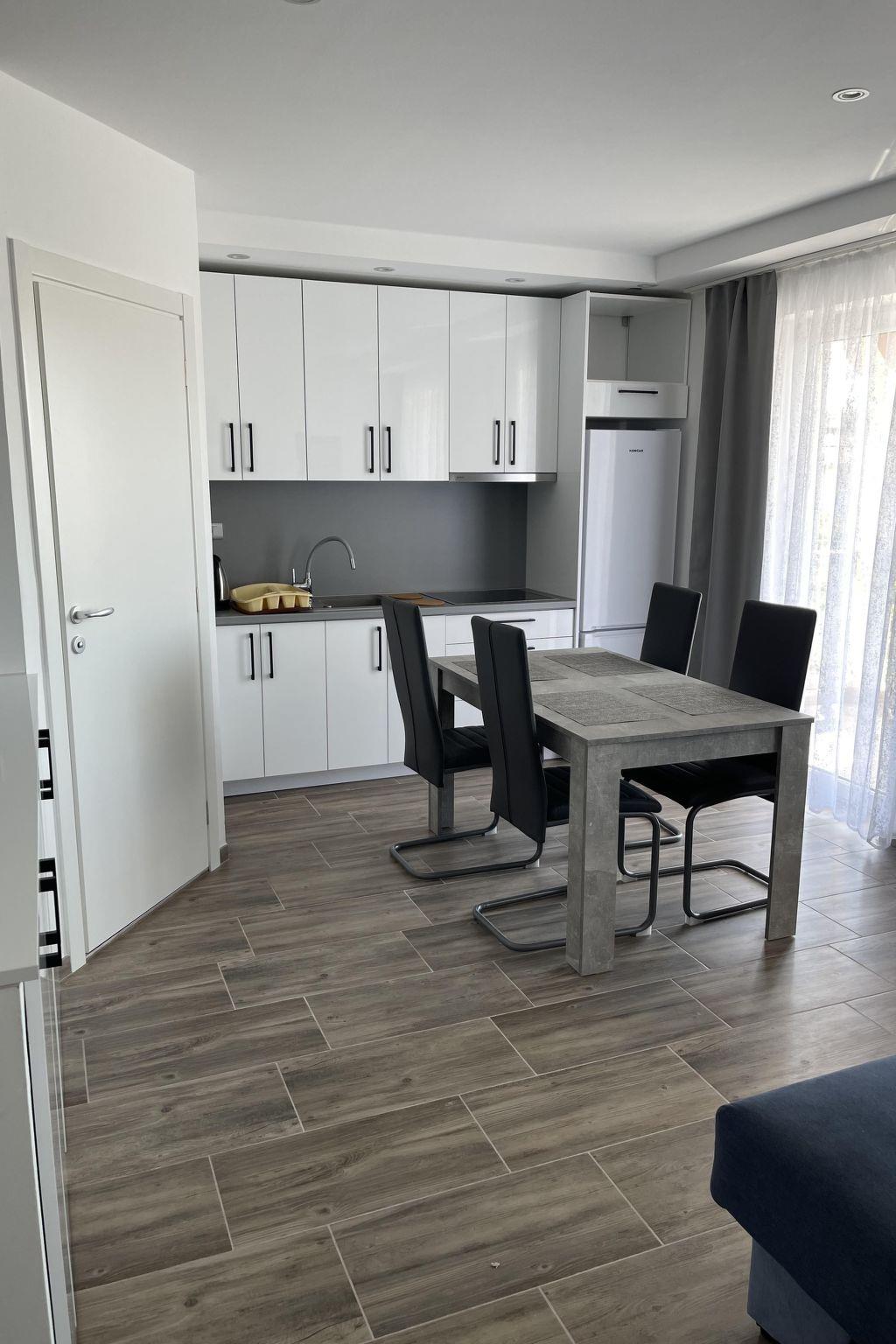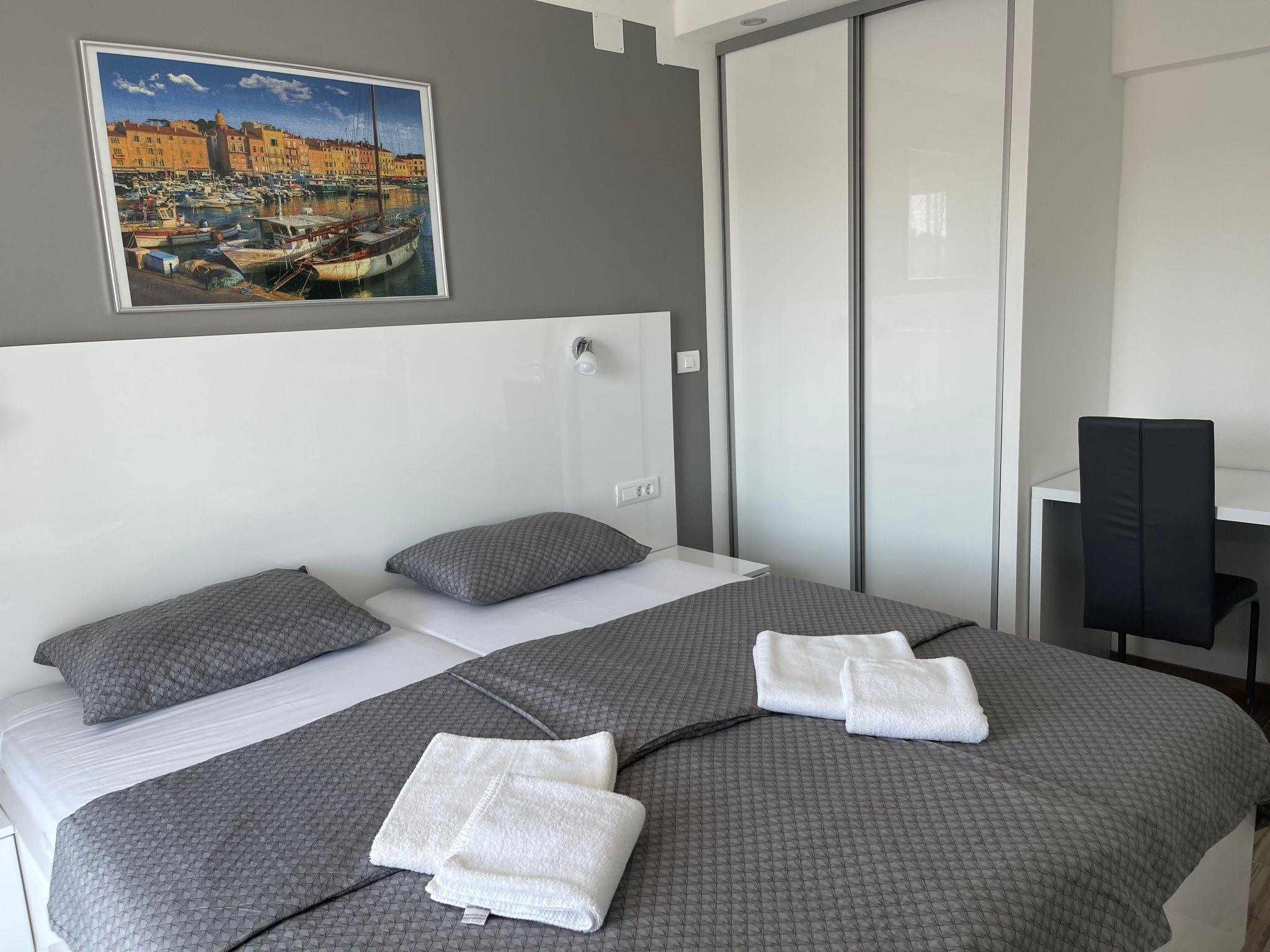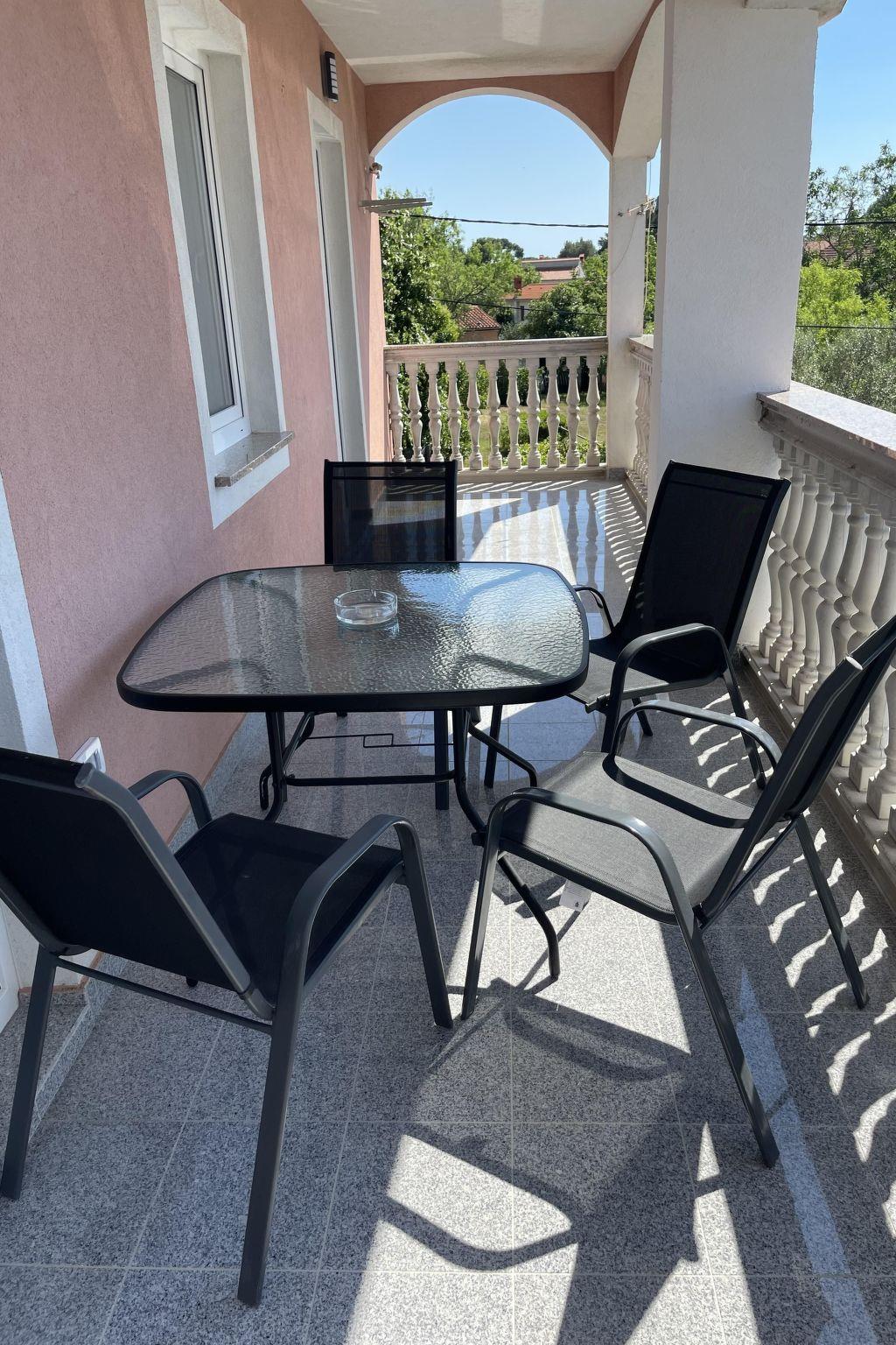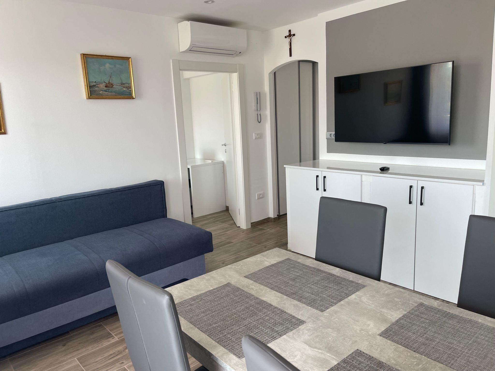 Your vacation object: The holiday apartment is surrounded by 1030 sqm large, enclosed garden property with meadow and trees. The owner lives in the house (with separate entrance). To collective use available: terrace, garden furniture and barbecue possibilities. Your holiday apartment: 2 rooms (therefrom 1 bedroom), 45 sqm. Air conditioning. Entrance on the 1st floor, through the internal stairs. 1st floor: kitchen living with 1 additional bed on the couch/sofa, sitting area, dinette, color-TV and access to the terrace (15 sqm, roofed, garden furniture). Bedroom with 1 double bed. kitchenette in the kitchen living with electric cooker (2 cooking plates), extractor hood, refrigerator and coffee machine. bathroom with shower, 1 washbasin and WC. Other facilities: Internet access (WLAN). Television available by satellite. Pets: not allowed. Location: Croatia, Valbandon. The suitable equipped holiday apartment is located in an apartment house and In has peaceful and sunny location. The access goes on a side road (asphalted). Parking on the property (for 5 cars). Shopping 300 m, restaurant 1000 m, Central district 1500 m. Indoor swimming pool in Bi- Village 300 m. Surrounding area: Istria, Pula (region). In the summer: Adriatic Sea (beach 500 m with gravel-sand and cliffs). In Bi- Village: tennis and Diving in each direction 300 m.