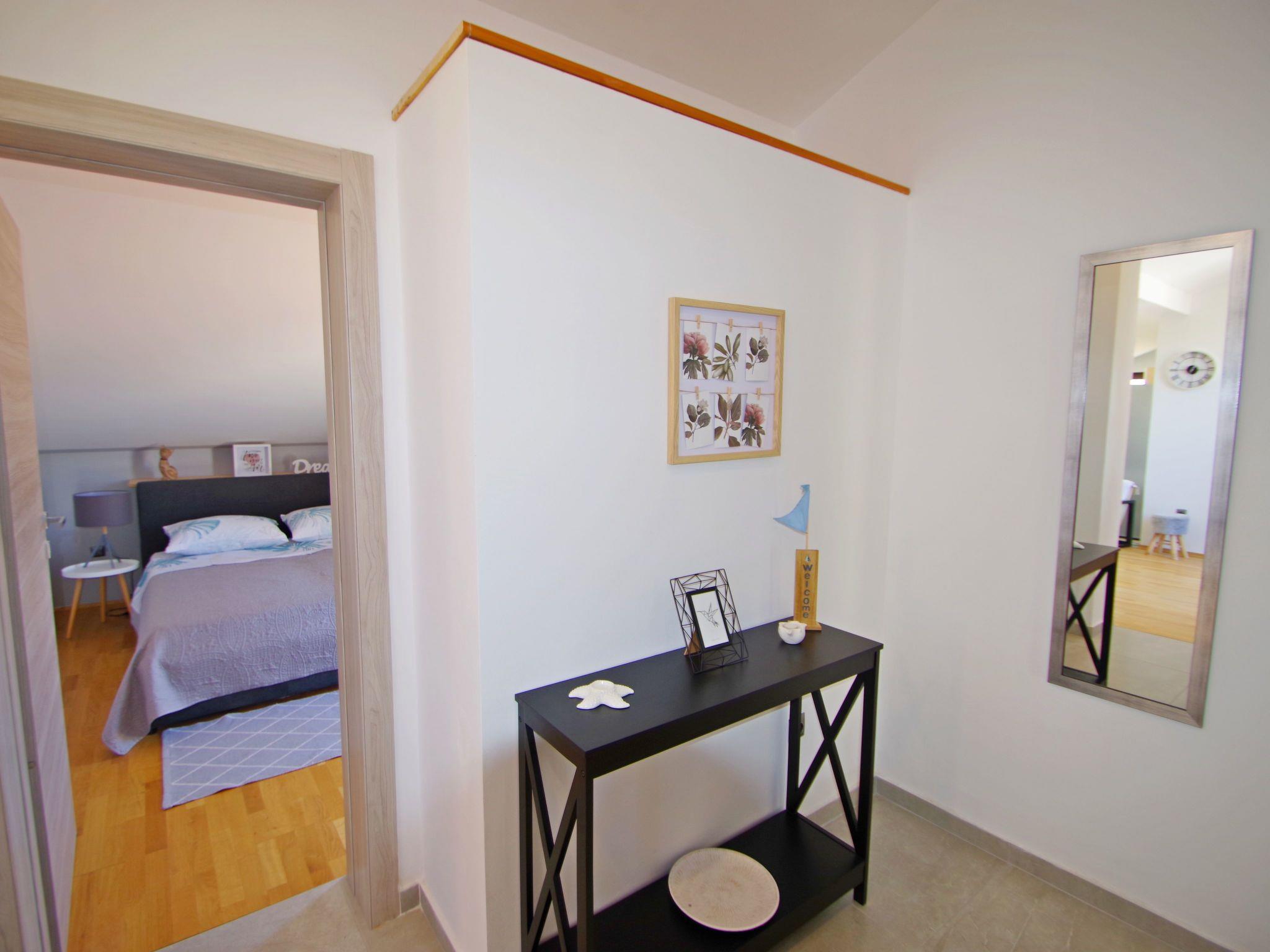Holiday apartment „Luci” is located in village Valbandon, only 900 m from the beach and 2 km from the center of Fažana. Apartment is situated on the second floor of family house. Apartment is suitable for 3 persons and has nice balcony (roof terrace) and private parking place. Holiday apartment has 2 bedroom and it is fully and modern equipped and tastefully decorated.Location of the house is on a peaceful area and vicinity of the grocery store, pebble beach and beach bars, selection of the nearby restaurants and easy going atmosphere make this apartment perfect for the relaxed summer vacation. Two kilometers further there is Fažana, picturesque fishermen town, with plenty of street events during summer months, delicious restaurants and nice walking promenade along the sea.The beach in Valbandon is surrounded by a pine forest and the clear sea, offering a view of the Brijuni islands. The beach is equipped with the necessary infrastructure and offers additional gastro, entertainment, and recreational services.The owners are living in the same house.