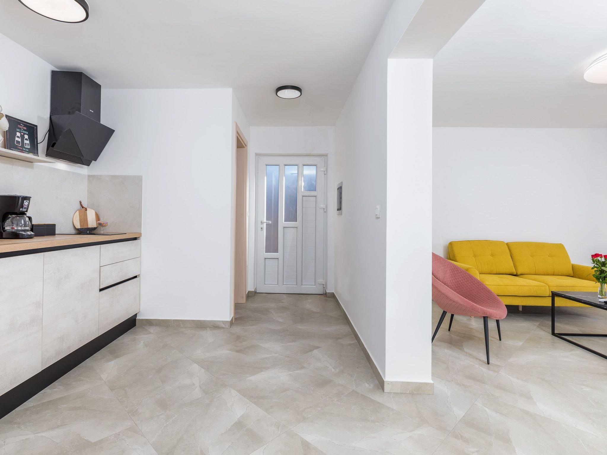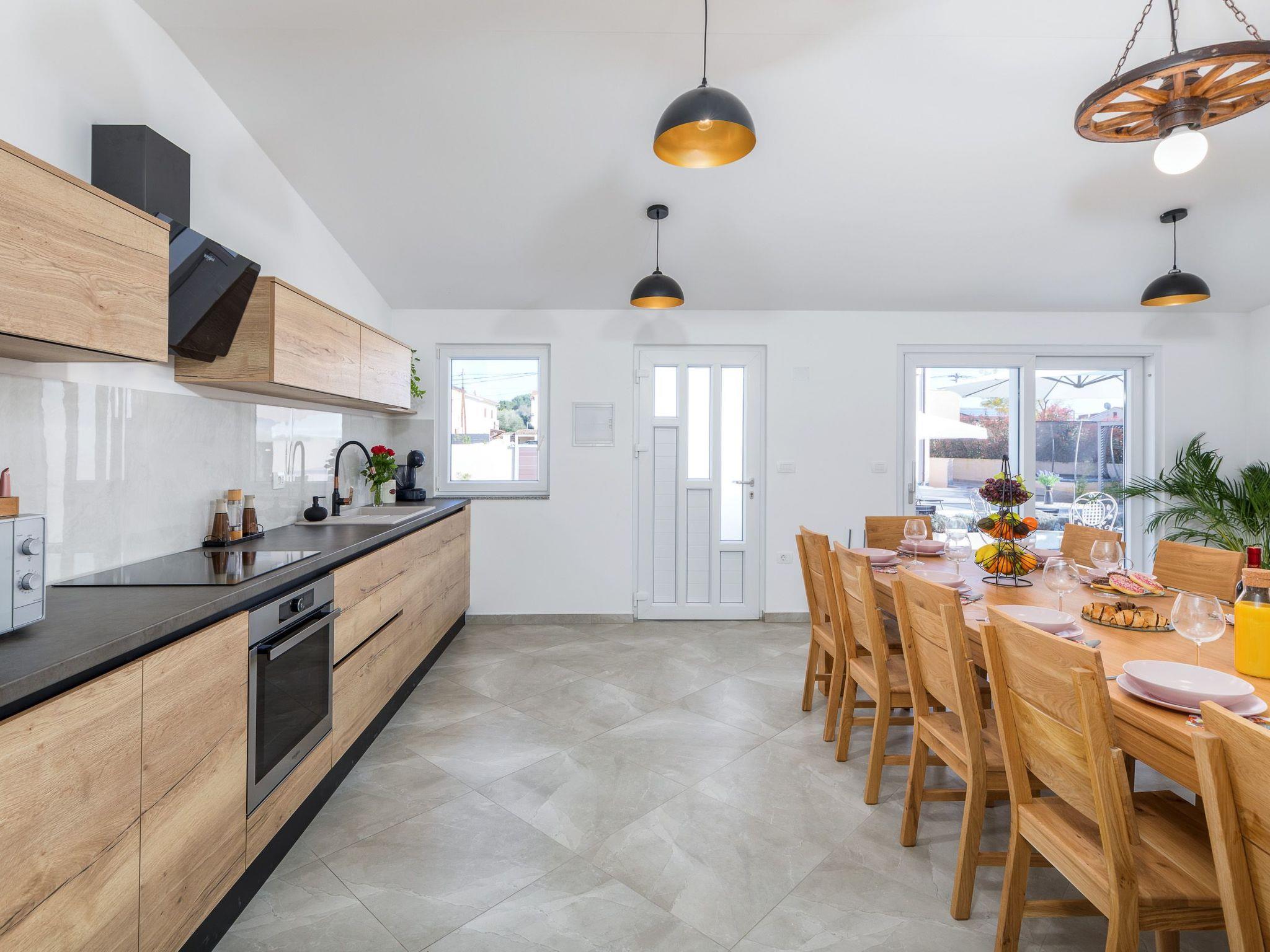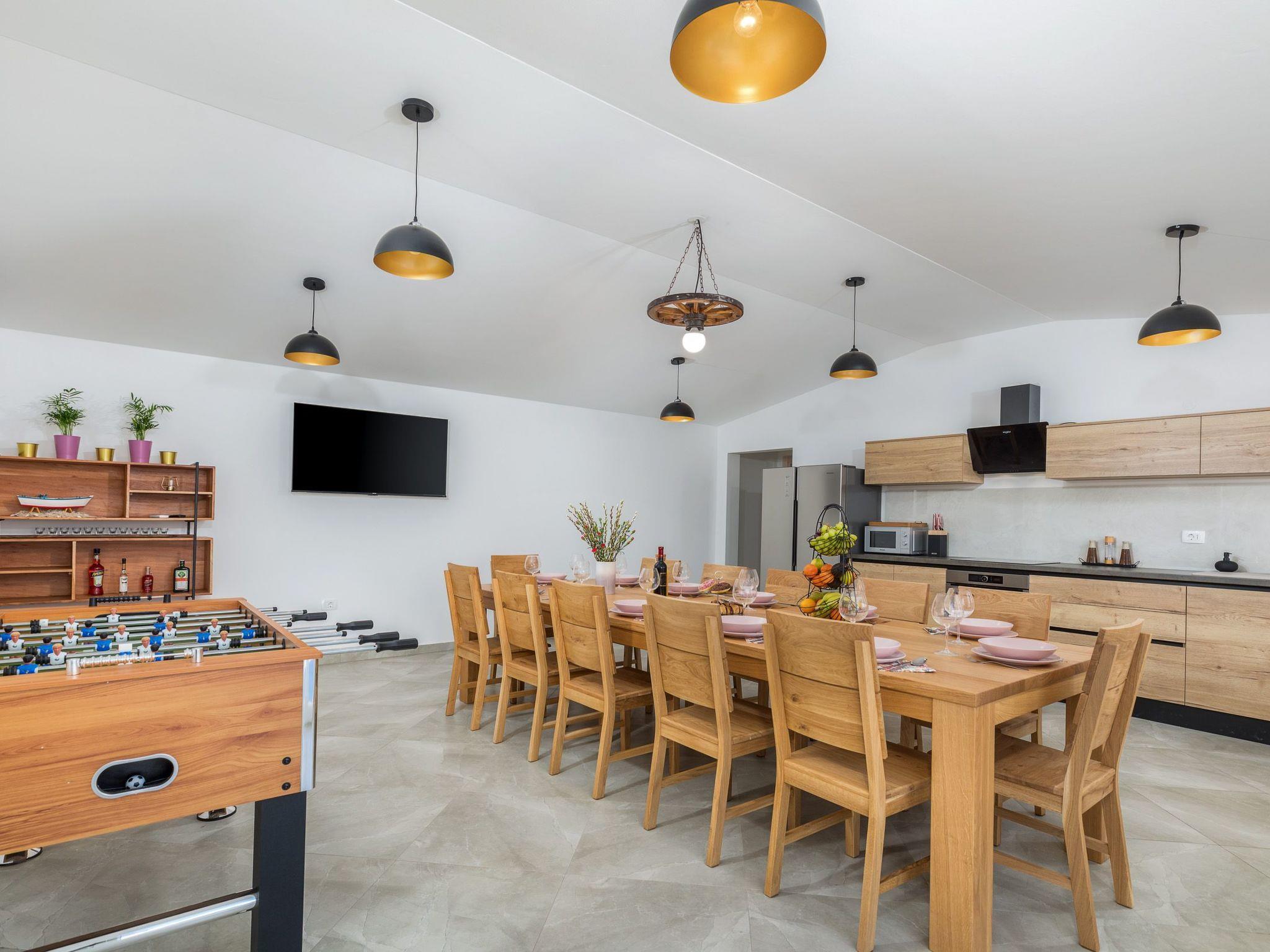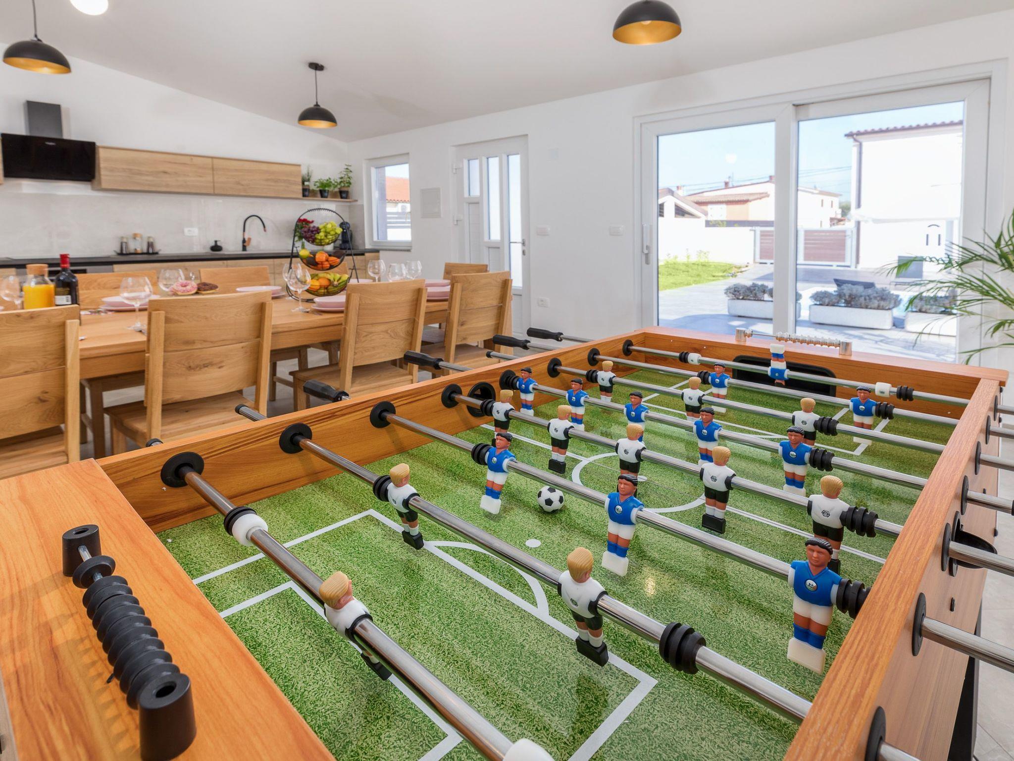 The total enclosed parcel area is 1350m2. In this spacious yard you will find a private 47m2 pool with 12 deck chairs, next to the pool there is a barbecue where you can prepare fine fresh fish, meat or various vegetables. Among the activities, you can play table tennis and table football, and the youngest can jump on the trampoline. The pool has the possibility of heating ( not possible in July and August )