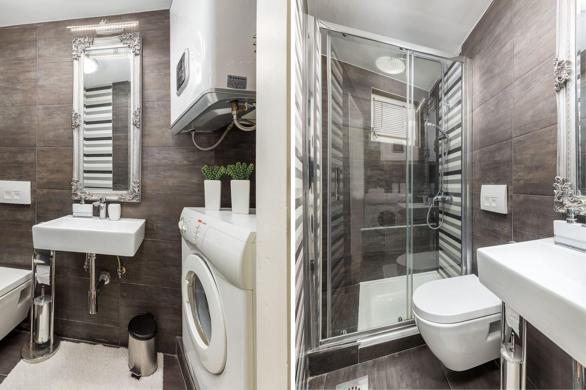 The hus i Fažana har 2 soveværelse(r) og kapacitet til 4 person(er). Bolig på 40 m² hyggelig og er moderne. Er beliggende 0 m fra golfbanen, 0 m fra stranden, 0 m fra togstationen, 0 m fra metroen, 0 m fra skibakken, 0 m fra forlystelsesparken, 0 m fra vandland, 0 m fra floden, 0 m fra naturparken, 0 m fra sø, 0 m fra de varme bade, 50 m from the restaurant, 50 m fra stenstranden, 50 m fra byen, 100 m fra supermarkedet, 100 m fra busstationen, 13 km fra lufthavnen og er beliggende i en ideel for familier område og i centrum af byen. Tilbyder terrassemøbler, vaskemaskine, internet (wifi), hårtørrer, aircondition, utildækket parkering til i bygning tæt på, 1 TV, satellit (Sprog: Engelsk). The amerikanske køkken, på mixed, med service og køleskab, ovn, fryser, tallerkener/bestik, køkkenredskaber, kaffemaskine, brødrister, kedel, komfur, køkkengrej, tallerkener og skåle.