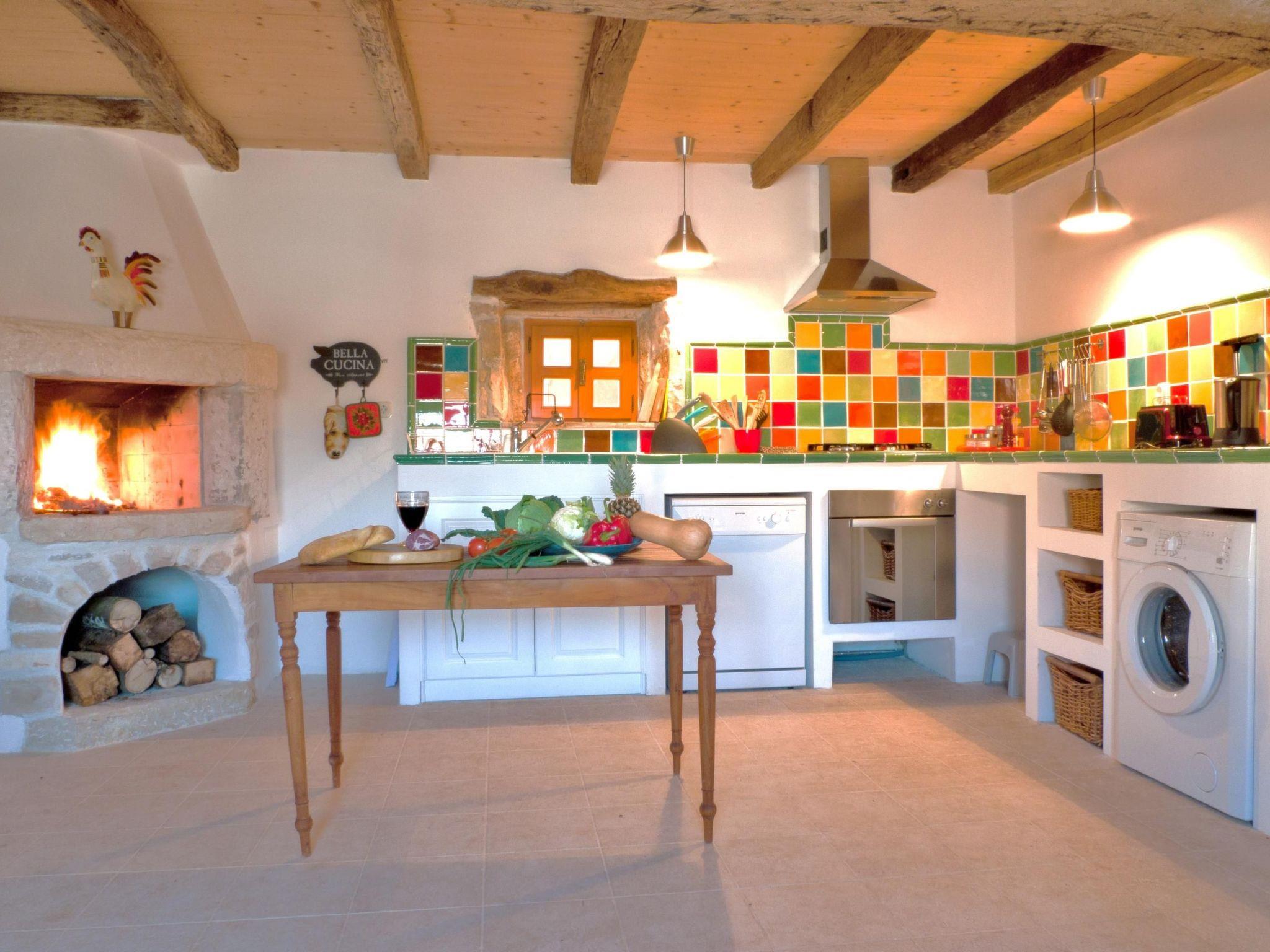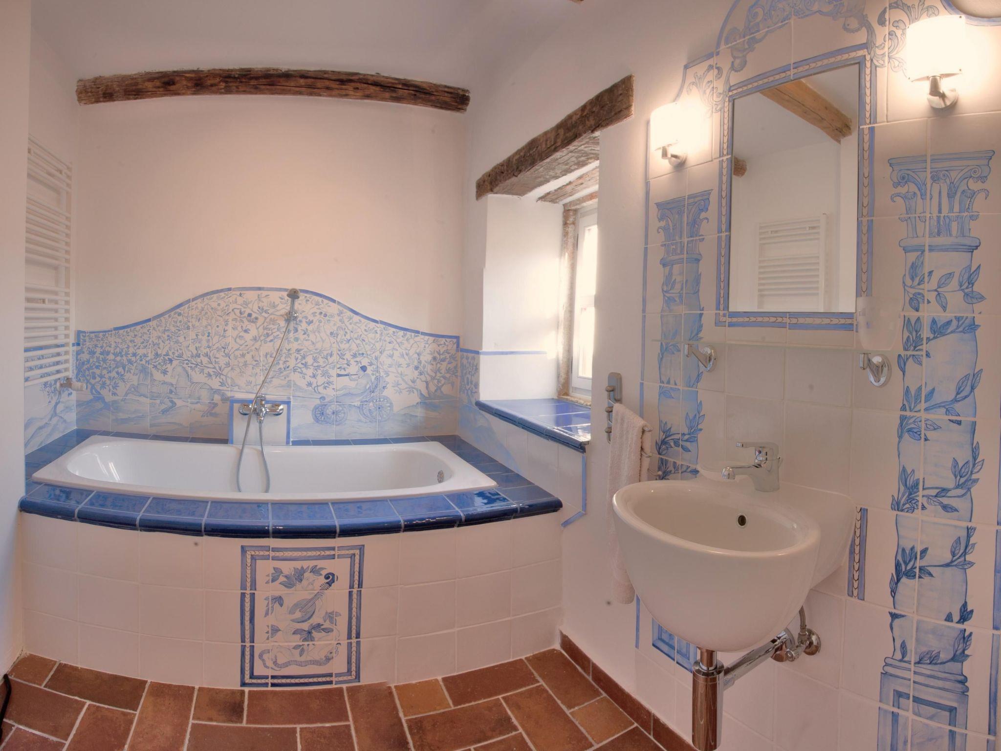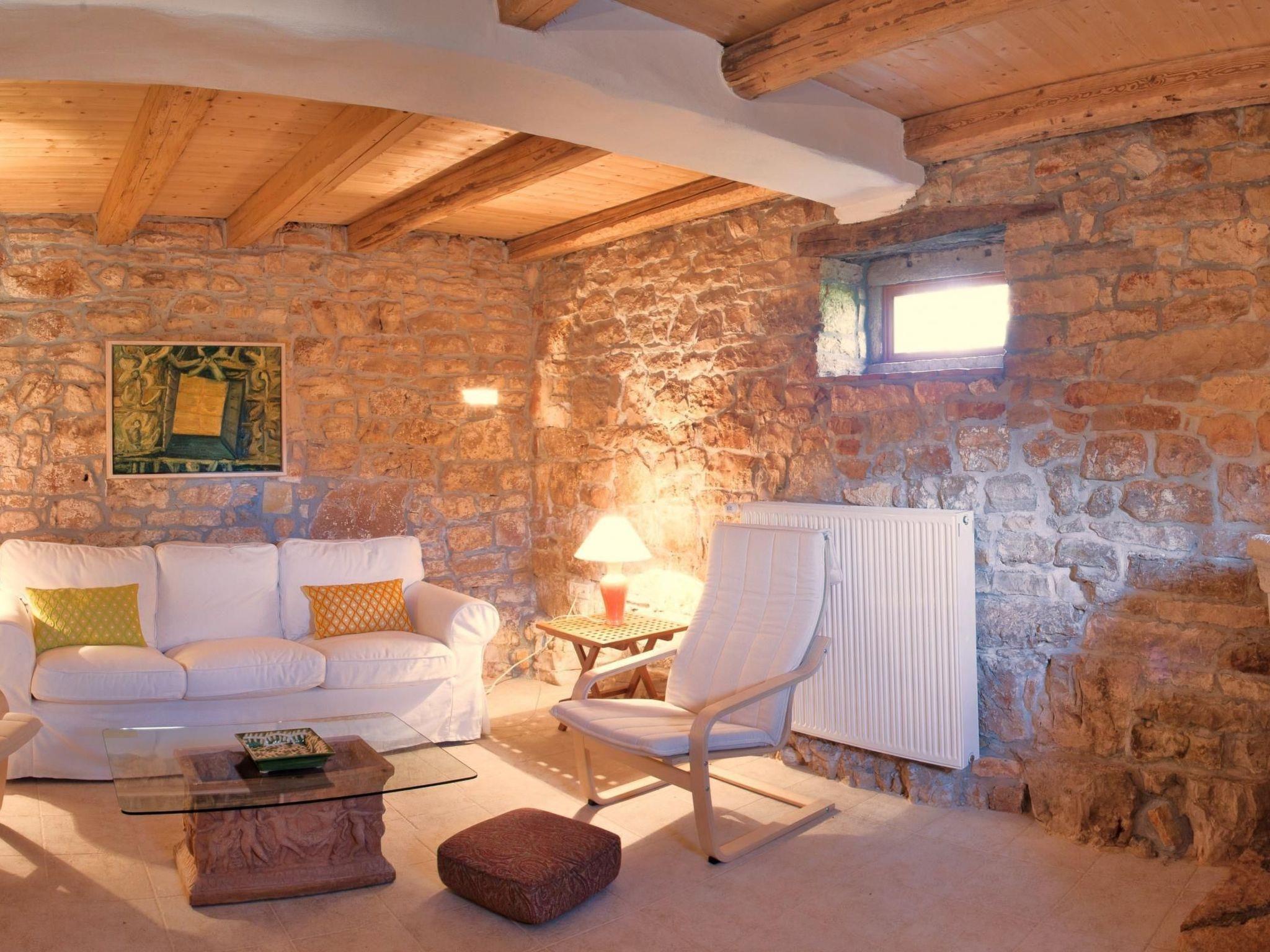 The house consists of thick stone walls (some dating back to Byzantine times), many niches and winding corners. It has two open fireplaces and artistically painted tiles in the bathroom and kitchen. Each bedroom is a different colour. Here you can unwind and really relax - completely off the beaten track. The house can comfortably accommodate eight people. In the main house you will find an elaborately and luxuriously renovated stone house on two floors: There are three double bedrooms, one twin bedroom, three bathrooms (two with separate showers), a well-equipped kitchen (hob, oven, washing machine, dishwasher, fridge/freezer, electric kitchen appliances), kitchen and lounge with open fireplace, TV with satellite connection, DVD player, radio CD player. Both houses have central heating. The bed dimensions are: Pink bedroom, double bed: 180/200cm, yellow bedroom, double bed: 180/200cm, blue bedroom, double bed: 160/200cm, twin bedroom, floral fabric, each bed: 135/200cm. WLAN will also be available from 2015.
