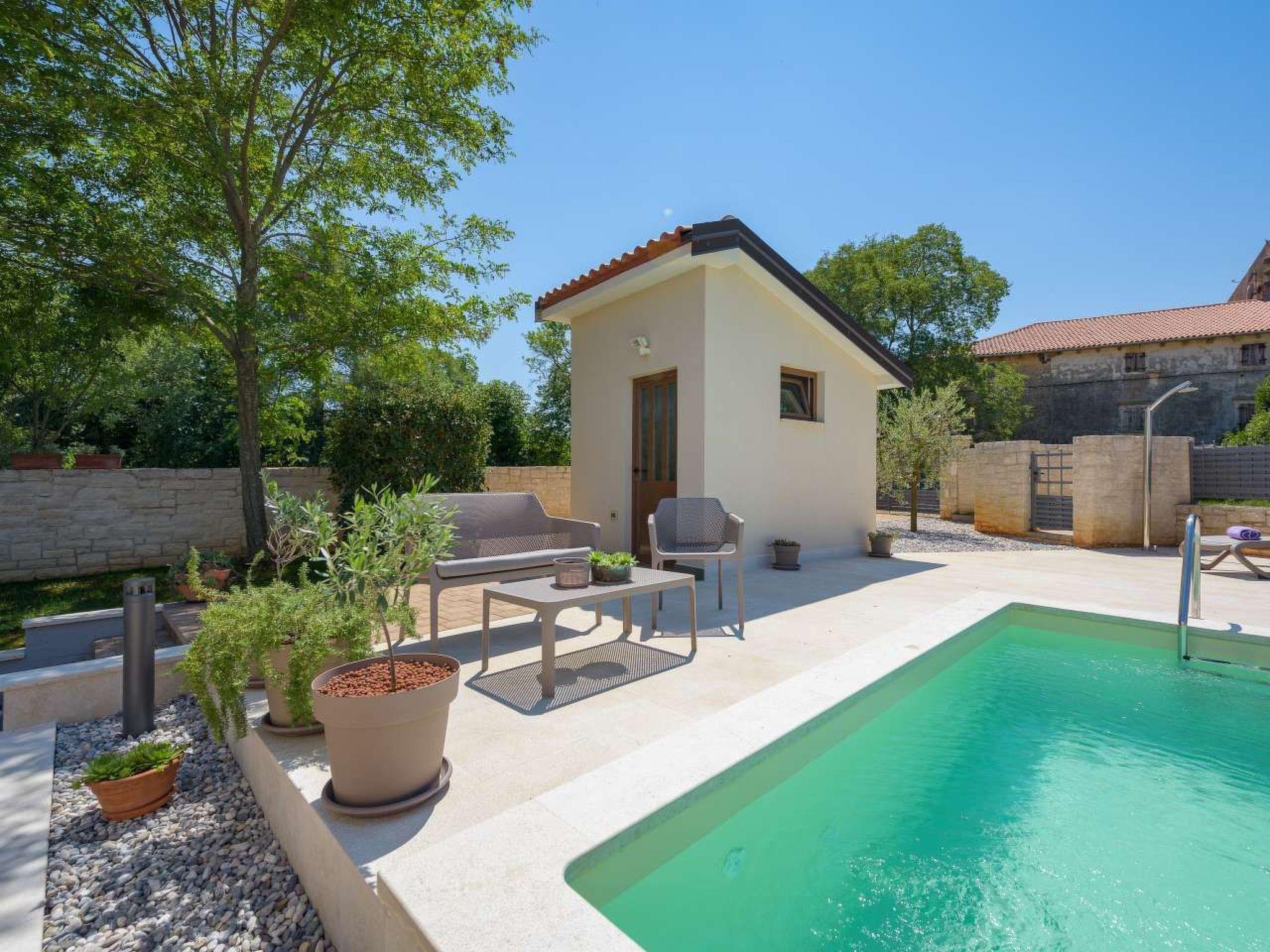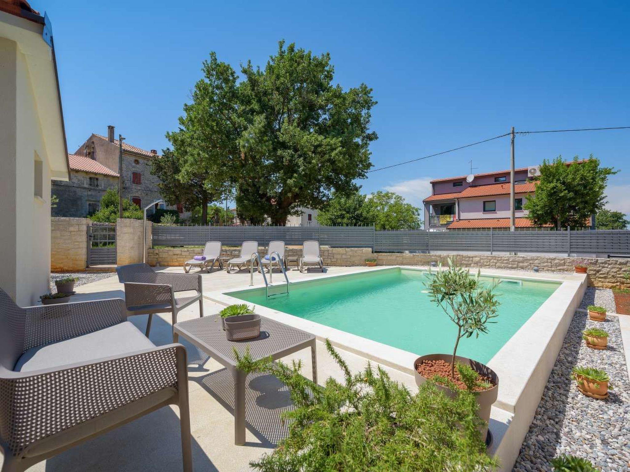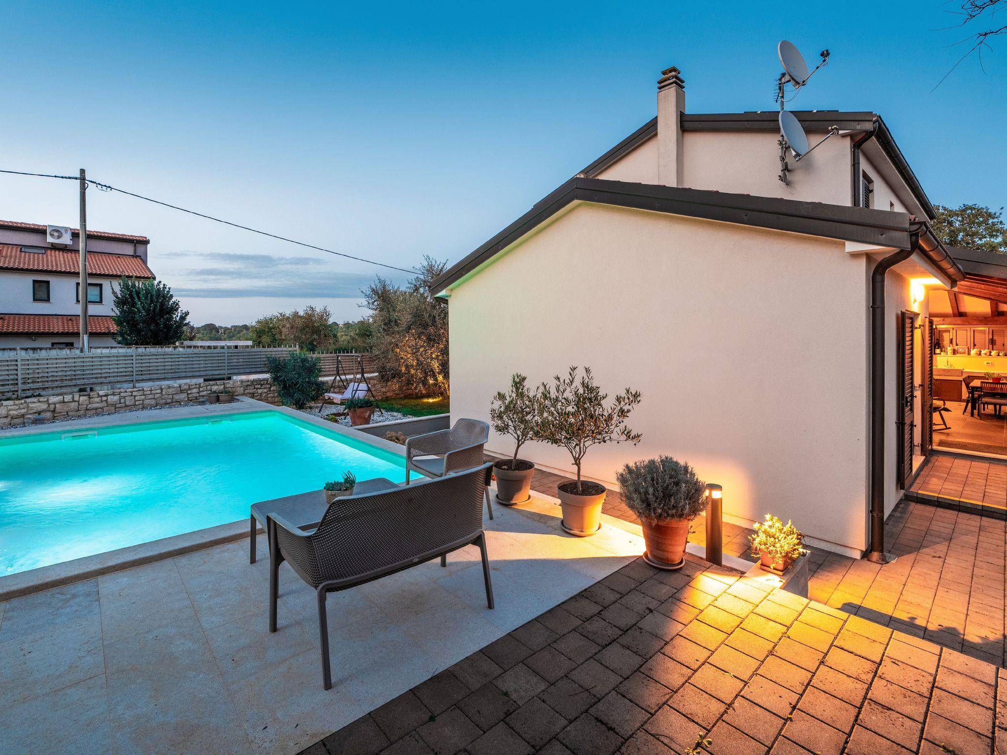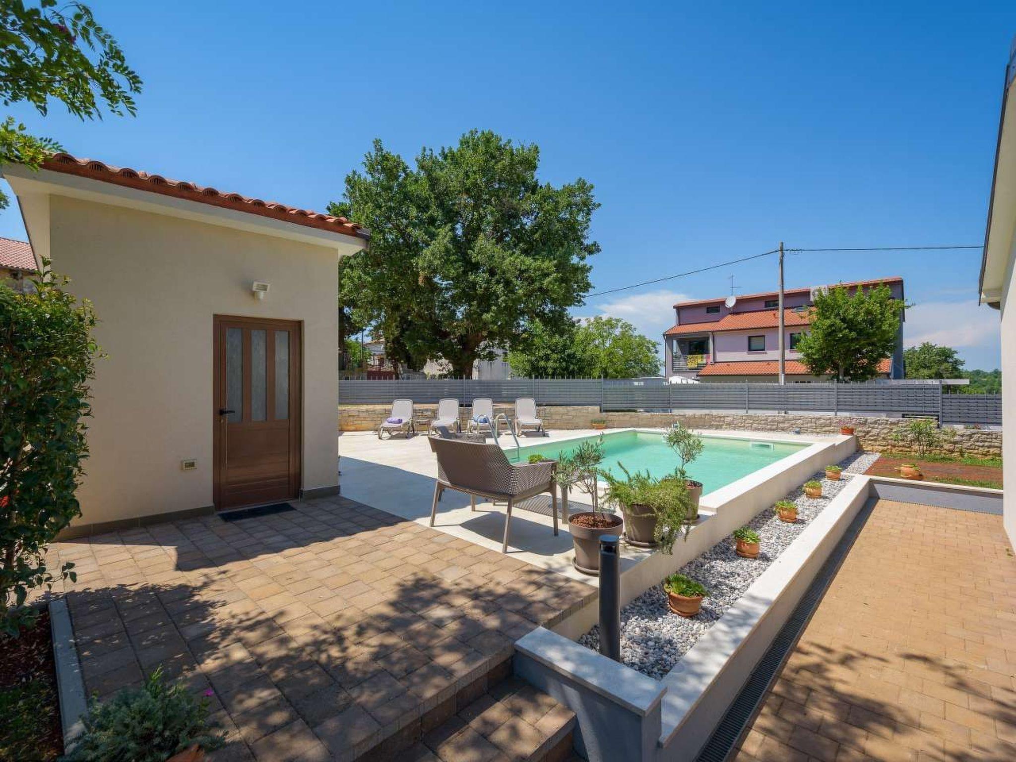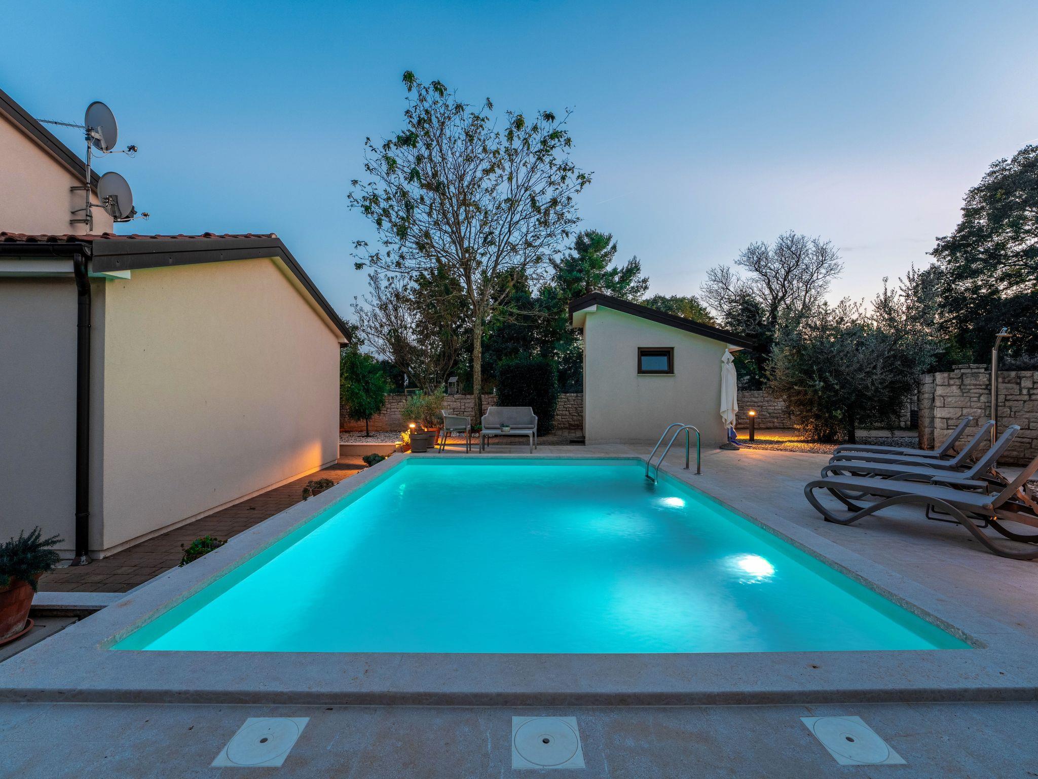 Villa Crystal is located in the village of Zikovici, not far from Porec, and about 11 km from the first beaches. Shops, restaurants and the like can be found in Visnjan, 5 km away, and a typical tavern is only 2 km from the villa. The holiday home is situated in a very quiet location on a fenced 630 sqm plot where guests have at their disposal a saltwater outdoor pool of 24 sqm with sun loungers, a covered terrace with dining table, brick barbecue, well-kept garden with flowers, and covered parking for two cars. The house was built in 2013 and furnished with love. It offers space for 4-5 people with 140 square metres of living space spread over two floors. On the ground floor of the house is the tastefully furnished living area, modern kitchen with access to the covered terrace and garden, as well as the bathroom with shower, on the first floor this house offers a spacious bedroom with double bed, a room with two single beds, the bathroom in the hallway and balcony with seating. If you want to spend a relaxing and quiet holiday with your loved ones, then Villa Crystal is the right choice.youth groups are not allowed.