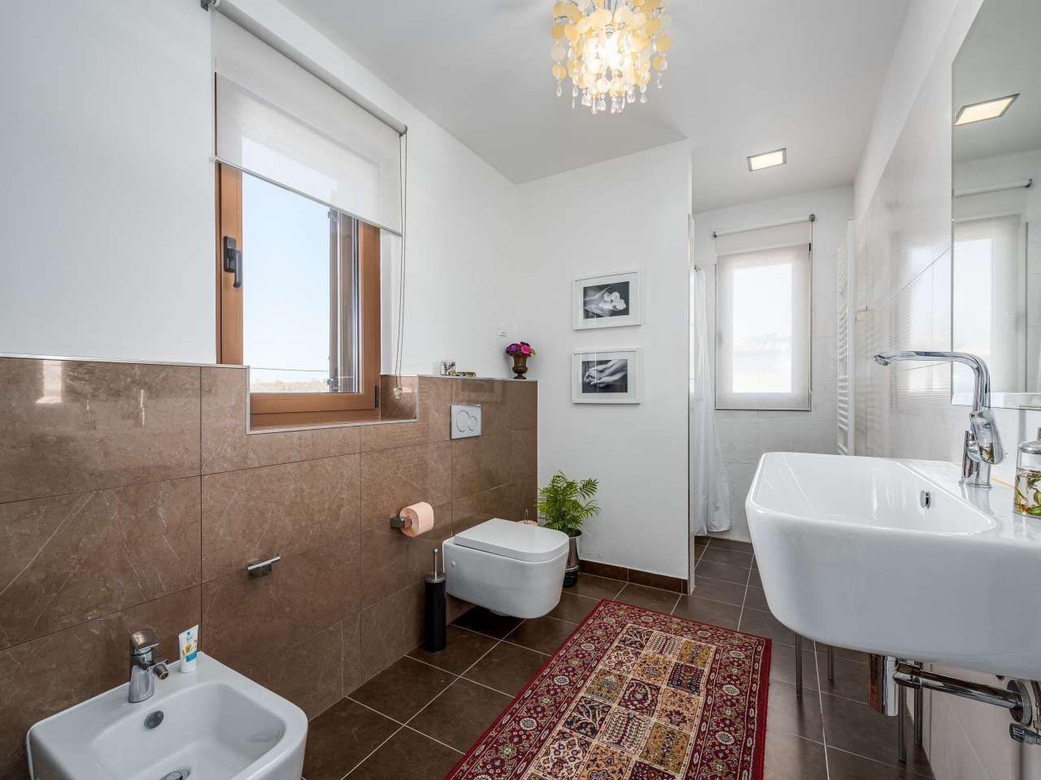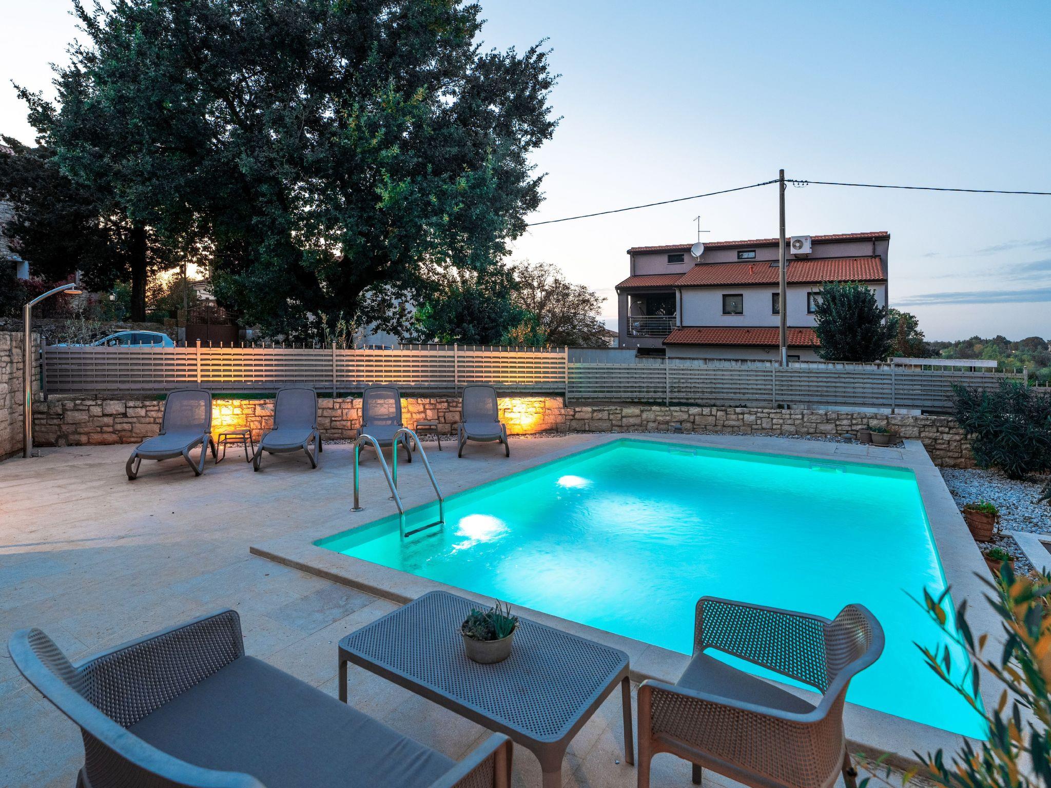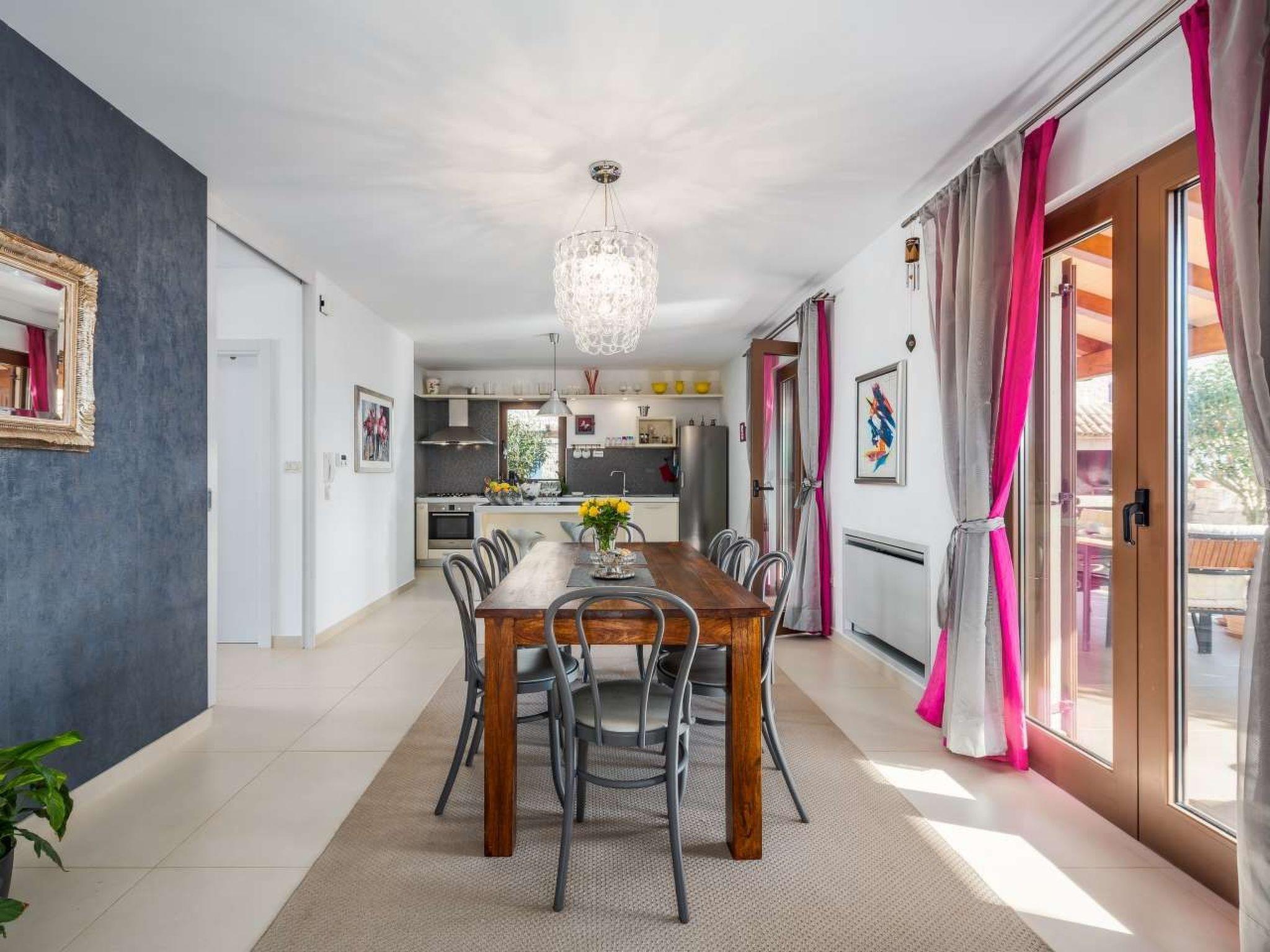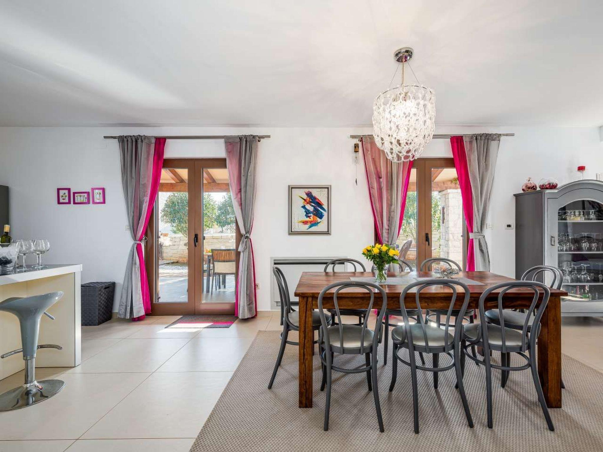 Villa Crystal is located in the village of Zikovici, not far from Porec, and about 11 km from the first beaches. Shops, restaurants and the like can be found in Visnjan, 5 km away, and a typical tavern is only 2 km from the villa. The holiday home is situated in a very quiet location on a fenced 630 sqm plot where guests have at their disposal a saltwater outdoor pool of 24 sqm with sun loungers, a covered terrace with dining table, brick barbecue, well-kept garden with flowers, and covered parking for two cars. The house was built in 2013 and furnished with love. It offers space for 4-5 people with 140 square metres of living space spread over two floors. On the ground floor of the house is the tastefully furnished living area, modern kitchen with access to the covered terrace and garden, as well as the bathroom with shower, on the first floor this house offers a spacious bedroom with double bed, a room with two single beds, the bathroom in the hallway and balcony with seating. If you want to spend a relaxing and quiet holiday with your loved ones, then Villa Crystal is the right choice.youth groups are not allowed.