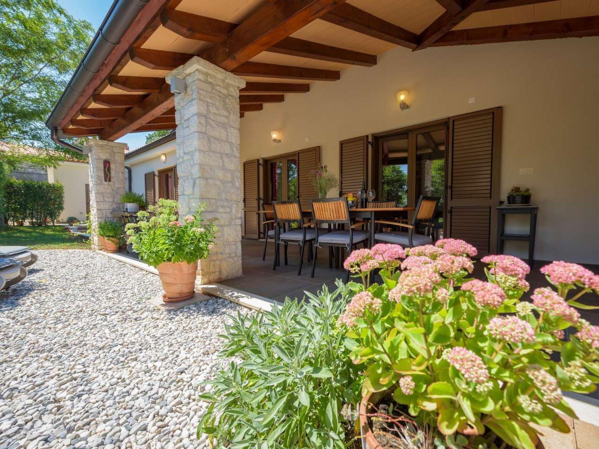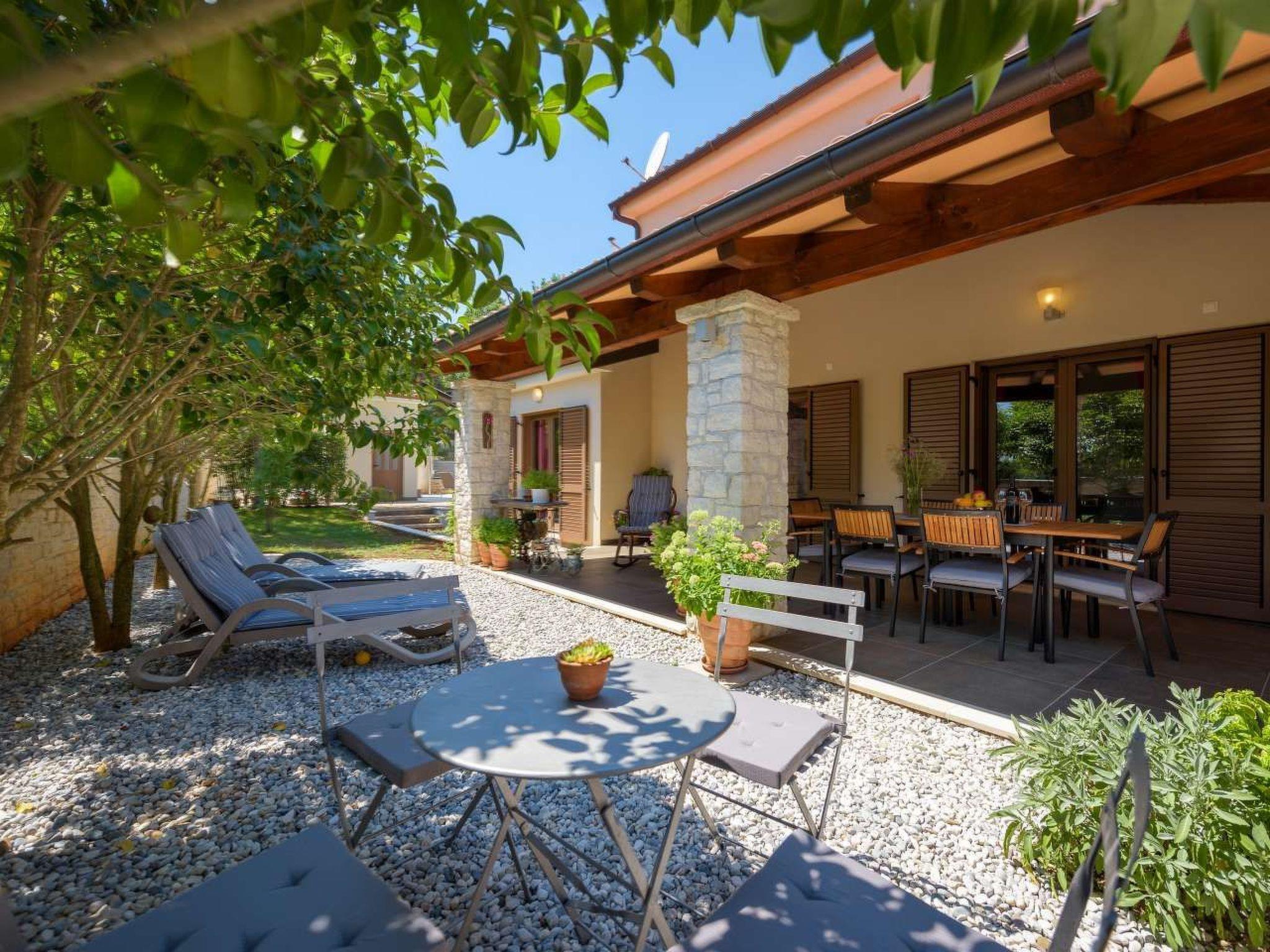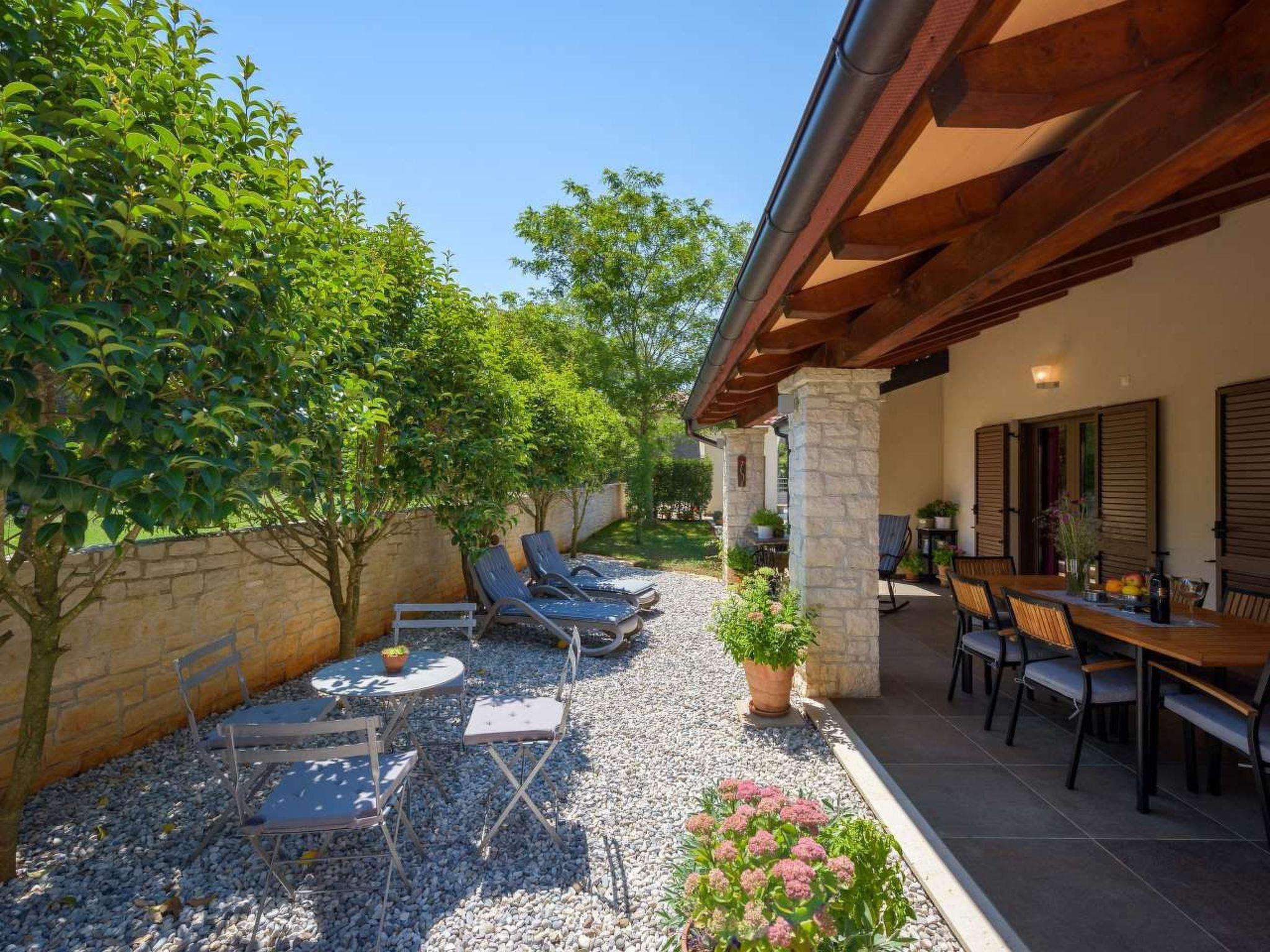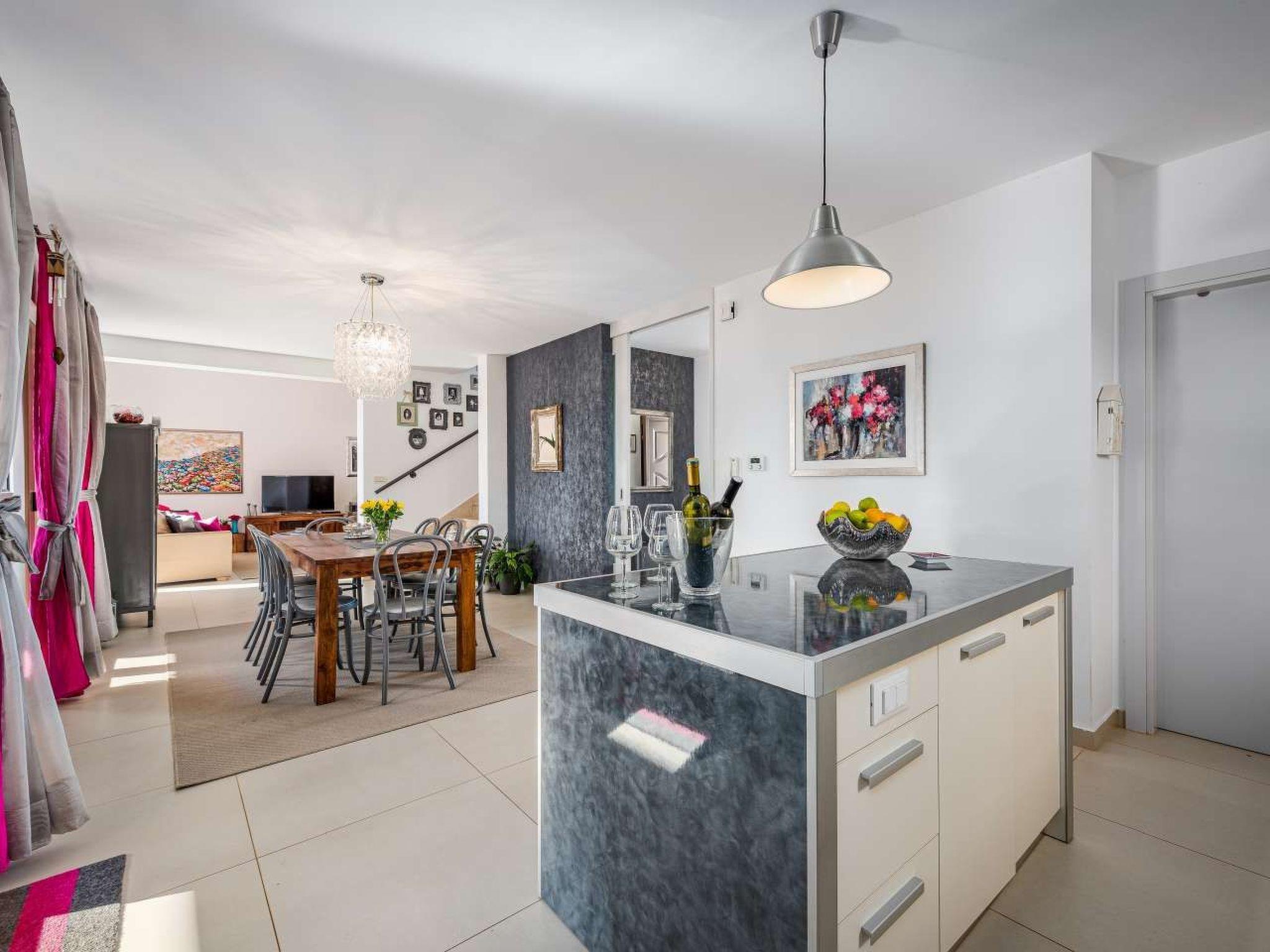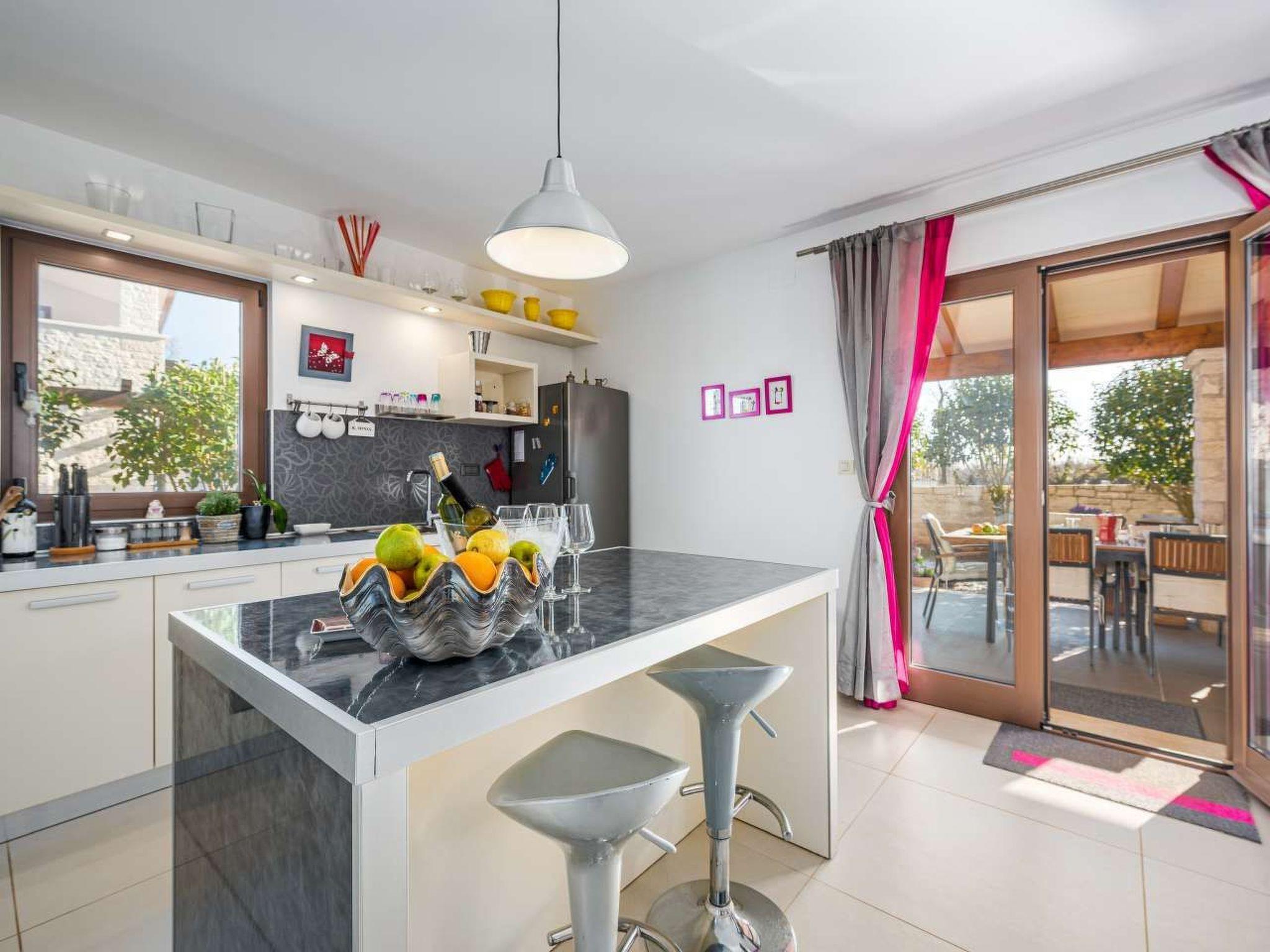 Villa Crystal is located in the village of Zikovici, not far from Porec, and about 11 km from the first beaches. Shops, restaurants and the like can be found in Visnjan, 5 km away, and a typical tavern is only 2 km from the villa. The holiday home is situated in a very quiet location on a fenced 630 sqm plot where guests have at their disposal a saltwater outdoor pool of 24 sqm with sun loungers, a covered terrace with dining table, brick barbecue, well-kept garden with flowers, and covered parking for two cars. The house was built in 2013 and furnished with love. It offers space for 4-5 people with 140 square metres of living space spread over two floors. On the ground floor of the house is the tastefully furnished living area, modern kitchen with access to the covered terrace and garden, as well as the bathroom with shower, on the first floor this house offers a spacious bedroom with double bed, a room with two single beds, the bathroom in the hallway and balcony with seating. If you want to spend a relaxing and quiet holiday with your loved ones, then Villa Crystal is the right choice.youth groups are not allowed.