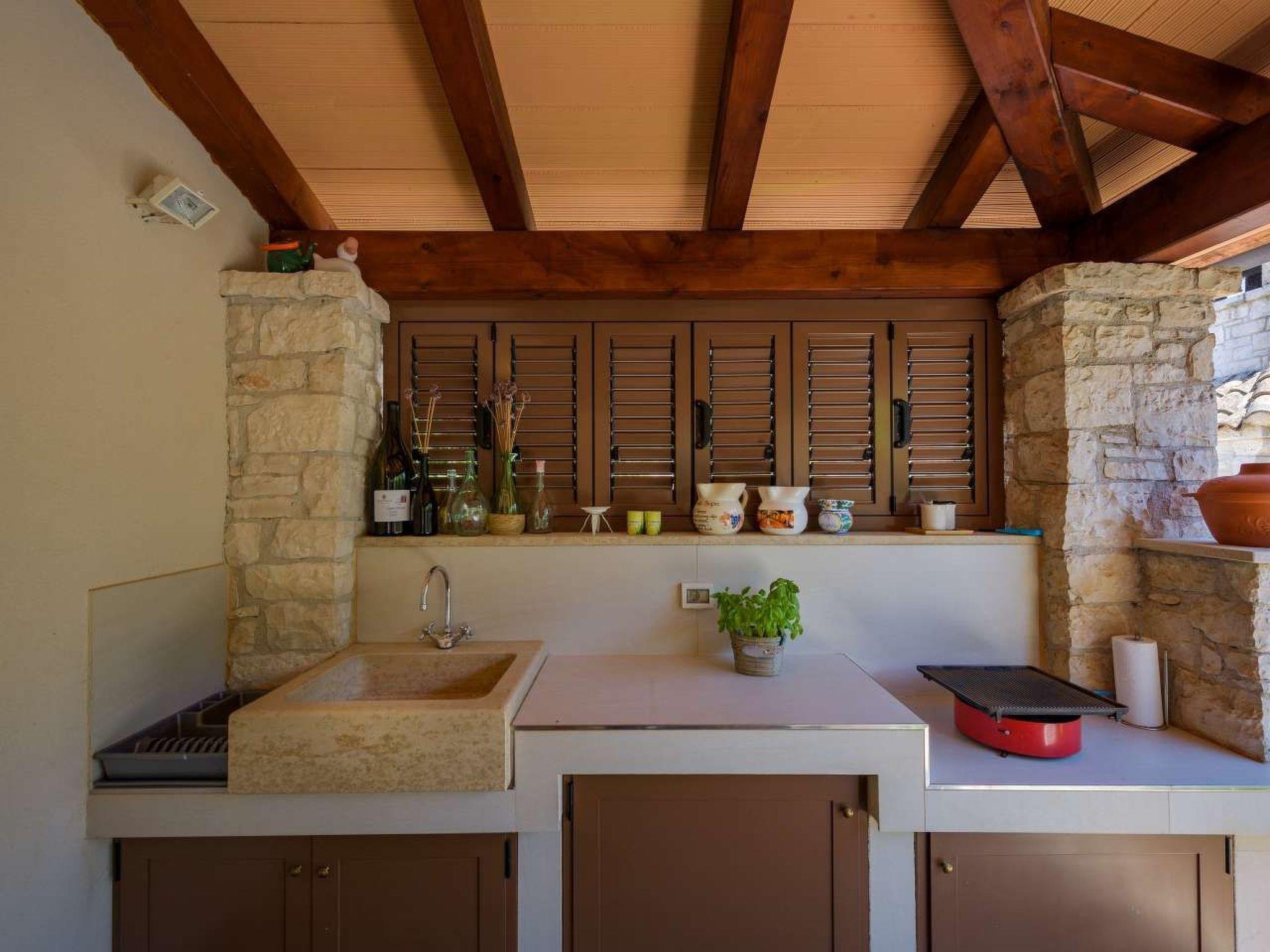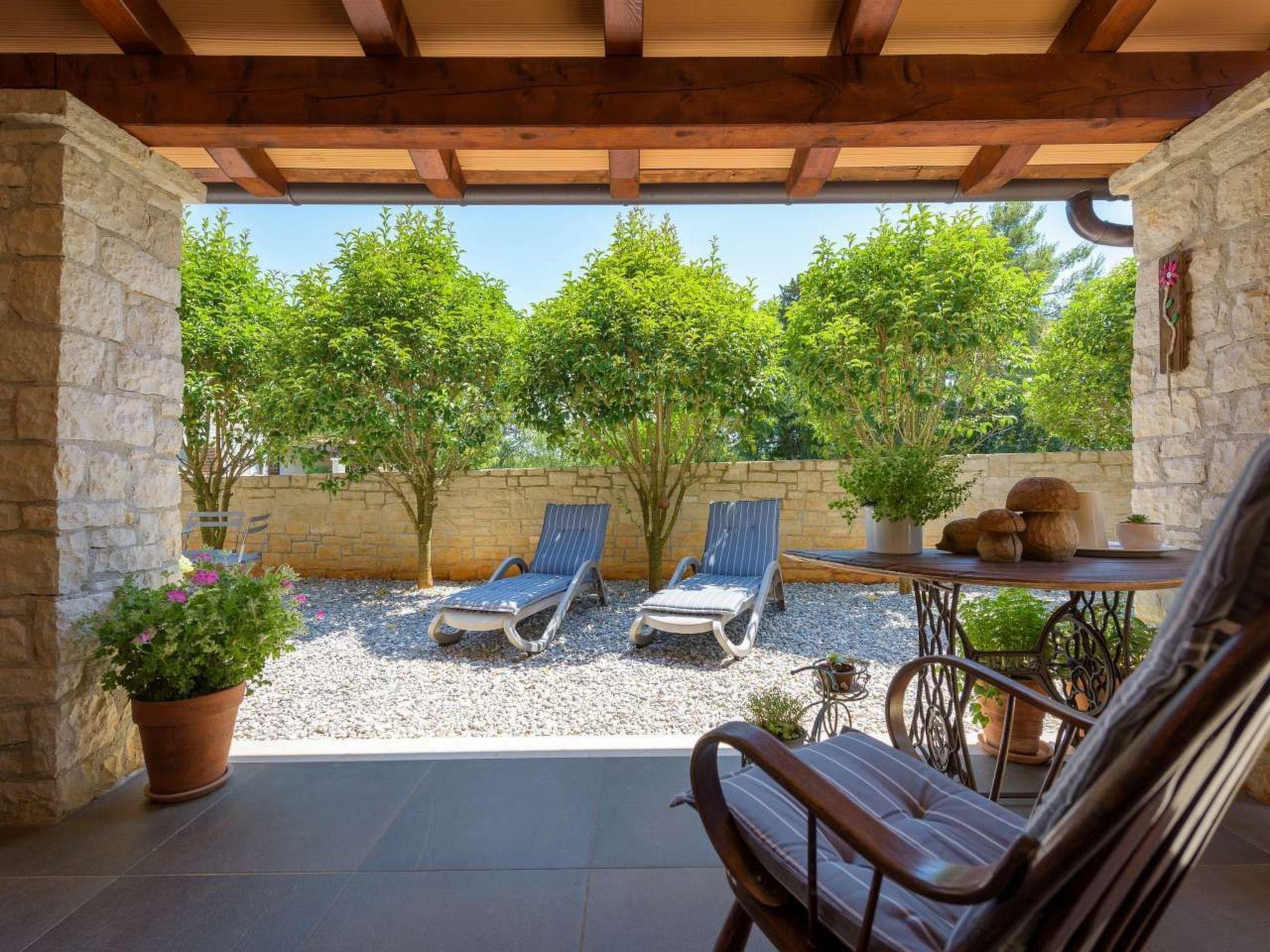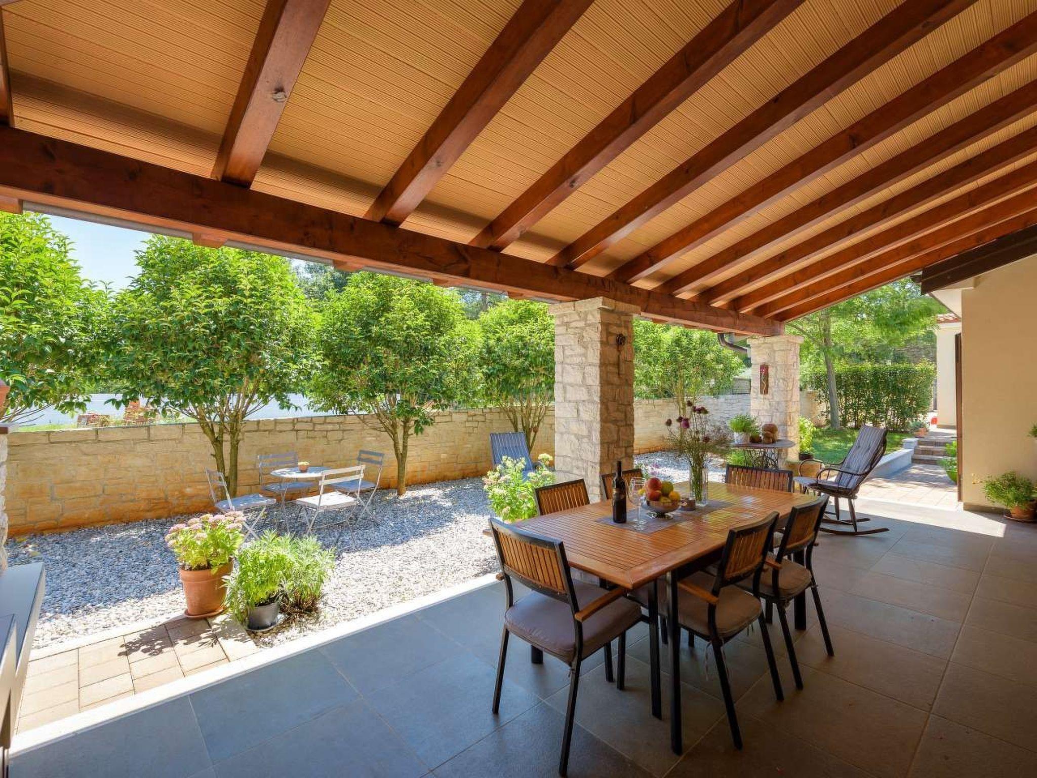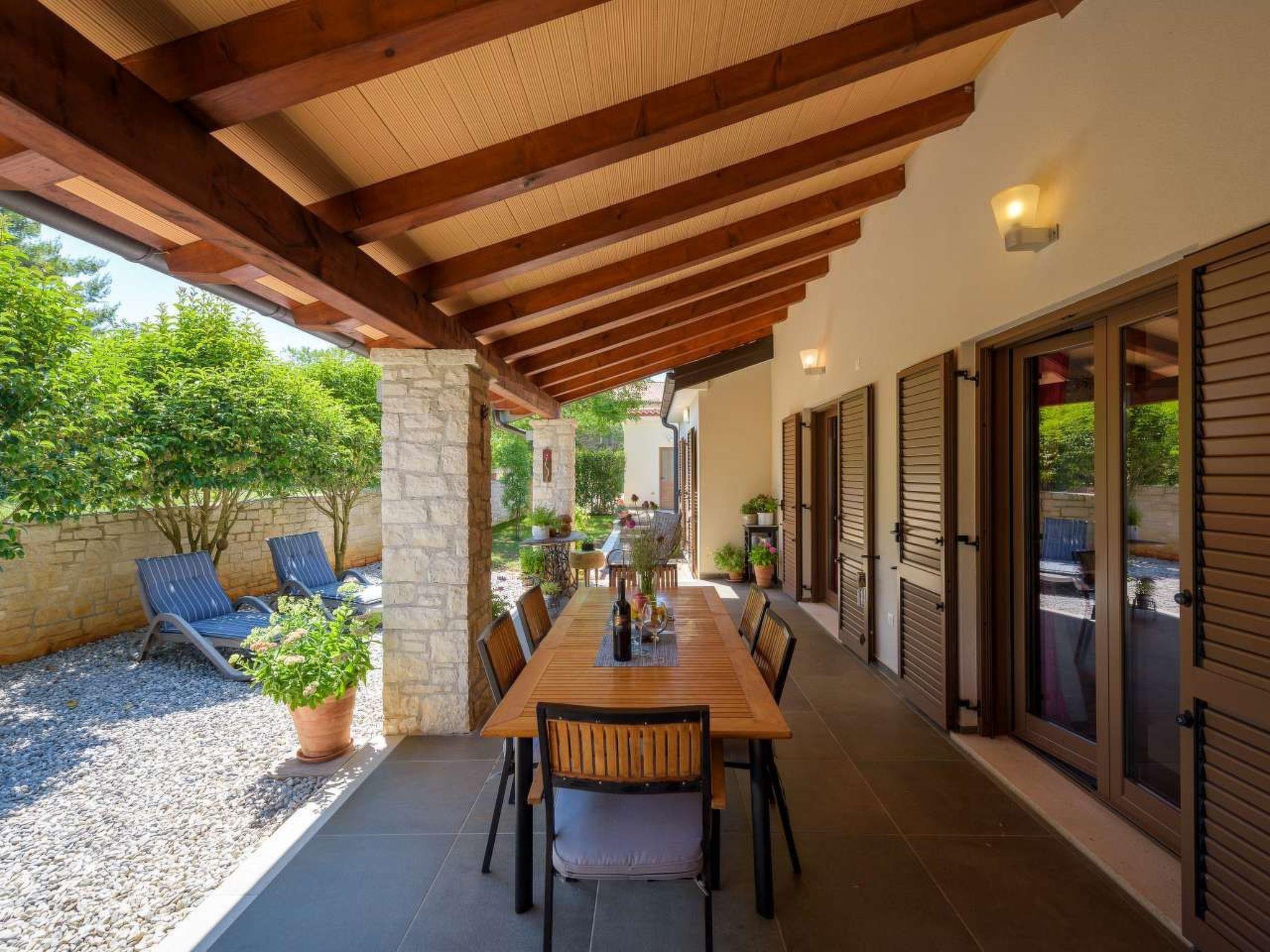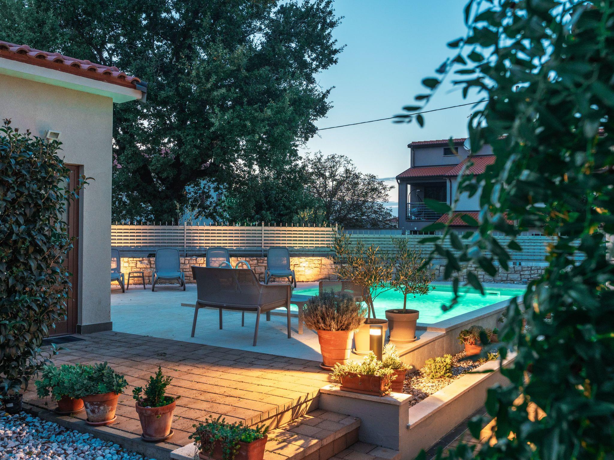 Villa Crystal is located in the village of Zikovici, not far from Porec, and about 11 km from the first beaches. Shops, restaurants and the like can be found in Visnjan, 5 km away, and a typical tavern is only 2 km from the villa. The holiday home is situated in a very quiet location on a fenced 630 sqm plot where guests have at their disposal a saltwater outdoor pool of 24 sqm with sun loungers, a covered terrace with dining table, brick barbecue, well-kept garden with flowers, and covered parking for two cars. The house was built in 2013 and furnished with love. It offers space for 4-5 people with 140 square metres of living space spread over two floors. On the ground floor of the house is the tastefully furnished living area, modern kitchen with access to the covered terrace and garden, as well as the bathroom with shower, on the first floor this house offers a spacious bedroom with double bed, a room with two single beds, the bathroom in the hallway and balcony with seating. If you want to spend a relaxing and quiet holiday with your loved ones, then Villa Crystal is the right choice.youth groups are not allowed.