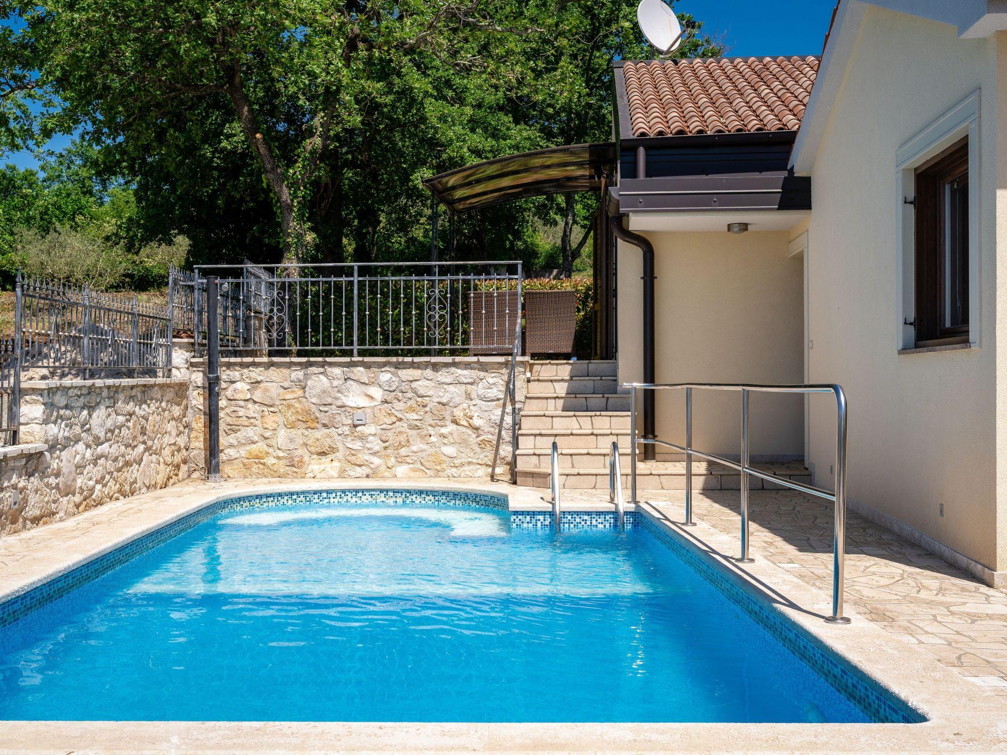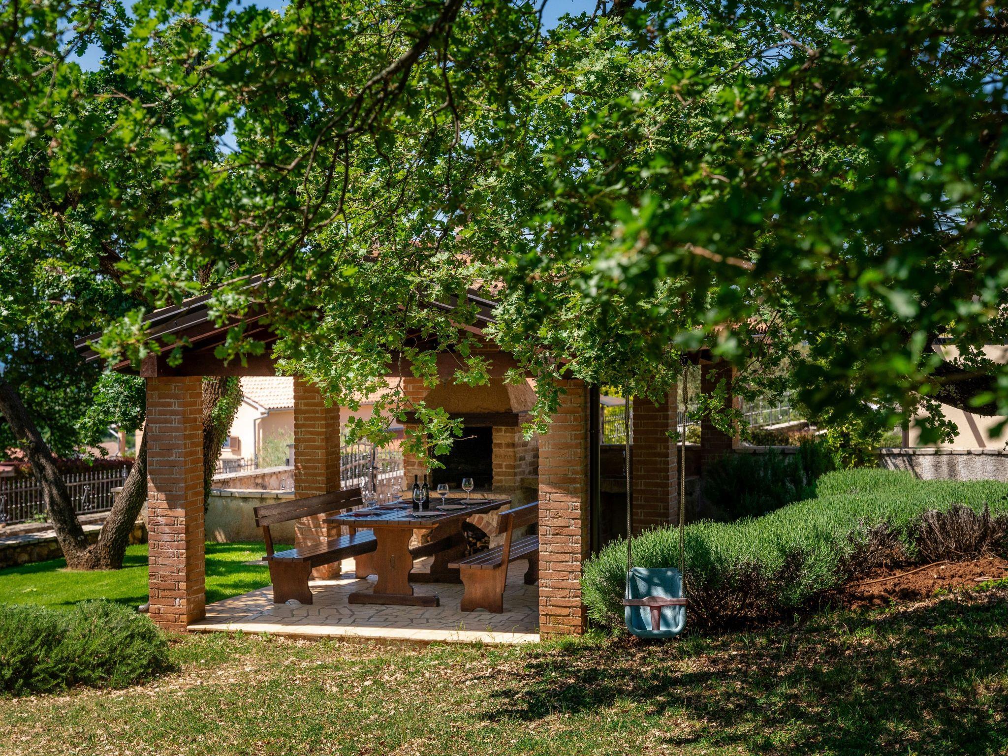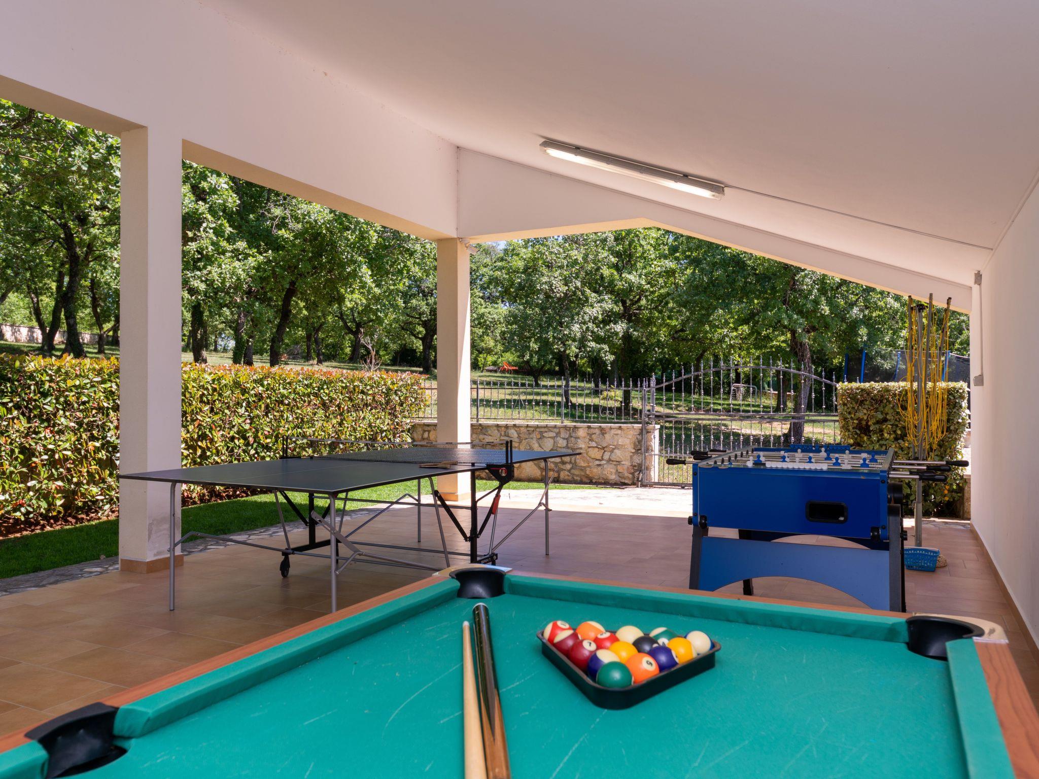 The house was built in 2014, is surrounded by greenery and offers a beautiful panoramic view of the sea. In the outdoor area of the house there is an outdoor pool with salt water, sun loungers and shower, 2 covered terraces with seating, a summer kitchen with a brick barbecue, a covered area with table tennis, table football, billiards and darts, as well as a swing, trampoline, goals for football (small) and an attractive gravel track for mountain bikers. Car parking for two vehicles is available in the courtyard.