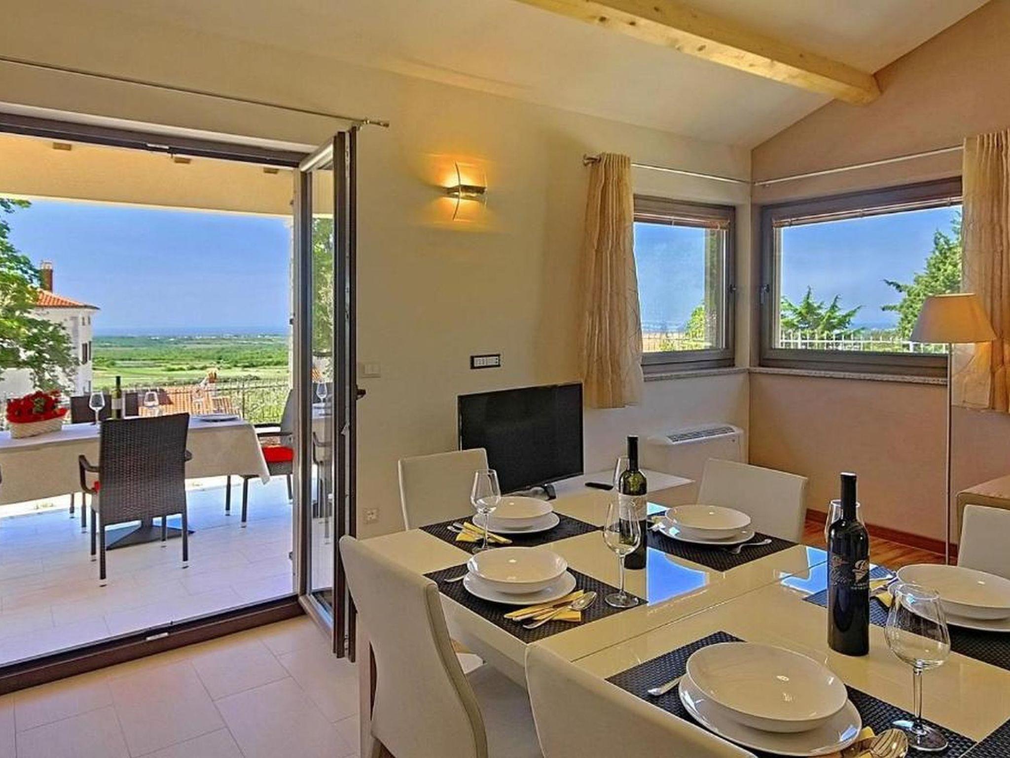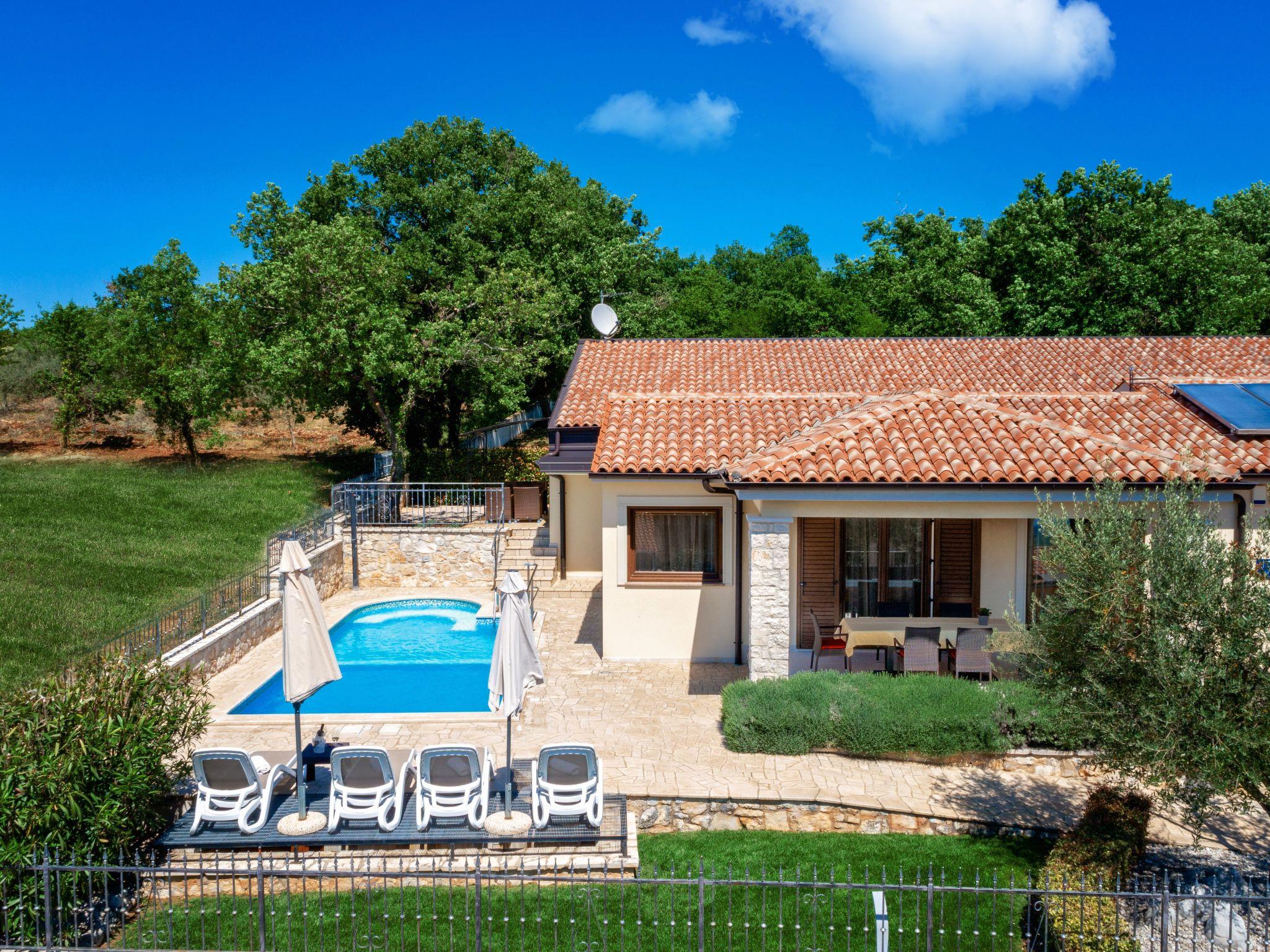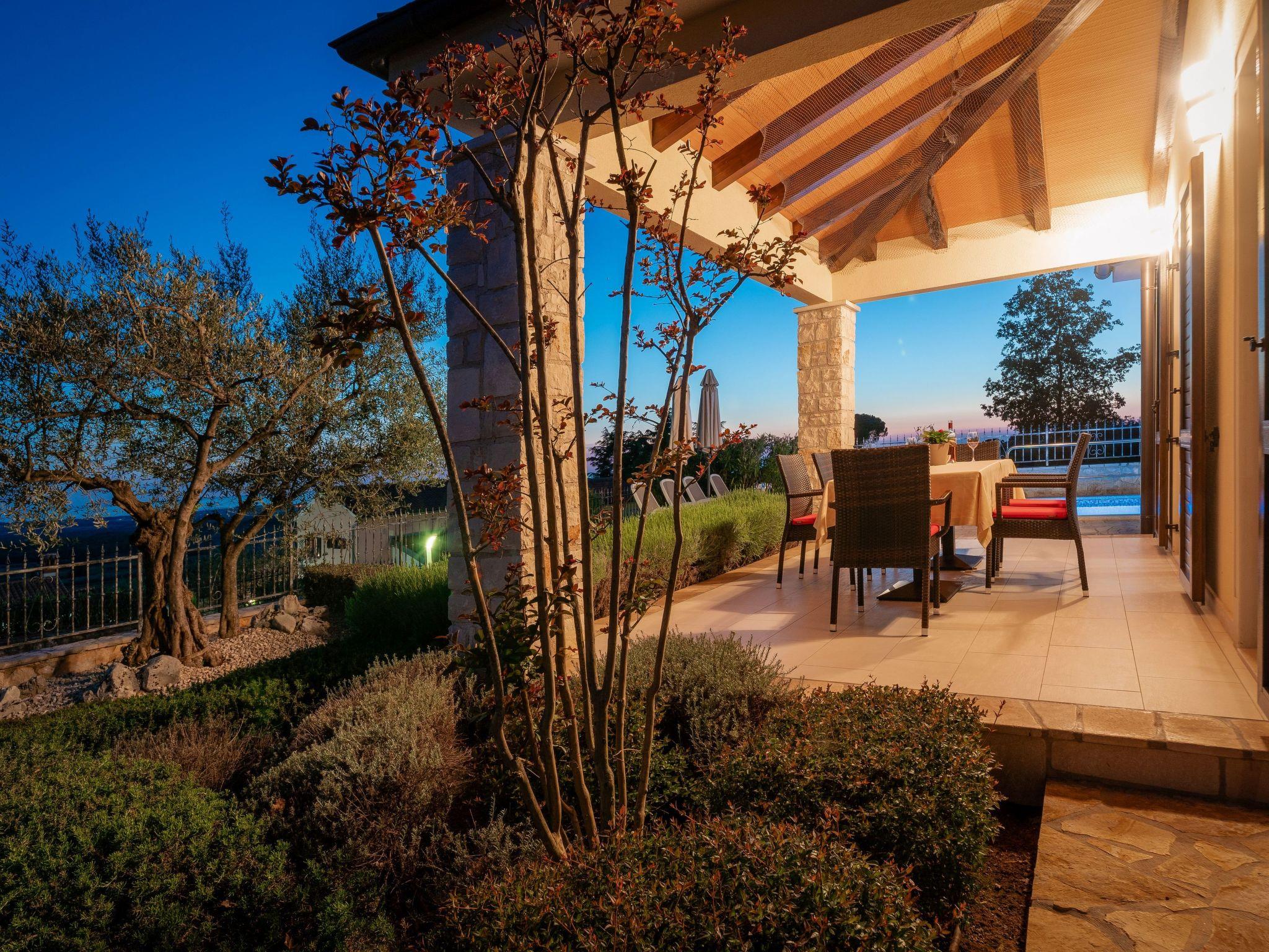 Villa Bellavista Poletti is a newly built holiday home on its own fenced plot of 4500 m2 in the village of Markovac, approx. 14 km from Porec and 11 km from the sea. In Višnjan, 3 km away, there is the nearest shop, a typical Istrian tavern, a pharmacy and much more.