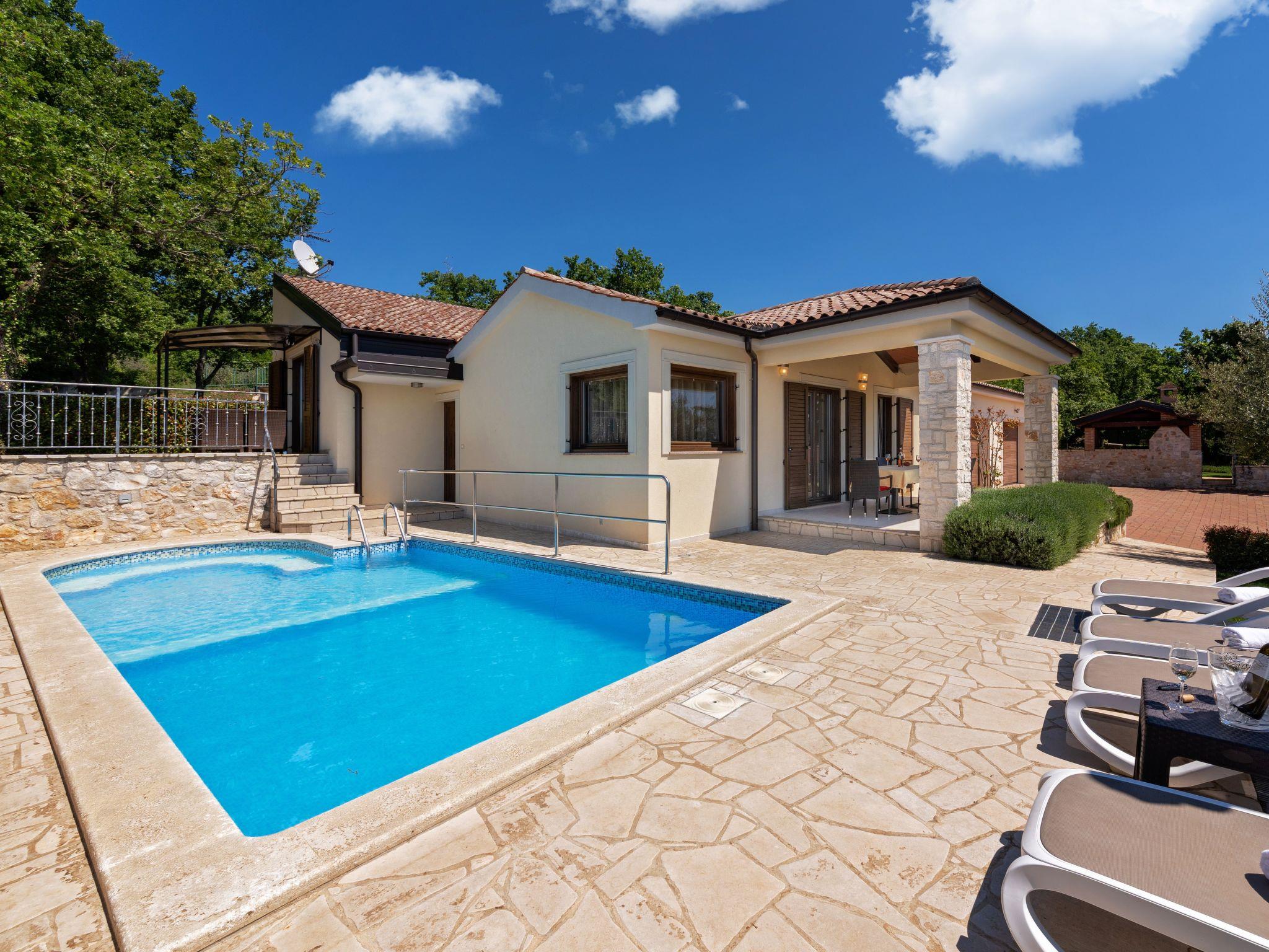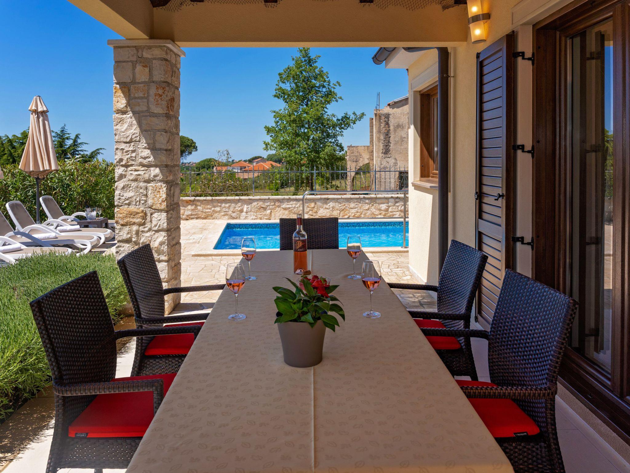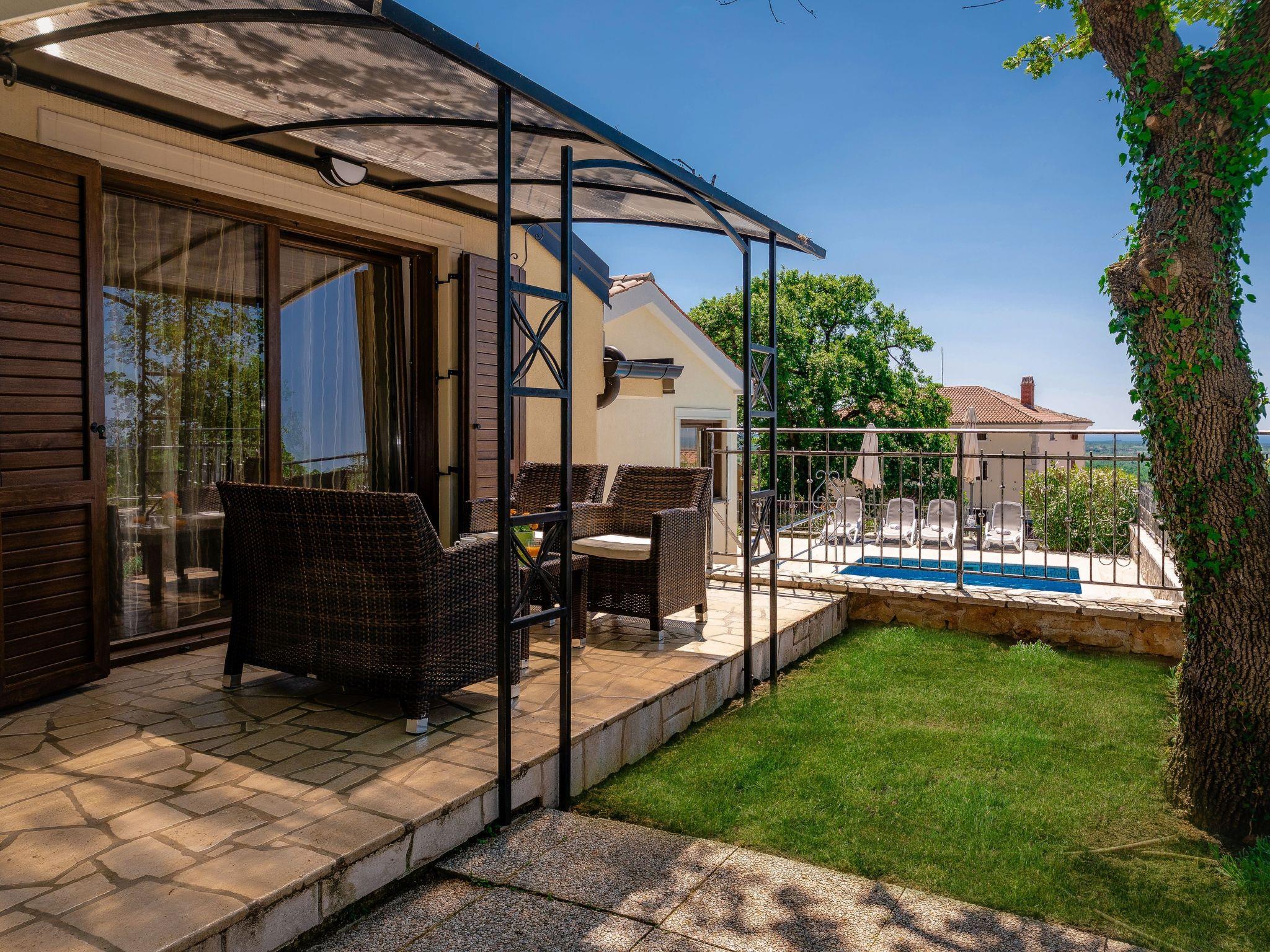 Villa Bellavista Poletti is a newly built holiday home on its own fenced plot of 4500 m2 in the village of Markovac, approx. 14 km from Porec and 11 km from the sea. In Višnjan, 3 km away, there is the nearest shop, a typical Istrian tavern, a pharmacy and much more.