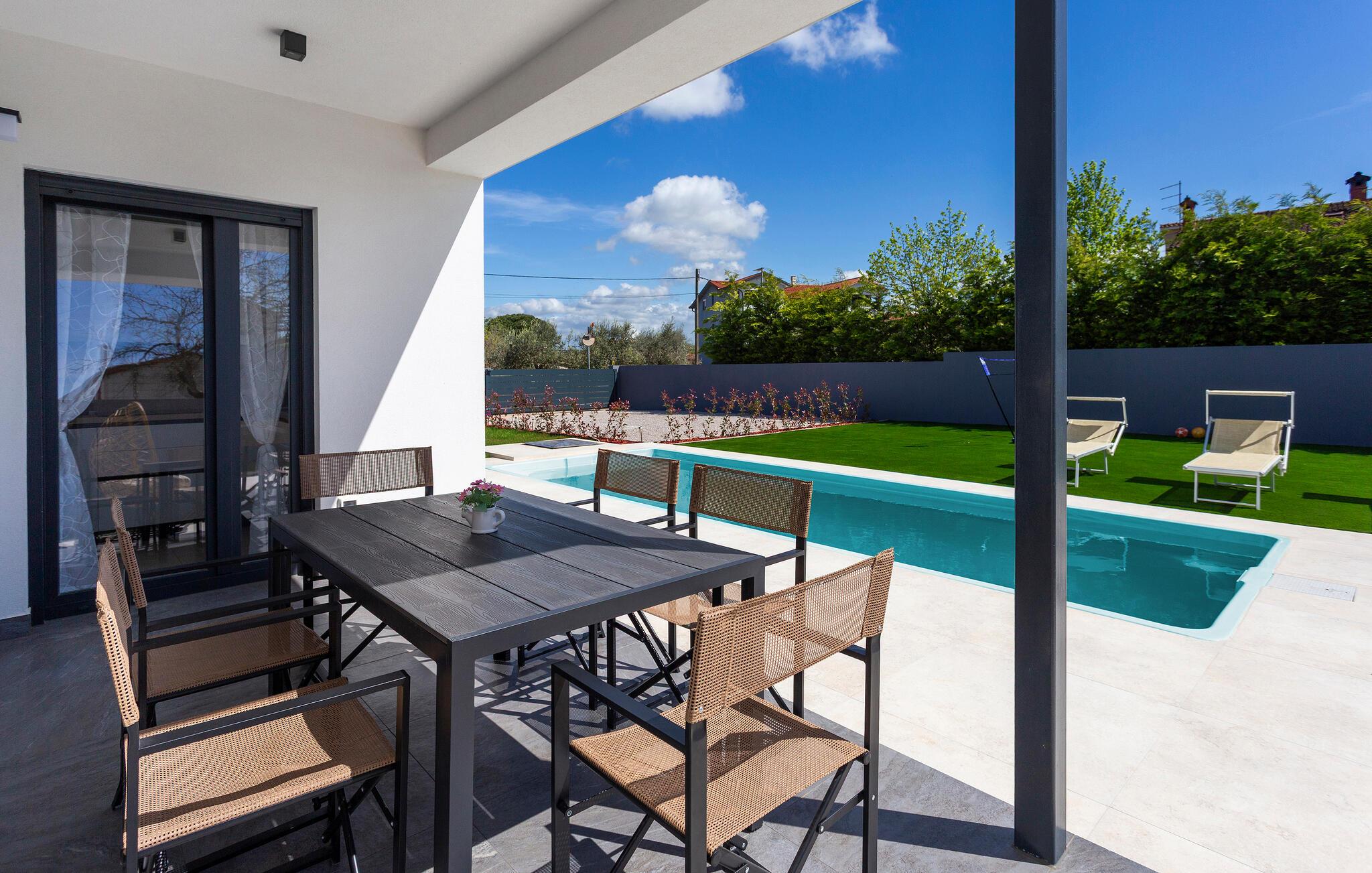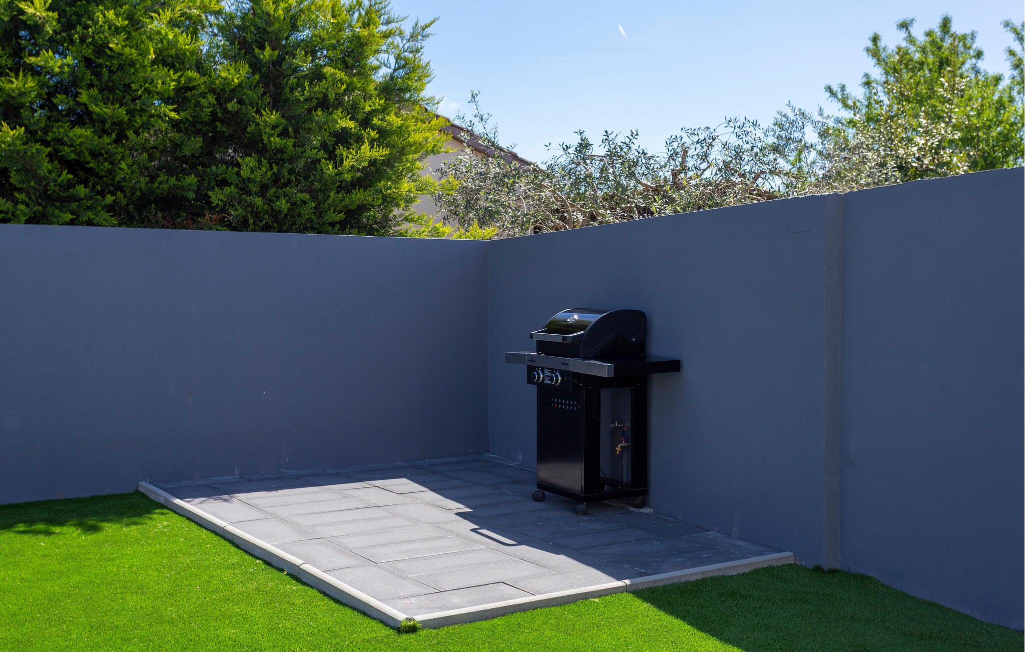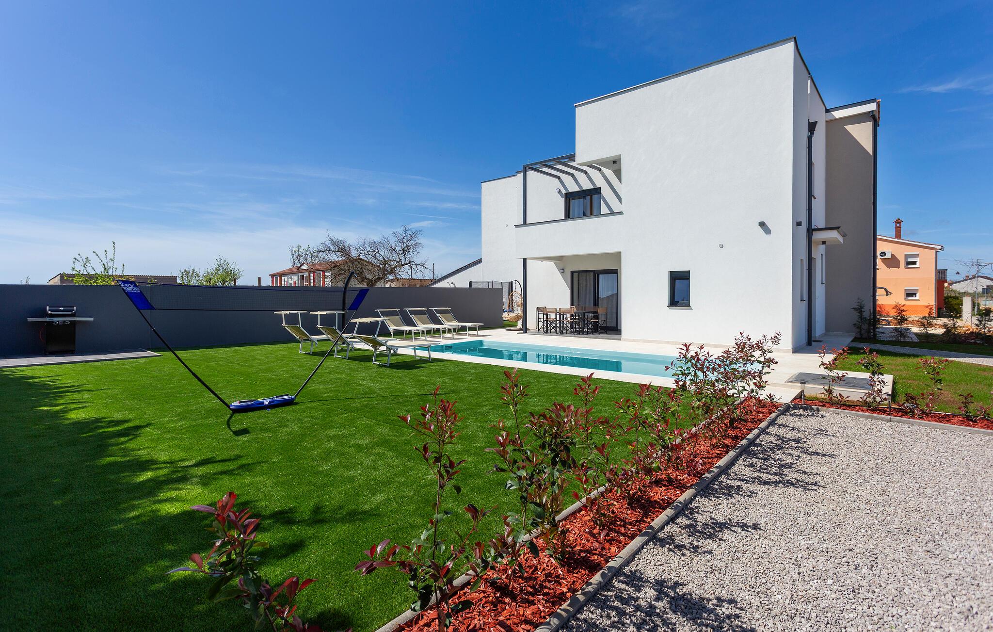 Træd ud gennem terrassedøren om morgenen og mærk den mediterrane stemning. Tag en forfriskende dukkert i poolen, nyd solen eller slap af i skyggen med en kold drik. Er I til aktivitet, kan I spille en omgang badminton, mens de mindste hopper på trampolinen.