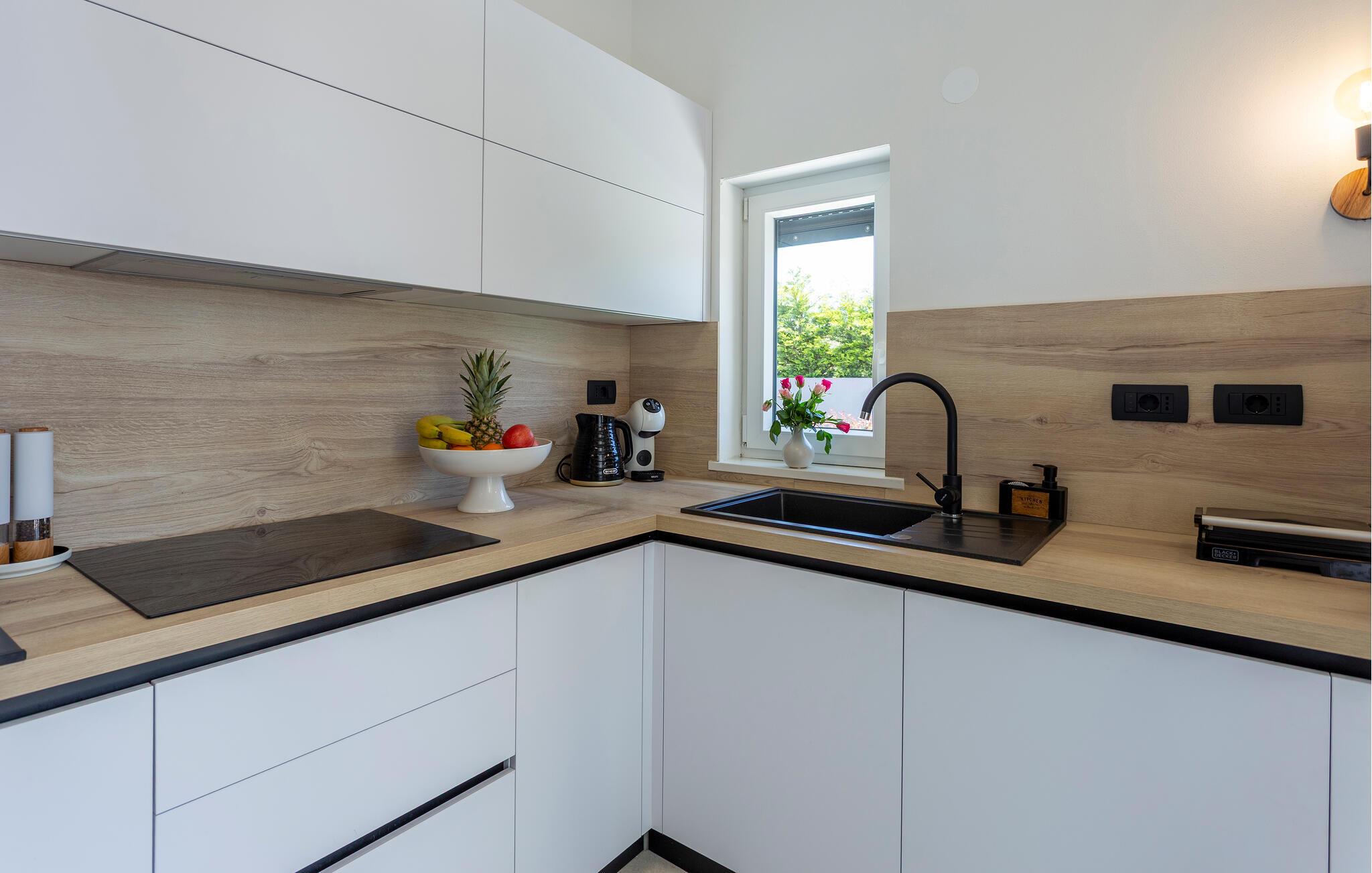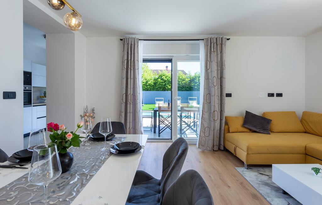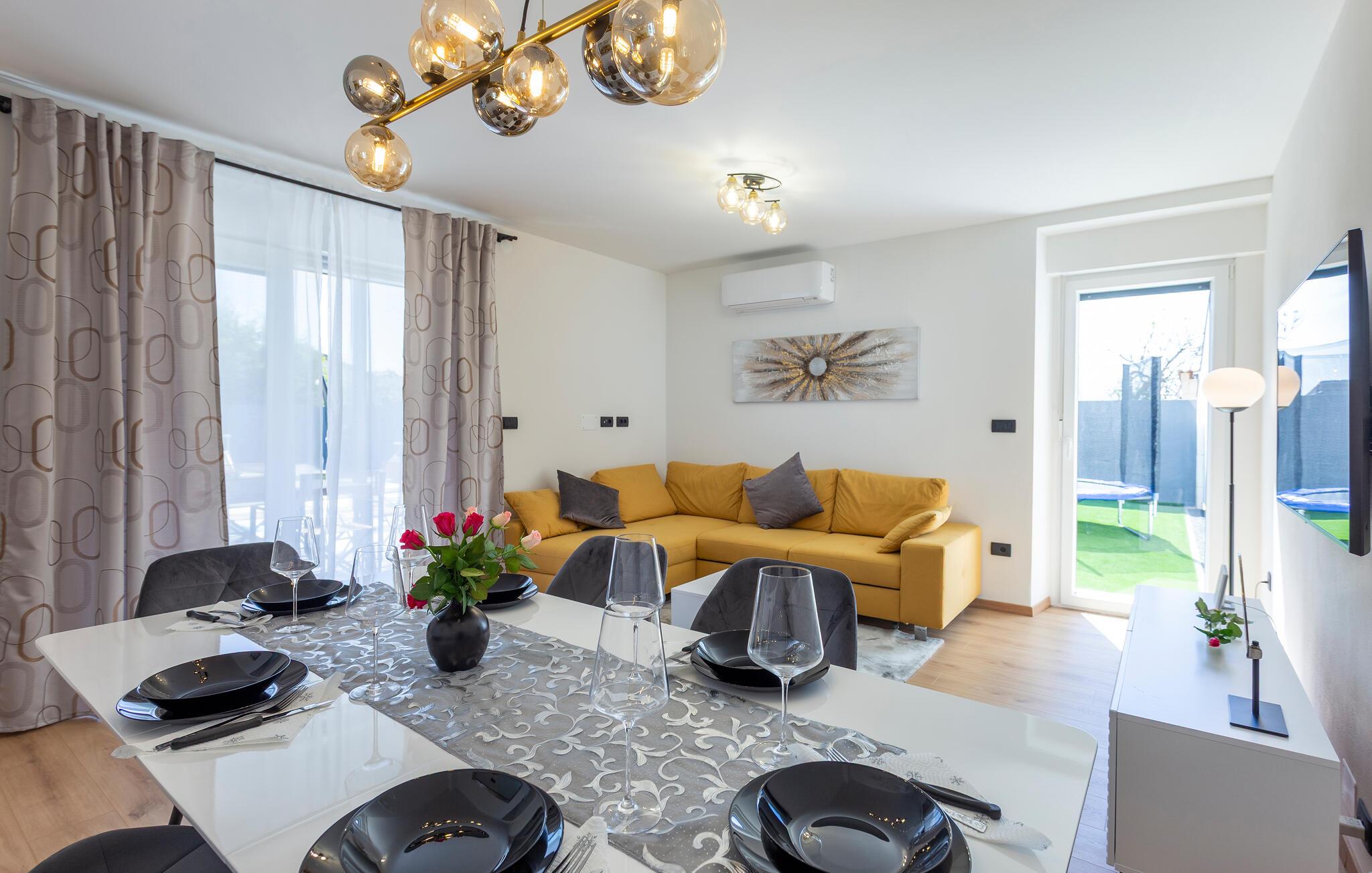 Nyd jeres pause fra hverdagen i dette moderne og hyggeligt indrettede hus ikke langt fra Adriaterhavskysten. Dagslyset, den stilfulde trælook og de solrige farver skaber en behagelig harmoni i rummene. Træk jer tilbage med jeres ferielæsning på den komfortable sofa eller tag en middagslur, før I om aftenen tilbereder et velsmagende måltid i det åbne køkken.